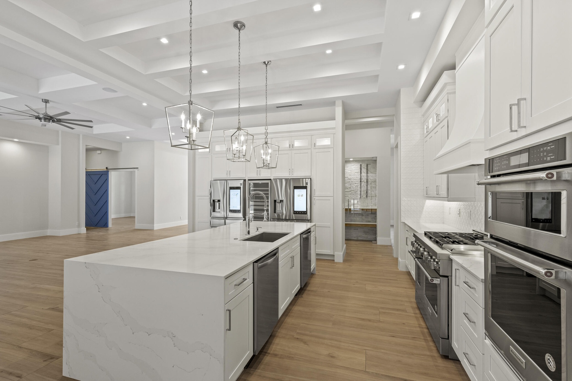 DescriptionCoastal vibes abound in this newer transitional approx.5800, sq ft with 2500 sq ft /five car garage space homestead. Bring all the cars, or convert one side into additional living space or the home gym you've always wanted. Enter through large pivot statement door, into a expansive foyer, with large family /kitchen space, ready for your custom touch. 3000sq ft covered tiled patio. Full hurricane protection, full house generator, outdoor kitchen with gas fireplace frame the saltwater pool, make relaxing a breeze. Porcelain tile floors throughout, marble and quartz finishes. Oversized stately bedrooms. amplify comfort. Entertainers kitchen, with double appliances, full wine refridgerator, microwave, wall oven and full six burner convection range with pot filler.