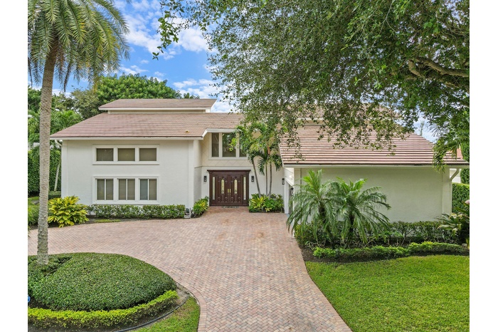 A private sanctuary on an oversized homesite, this custom residence blends timeless architecture with resort-style comfort. Beyond the manned gate, a circular paver drive leads to a light-filled 4BR/3.5BA home with 4,661 SF of gracious living--formal living and dining, a generous family room, and a wet bar--all beneath volume ceilings with a fireplace and French doors opening to the pool. Freshly painted interiors provide a crisp, move-in-ready backdrop.within 10 minutes to palm beach and PBI airport