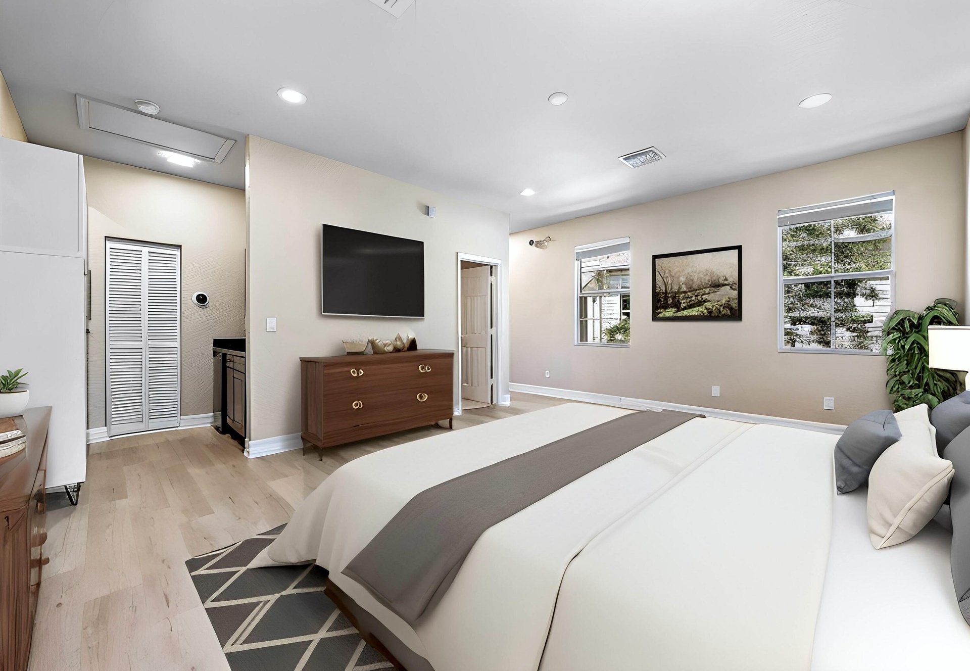 This isn't just any townhouse. It's an END UNIT retreat that redefines space and privacy in Jupiter's sought-after Botanica community. With 2,150 sqft of thoughtfully designed living space PLUS a complete MOTHER-IN-LAW SUITE above your 2-car garage, this home offers flexibility that's hard to find anywhere else.What makes this end unit location so special? You'll have just ONE SHARED WALL, meaning more NATURAL LIGHT flooding through extra windows, enhanced privacy, and that rare feeling of space typically found only in single-family homes. No house directly beside you means you can truly breathe.Step inside where an entry hallway with BUILT-IN STORAGE DROP ZONES sets the tone for this thoughtfully designed home.