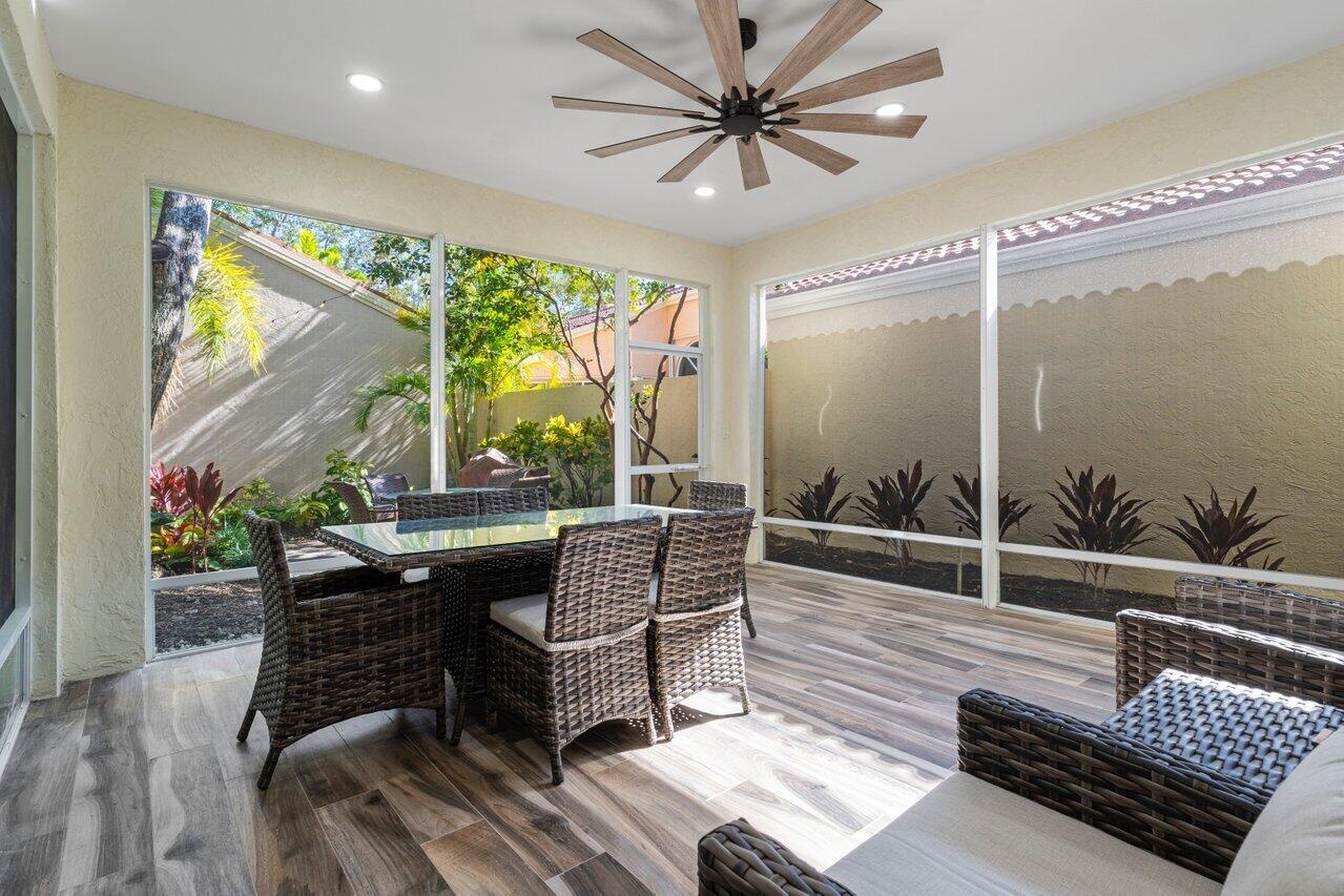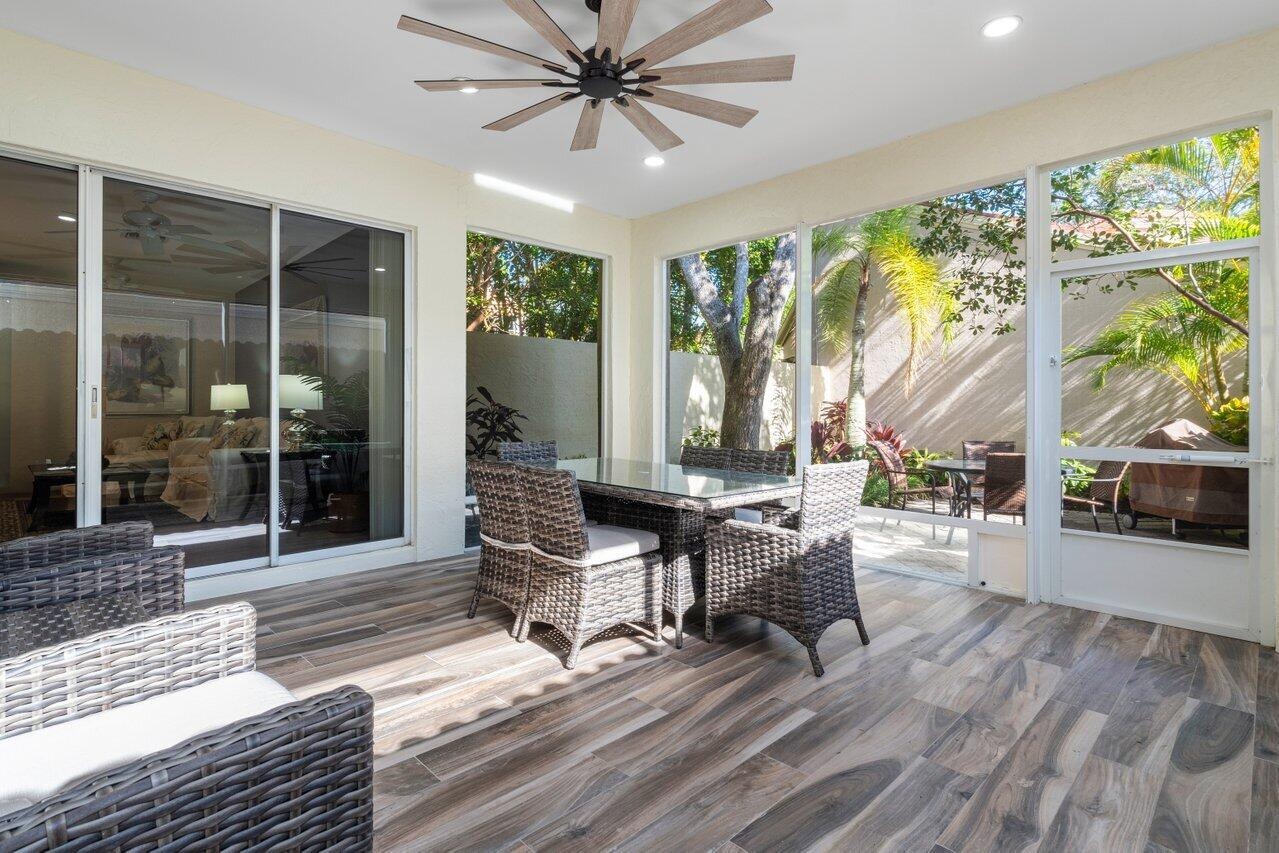 DescriptionWelcome to your beautifully renovated and thoughtfully re-imagined home in the highly sought-after Villa d'Este. Imagine living in an Italian Mediterranean Neighborhood with gas lanterns, cobblestone tree lined streets, fountains & stone benches. Every detail has been taken care of, including the addition of a spacious outdoor covered patio--perfect for entertaining or relaxing with family and friends. Start your day with a cup of coffee or unwind with dessert in this serene outdoor space. Inside, you'll find that every part of the home has been updated. Home can be sold turn key or furniture will be removed if buyer desires. Nestled between the fairways of the Palmer and Fazio Golf Courses, Villa d'Este is one of the most desirable neighborhoods in PGA National.