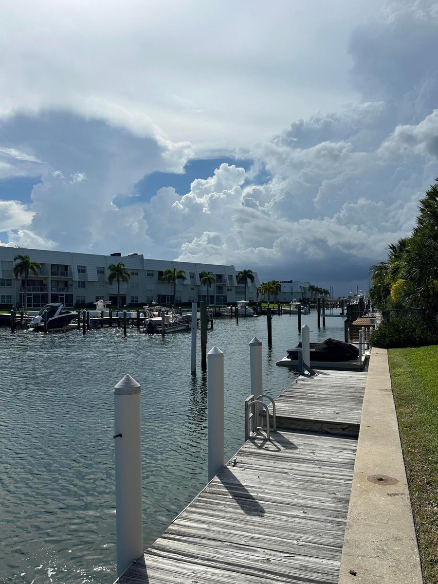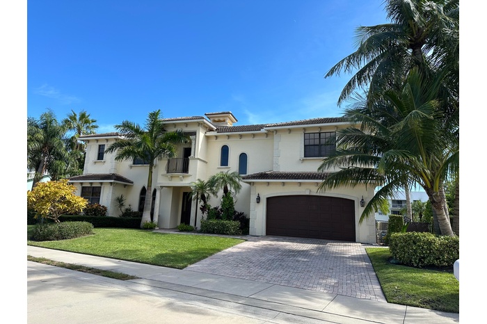 Enjoy 100 feet of prime canal frontage with coveted southern exposure in this rare and spacious, 5 bedroom, 4 bath waterfront home. Boating enthusiasts will appreciate the 9,000 lb. lift, large dock, and easy access to the ocean via the Palm Beach Inlet. High ceilings, light-filled rooms, and an open floor plan create a bright, airy atmosphere. Features include a wood-burning fireplace, impact windows and sliders, and an inviting pool with expansive covered patio- perfect for entertaining. The spacious upstairs lanai is ideal for relaxing in private. Yacht Harbor Manor is a quiet neighborhood and just a short walk to Singer Island's pristine beaches, minutes from the Sailfish Marina, top dining, shopping, Palm Beach, West Palm Beach, and Palm Beach