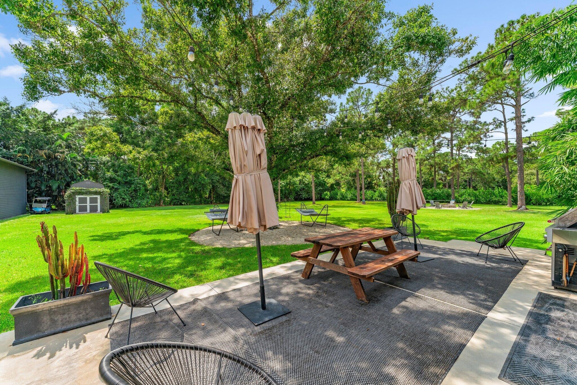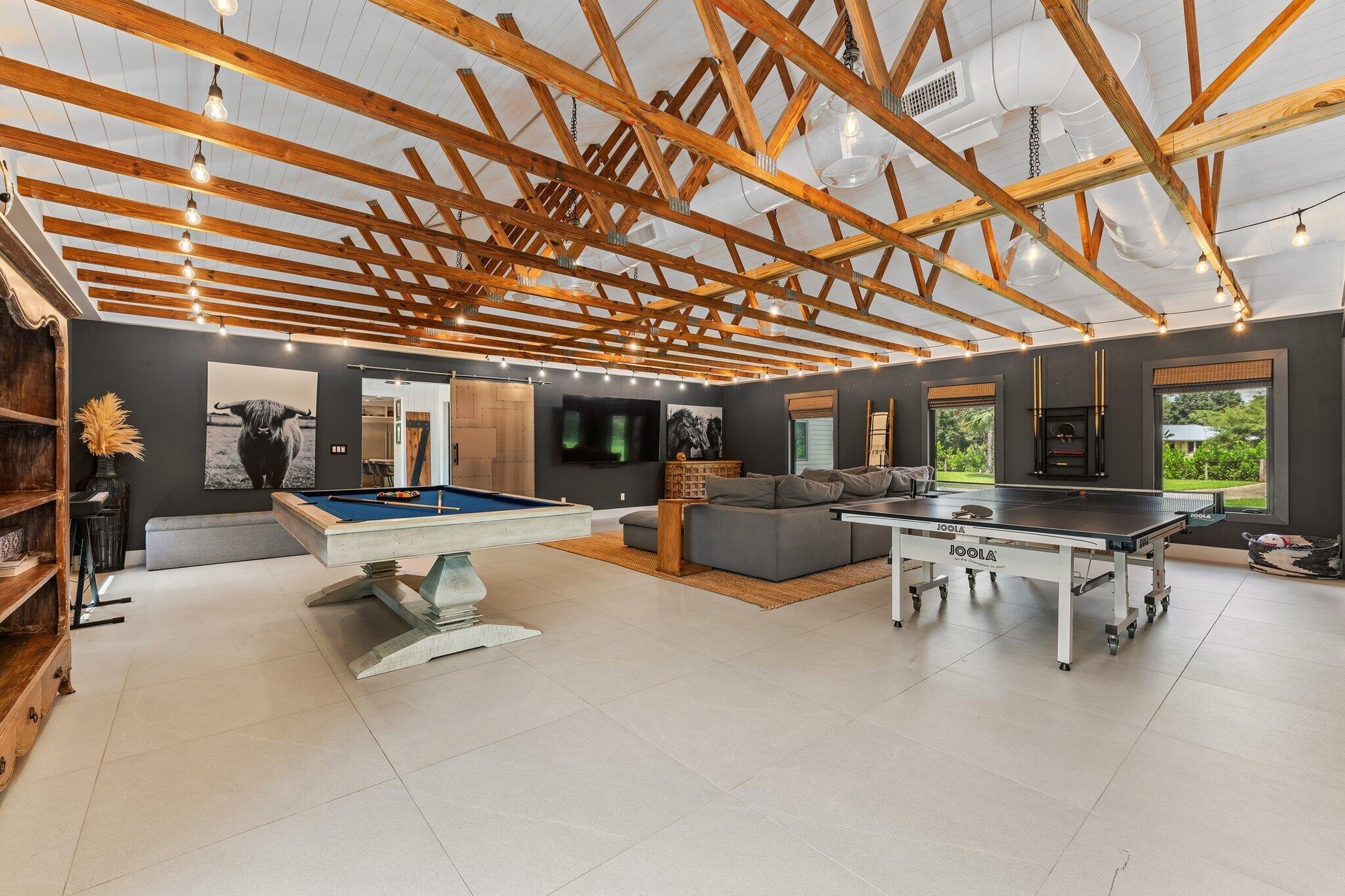 Modern Farmhouse Retreat on 2.5 Acres -- Escape to this stunning 4-bedroom, 3.5-bath modern farmhouse, privately tucked away on 2.5 acres in Jupiter. Fully furnished and thoughtfully appointed, this home is designed for comfort, style, and effortless living--perfect for a seasonal getaway. The interior features a chef's kitchen with premium appliances and a large island, seamlessly connecting to bright living spaces including a family/media room, quiet den, and an impressive 29x29 game room. Upstairs, one bedroom is en suite, while the other two enjoy an exceptionally private Jack-and-Jill layout, with each bedroom having its own water closet and a shared shower/tub. A whole-home reverse osmosis system ensures pristine water throughout. Outdoors, gated access on the east and north sides