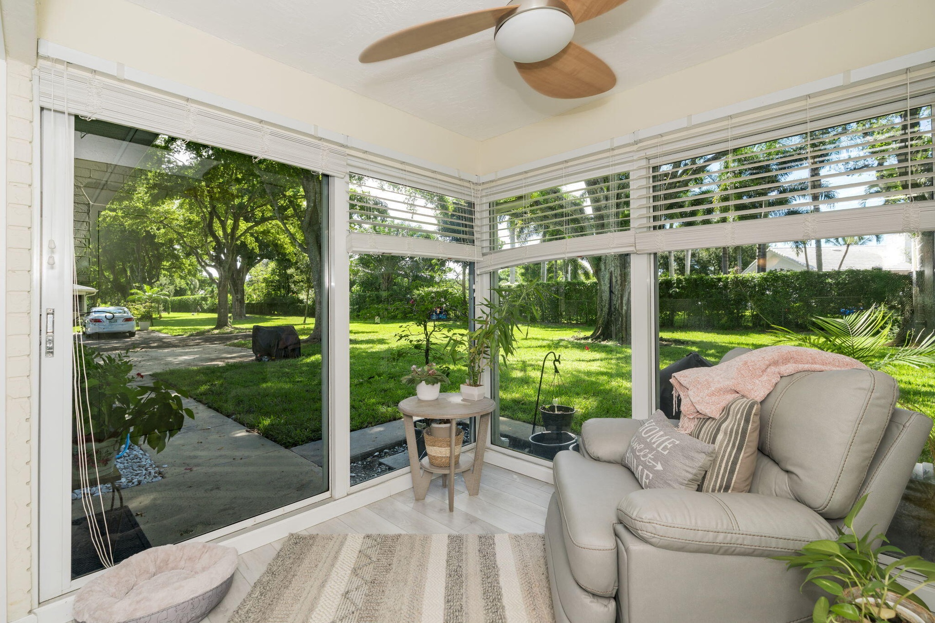 Welcome to this beautifully renovated 2-bed, 2-bath villa with a bonus sunroom in a vibrant 55+ community! This corner unit, tucked away at the end of the street, offers extra green space, privacy, and peace. The home has been gorgeously redone, featuring FULL IMPACT glass throughout--including the inviting, light-filled sunroom, perfect for morning coffee or relaxing with a book. Inside, enjoy modern finishes and an open layout that flows effortlessly. Outside your door, the community offers 3 pools, bocce, pickleball, tennis, numerous clubs, and weekly social events--ensuring an active lifestyle and new friendships. This villa truly combines comfort, security, and resort-style living in one perfect package! HOA covers everything but Electric, such an amazing opportunity, don't miss out!