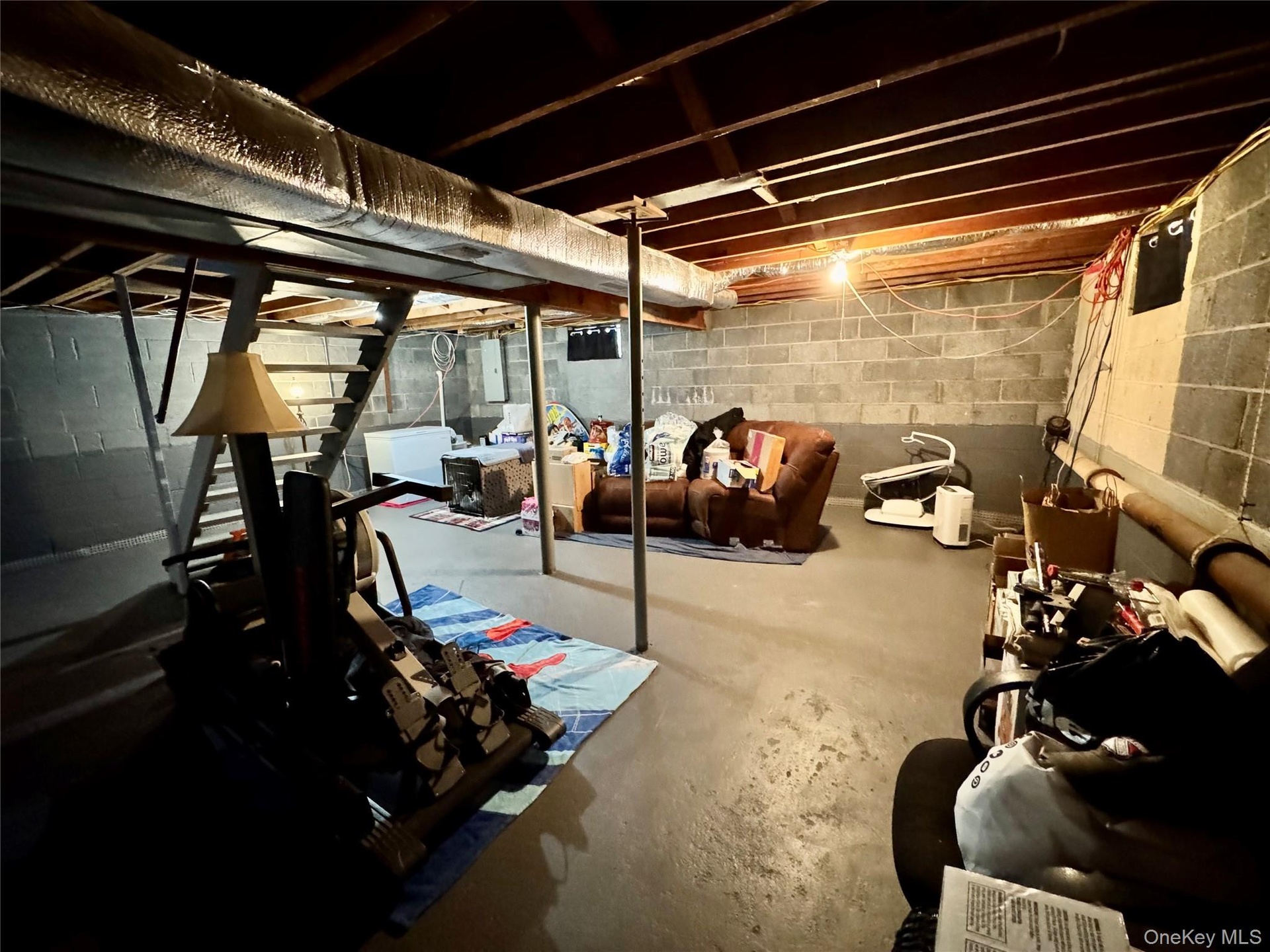 - Unfinished basement with electric panel
