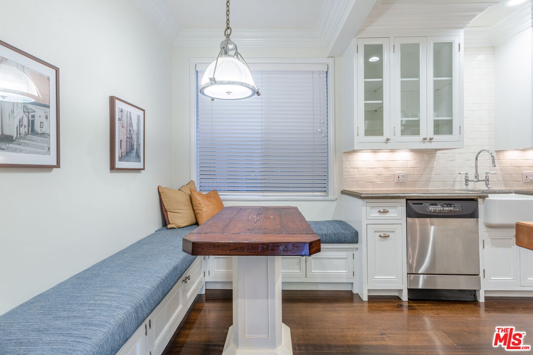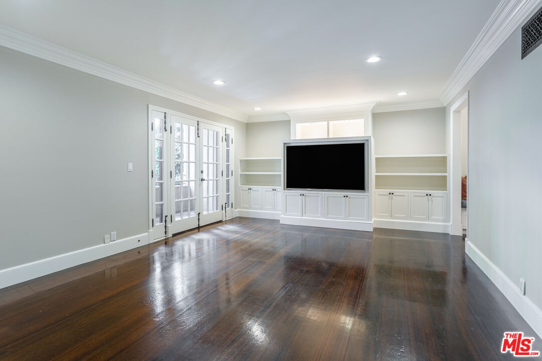 Welcome to this elegant, traditional-style condo nestled in one of West Hollywood's most coveted neighborhoods. Quietly positioned on the peaceful side of the building, this spacious residence showcases premium hardwood floors, intricate crown moldings, and custom built-in cabinetry throughout. The stunning eat-in kitchen is a chef's delight, featuring a cozy breakfast nook, Sub-Zero refrigerator, and top-of-the-line Viking appliances. A gracious formal entry leads to both a sophisticated dining room and a bright, inviting living room with French doors that open to a private terrace ideal for enjoying morning coffee or unwinding in the evening. The luxurious primary suite offers a generous walk-in closet and a spa-like bathroom, creating a true retreat. The second bedroom, currently configured as a den, provides flexible use as a guest room or home office, and also opens to the terrace through elegant French doors. Residents also enjoy access to the building's beautifully maintained amenities, including a private gym, sparkling pool & Spa's.