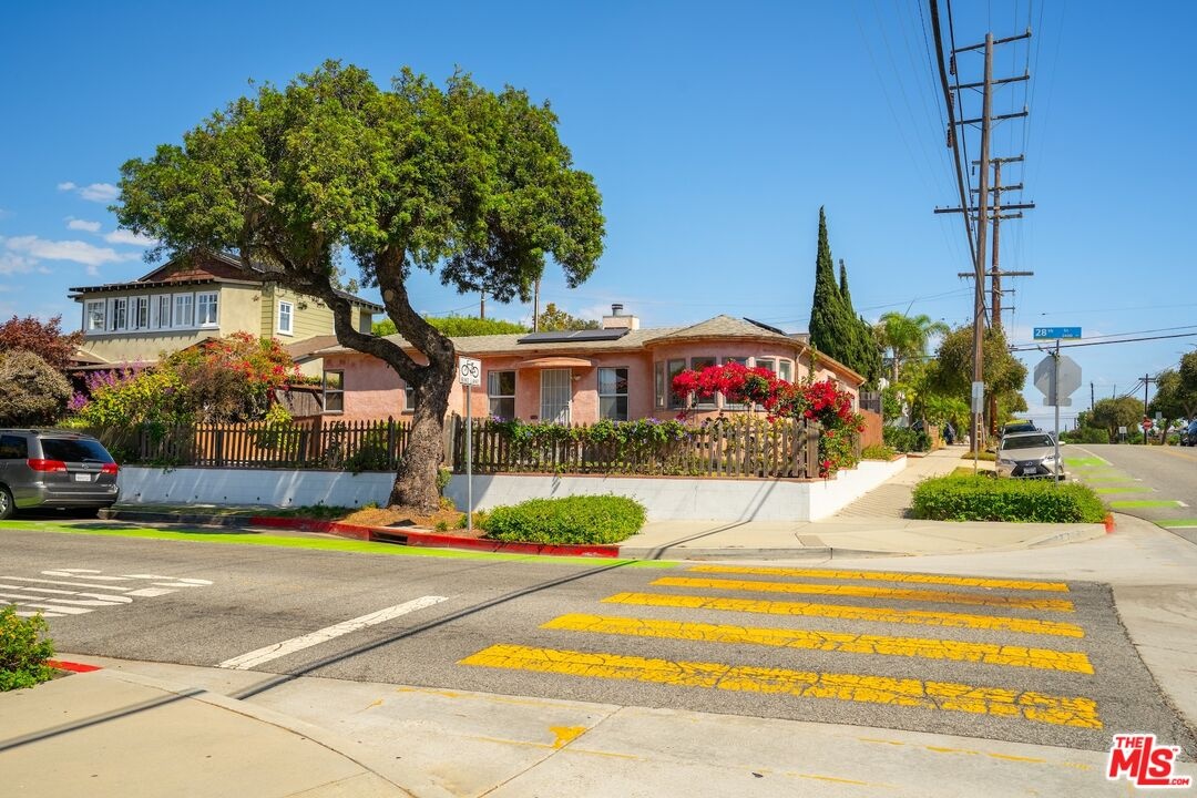 Situated on a corner lot in Sunset Park, this residence offers a thoughtful and flexible floor plan. Beautifully refinished hardwood floors flow throughout the ~1,404 sqft of living space, connecting two dedicated bedrooms and a generously sized den that comfortably serves as a third. Expansive living area with a cozy fireplace. Striking circular bay window defines the formal dining room. Bounty of fresh fruits of fig, lemon avocado and orange trees. Full plumbing system has been upgraded from street to faucet. Enjoy peace of mind with new gas lines from the street serving furnace and stove. Endless hot water with energy-efficient electric tankless water heater. Home has undergone seismic retrofitting to enhance it's stability and resistance. Benefit from sustainable energy from installed solar panels. New electrical panel and rewiring throughout ensuring safety and compliance. Tiled kitchen offers abundant cabinet space. Experience the ease of a private laundry room off the kitchen. Step outside to a generous porch, perfect for relaxing and entertaining. Gated 2 car parking with a high-speed electric vehicle charger. Tiled bathroom offers a soaking tub. Prime location within the highly acclaimed Santa Monica School District. Conveniently located near SMC, Clover Park, Virginia Park and Library. Unbeatable location close to the market, boutiques, restaurants and services