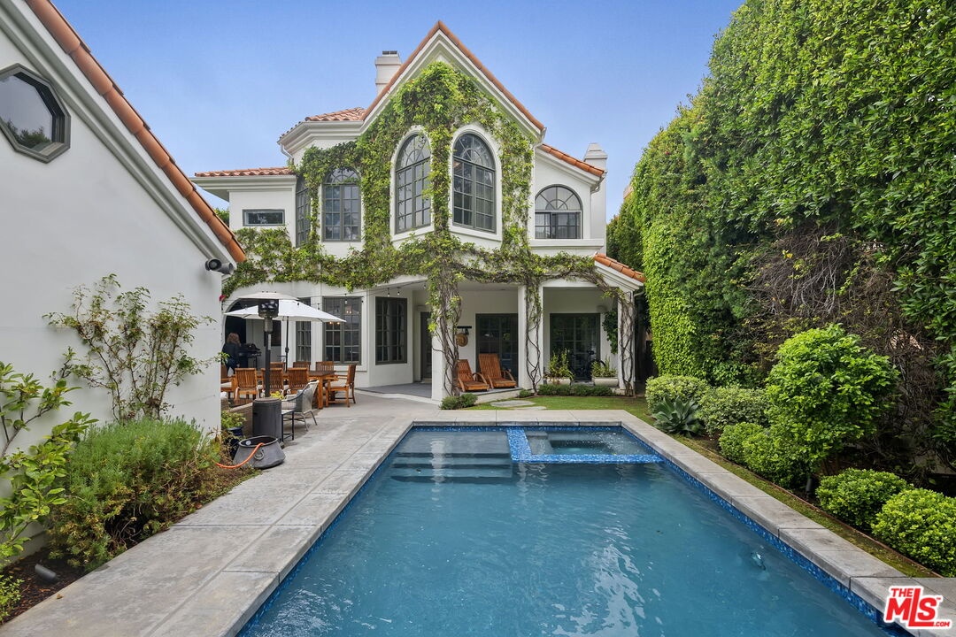 Elegant 2-story Mediterranean in the coveted North of Montana neighborhood of Santa Monica. Situated on a tree-lined street, this updated home features generous open living spaces with custom details throughout. Upstairs are 4 well-proportioned bedroom suites, including the luxurious primary suite with two generous walk-in closets, sitting area, fireplace, balcony, and spa-like bath. Chef's kitchen with center island and breakfast area opens to the family room. Well landscaped backyard is enhanced with nature trees, covered patio, a new pool, spa, and outdoor dining/ entertaining area. The updated home includes hardwood floors, new appliances, stone counters, and custom finishes.