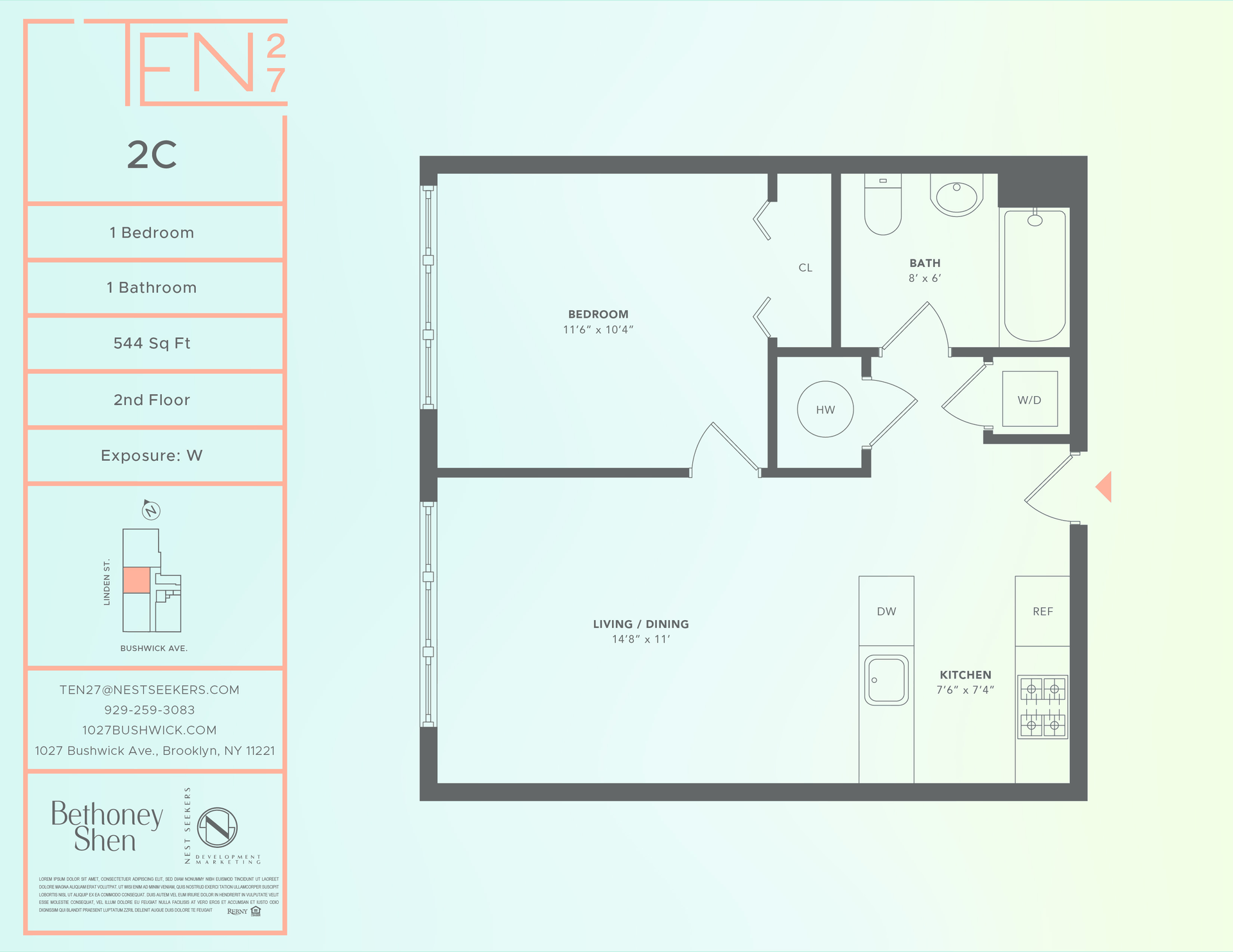 DescriptionIntroducing Residence 2C at TEN27 — a meticulously crafted one-bedroom, one-bathroom home that blends modern design with everyday comfort in the heart of Bushwick.