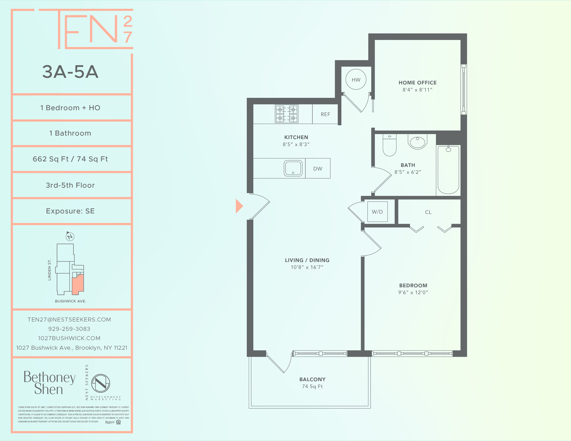 DescriptionIntroducing Residence 3A at TEN27 — a meticulously crafted home that combines expansive interiors with private outdoor space, delivering a sophisticated one-bedroom plus home office, one-bathroom home in the heart of Bushwick.