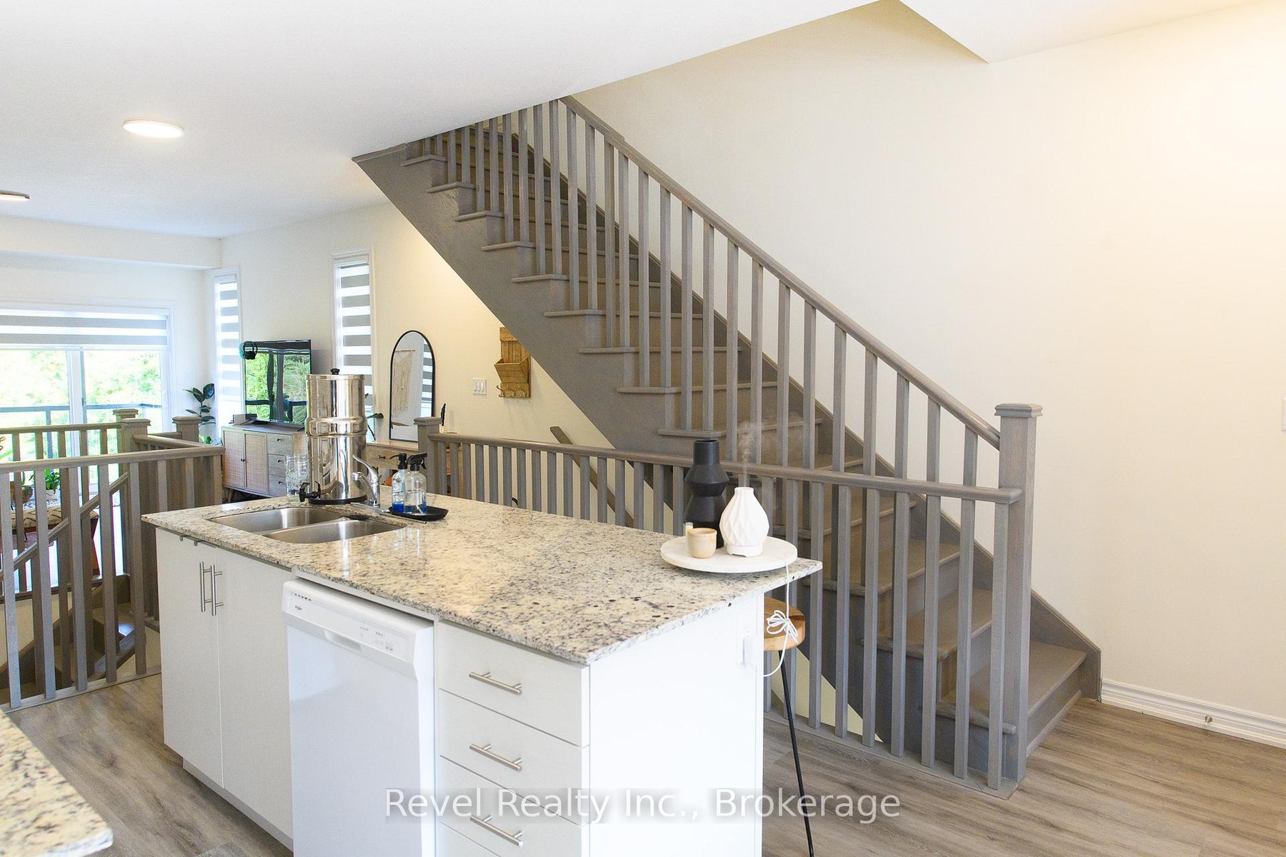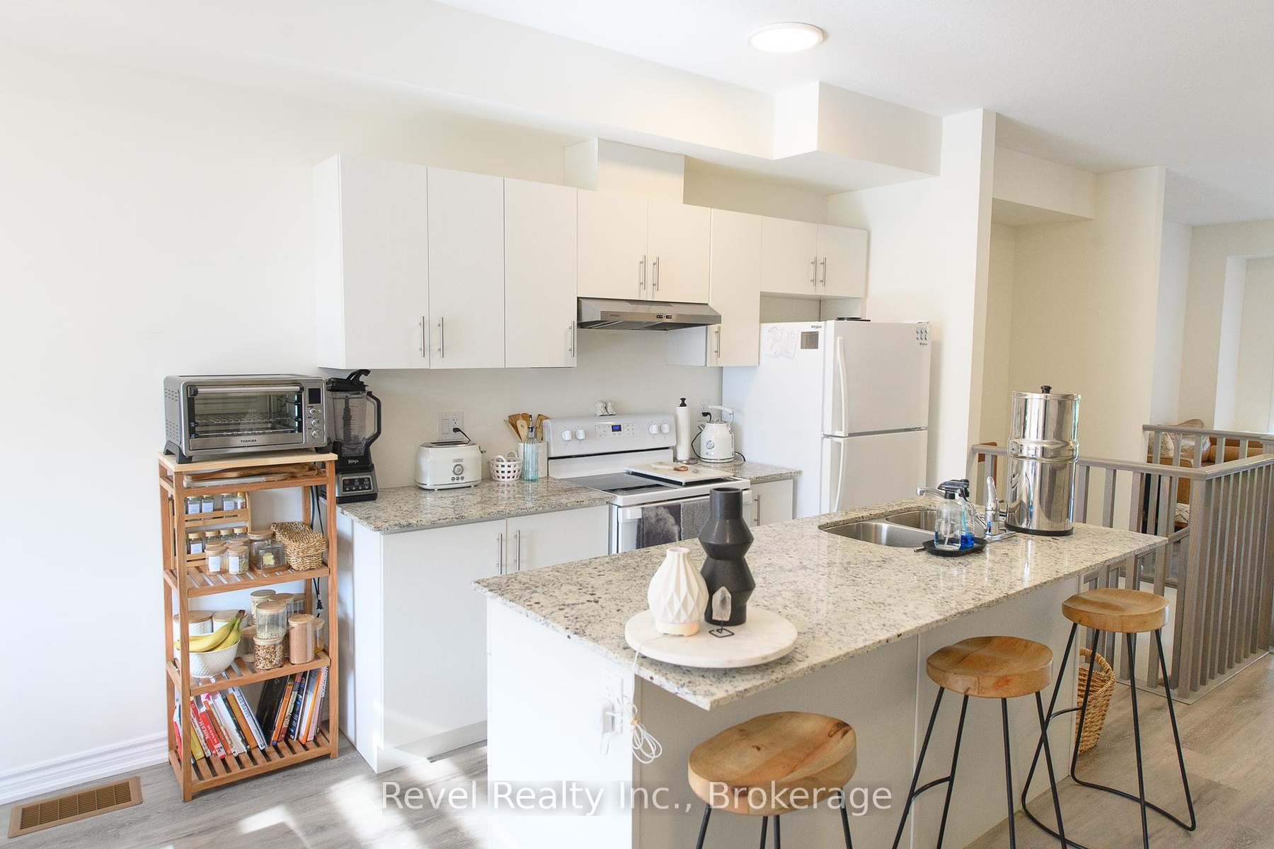 DescriptionBright & Private End Unit Backing onto Greenspace. Welcome to 14 Winters Crescent a rare end-unit in the desirable Waterstone condominium community. This 3-bedroom, 3-bathroom townhome is made to stand out with its private west-facing location, backing directly onto greenspace, offering sunsets and a true connection to nature. Inside, enjoy extra windows exclusive to end units, which add extra light to an open-concept living space filled with natural light. The main floor walkout leads to an elevated glass-railed deck with direct stair access to the backyard, perfect for entertaining or relaxing outdoors. Other features include: Bright and airy layout with quality finishes including quartz counter top in the kitchen, neutral wide plank laminate flooring on the main level and custom blinds throughout. Garage with inside entry + private driveway. Low-maintenance lifestyle close to Collingwood's vibrant downtown. Minutes to Blue Mountain, Georgian Bay, trails, and golf. Whether you're seeking a full-time residence, weekend getaway, or investment in a thriving four-season destination, this move-in-ready home offers a unique blend of privacy, brightness, and outdoor connection rarely found in townhome living.Amenities- Alarm system