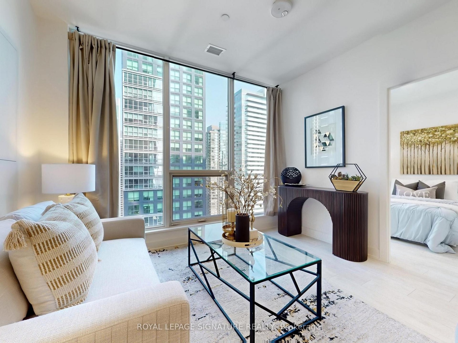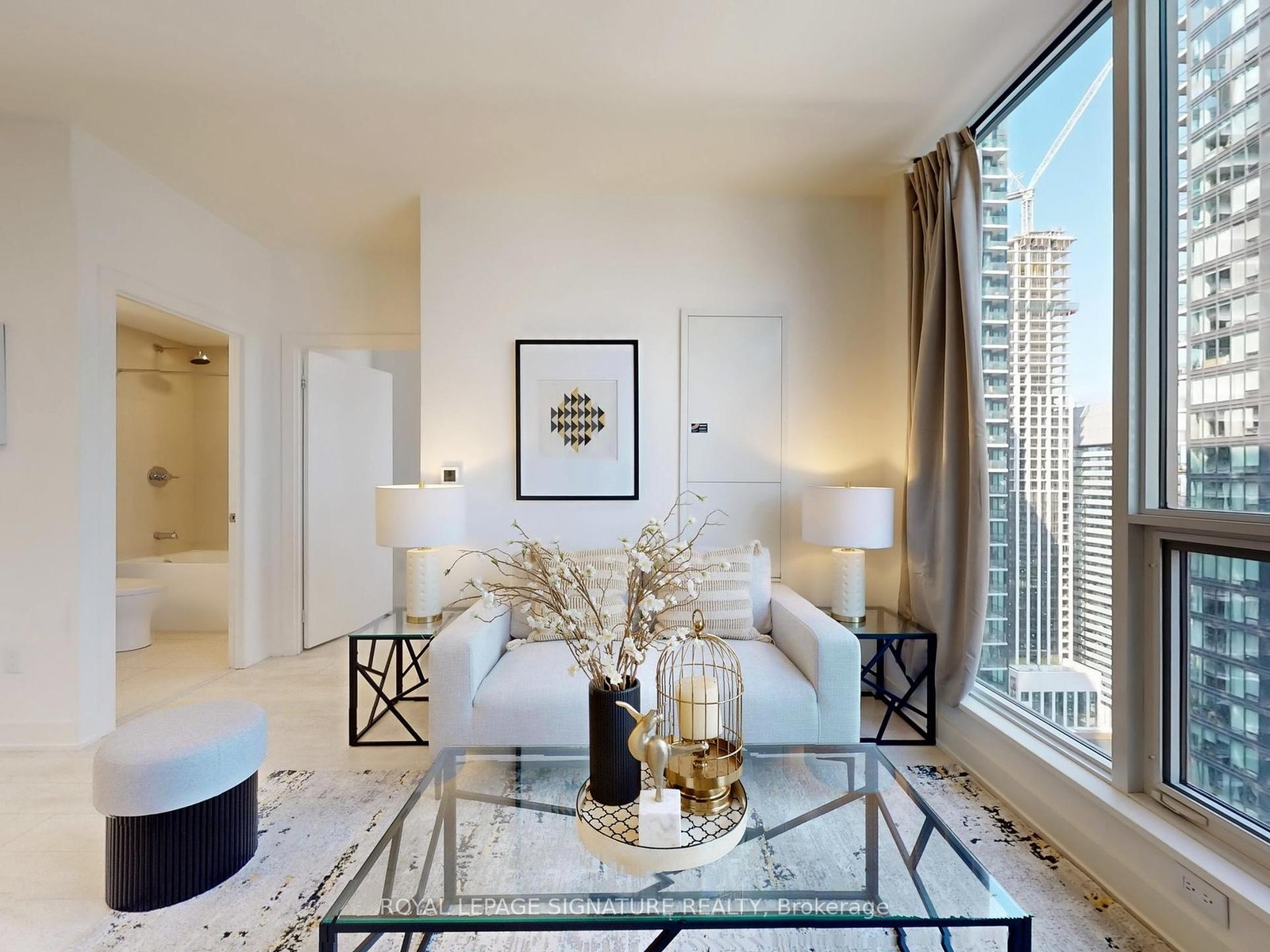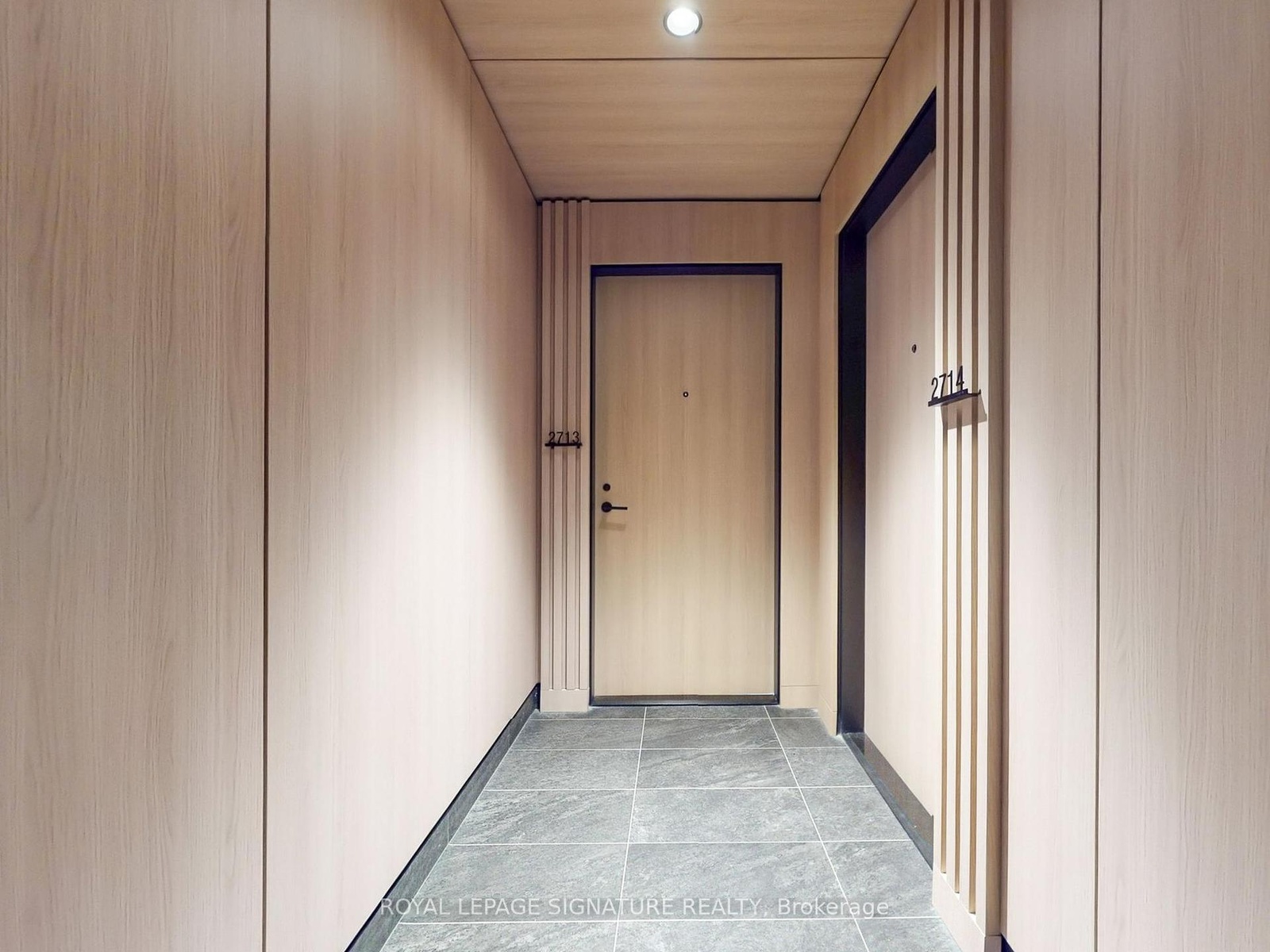 Welcome to unit 2713 at the Prestigious Nobu Residences - 692 Square feet as per builder plans| This unit features a functional split bedroom design with 2 full baths| Bright and spacious unit with tasteful finishes| Integrated kitchen with built in oven, cooktop, sleek exhaust fan, integrated fridge and dishwasher, microwave in pantry with shut off switch, and ample pot lights| Sleek white glass double door closets|