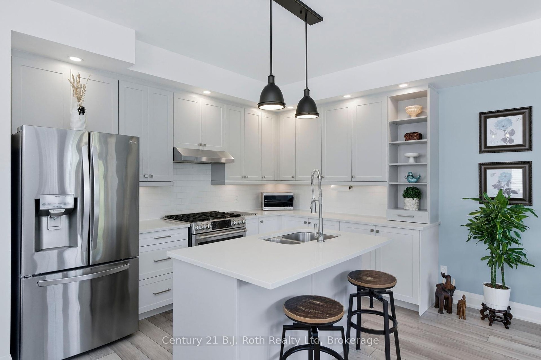 QUICK CLOSING AVAILABLE if needed. Welcome to this Cape Cod Style SEMI-DETACHED home in the charming community of Seasons Little Lake. Move in ready. Shows 10+++. One owner. Many upgrades. Some of the features of this home are: Corner Semi Detached with easy car access to front, side and rear of home. One single car garage with man door and one parking spot outdoor. 9 FOOT CEILINGS on main and upper level. Stunning kitchen with soft close cabinetry, QUARTZ countertops. PANTRY on main floor by kitchen. 33 inch LG stainless steel fridge with outside water and ice dispenser. GE Dual Fuel/Double oven 30 inch stove. High end Samsung front load washer & dryer. Primary bedroom with 3 piece shower ensuite on main level. 2 piece washroom on main level. All windows coverings including remote control blinds in great room. 100% oak stairs leading to basement, Natural gas at rear patio for BBQ hookup. Condo fees include snow removal, grass & tree maintenance, window cleaning, replacement of windows, roof, patio. home exterior insurance. Basement is finished for a cozy TV games room. Storage, laundry room and 2 piece washroom. Upstairs is an office, 2nd bedroom, 3 piece washroom. Come and take a look. Close by is Little Lake, Georgian Bay, major stores, LCBO, restaurants, Theatre, Bike trails, town dock, arts centre, parks, place of worship, hospital, library, sports centre and more. Book your showing today.