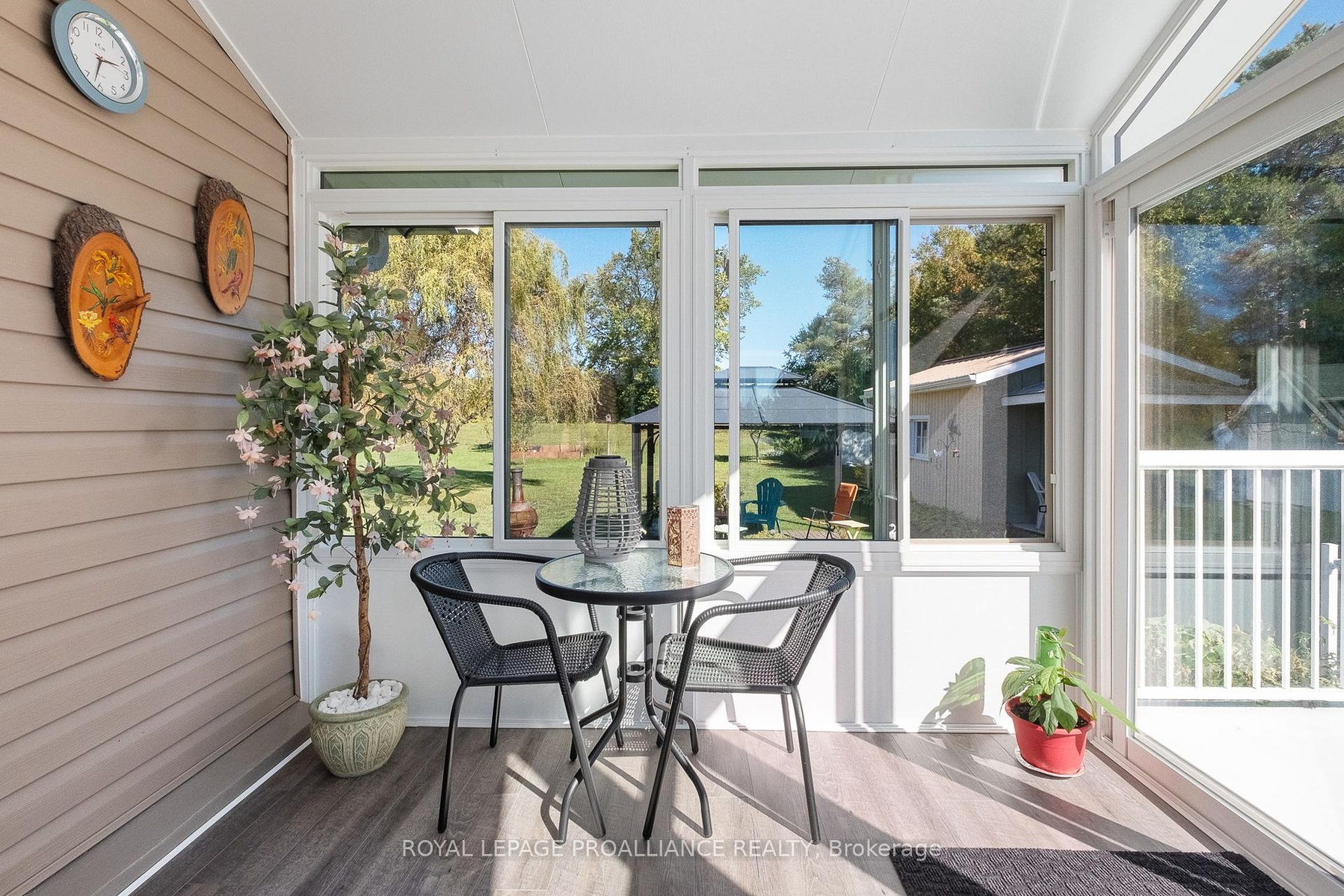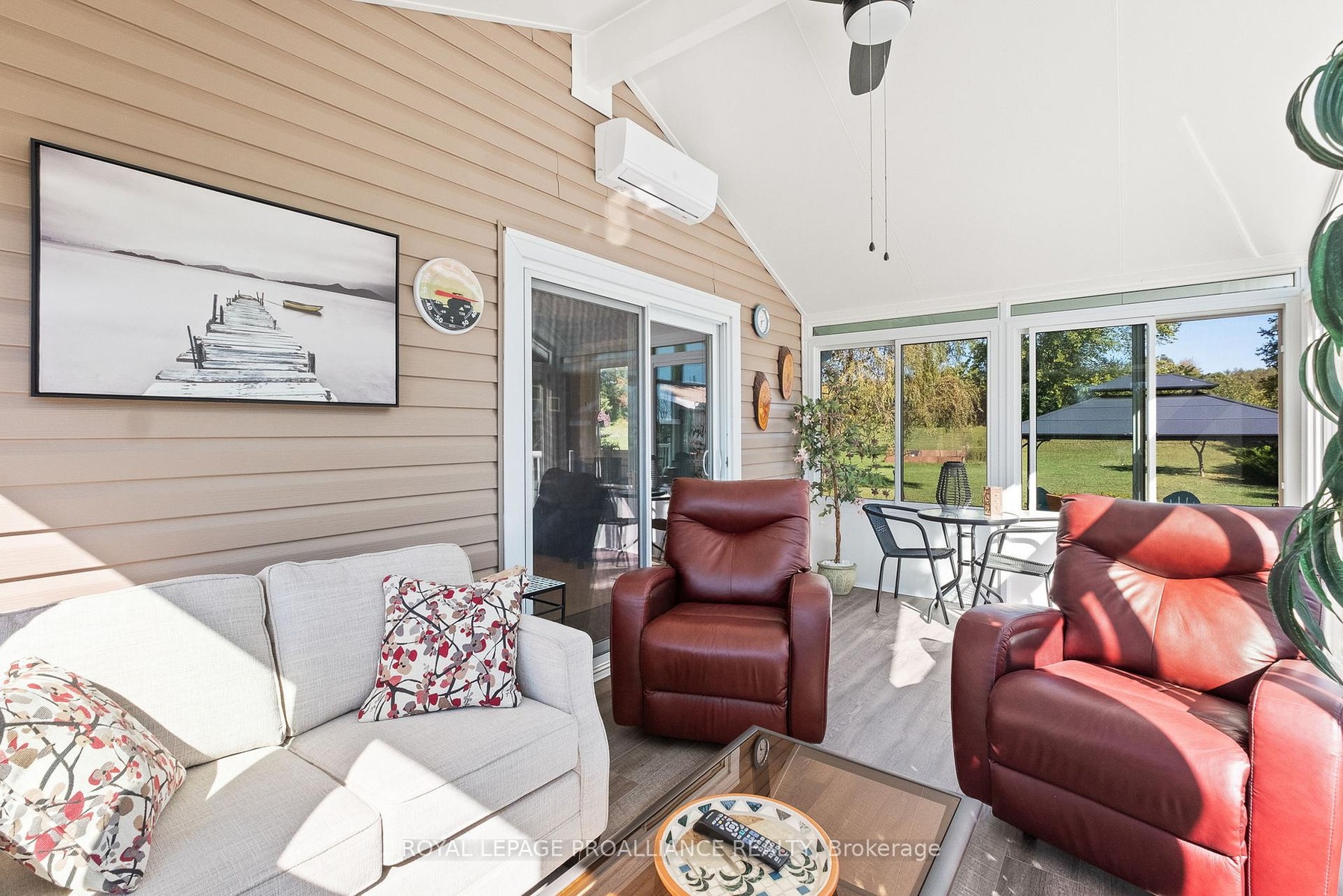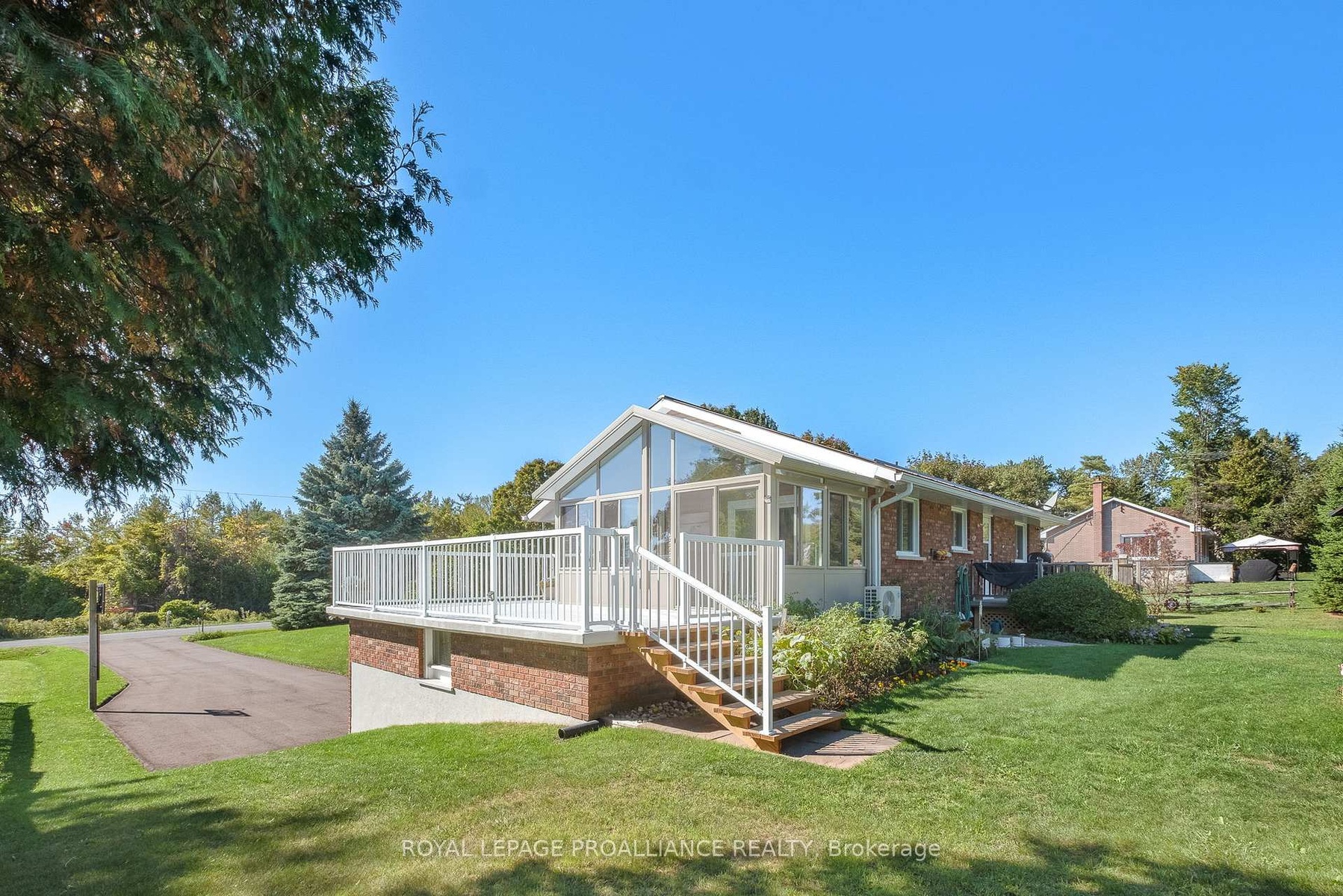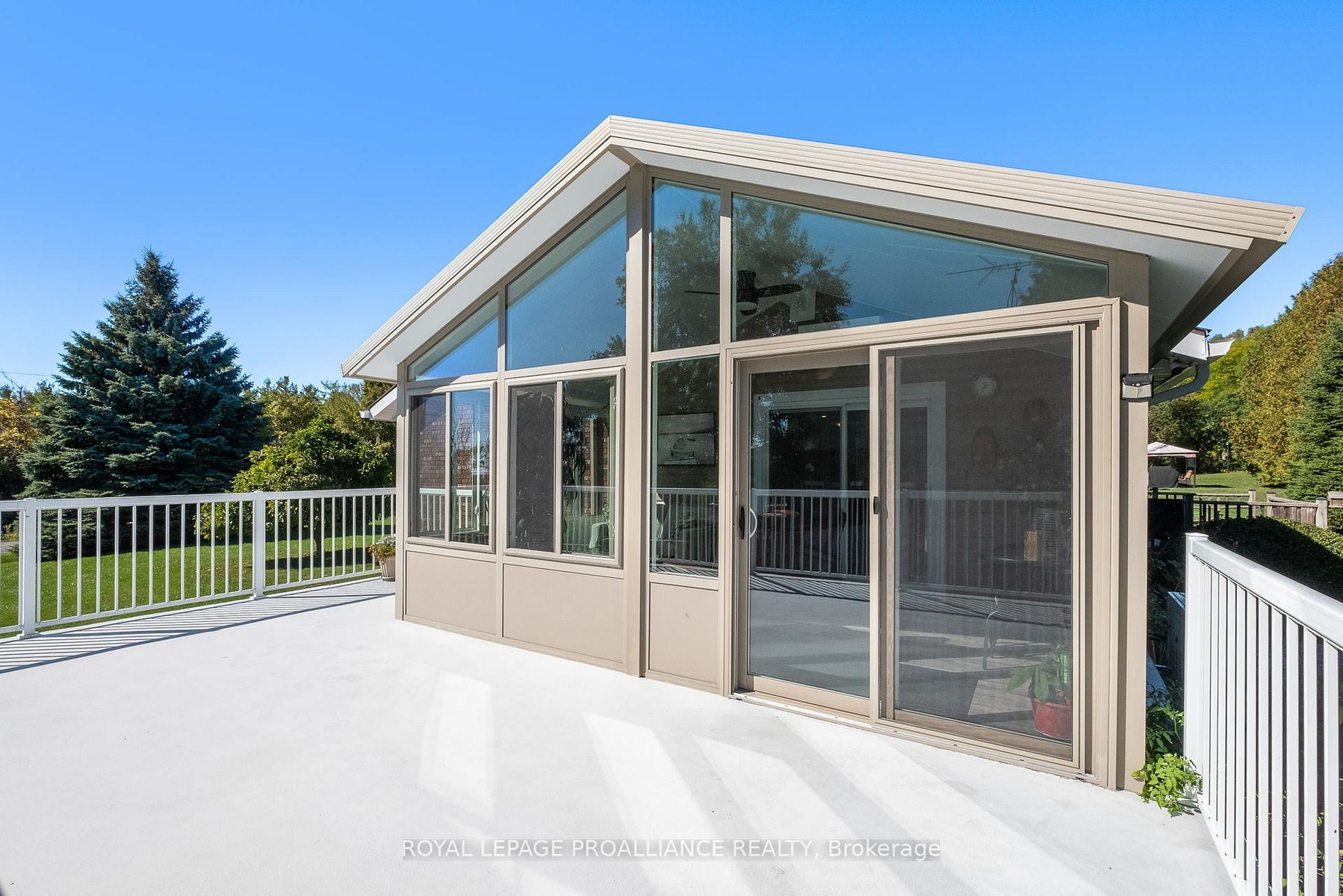 When Location Tops Your List - This One Delivers! Set on a private, beautifully landscaped lot just minutes from Cobourg's beach, marina, golf, hospital, shopping, dining, and 401 access, this meticulously maintained raised bungalow offers the perfect blend of country charm and town convenience. Step inside this bright and updated 2+1 bedroom, 2-bathroom home and be instantly impressed. The modern gourmet kitchen features granite counters, extensive custom cabinetry, and a built-in desk perfect for everyday living and entertaining. A stunning 4-season sunroom with cathedral ceiling, heat/AC, and wraparound windows opens to a unique upper deck with views of Lake Ontario ideal for morning coffee or sunset gatherings. The lower level offers a generous family room, freshly renovated 3-piece bath, bright third bedroom, and a large laundry area with direct entry to the 1.5-car garage. Enjoy quality finishes throughout, including hardwood, tile, and luxury vinyl plank flooring. Energy efficiency is top-notch with a ground-source heat pump and premium Water Furnace system offering substantial hydro savings. Outside, the charm continues with perennial gardens, fruit trees, berries, asparagus beds, and a steel gazebo with custom rubber flooring. Three custom sheds (10x18, 8x10, 8x8) provide excellent storage. Additional upgrades include a lifetime metal roof, freshly paved drive, newer windows, high-end kitchen appliances (10K+), dusk-to-dawn motion lighting, and security system. Full list of features/upgrades attached. Move-in ready and truly special this is the one you've been waiting for!