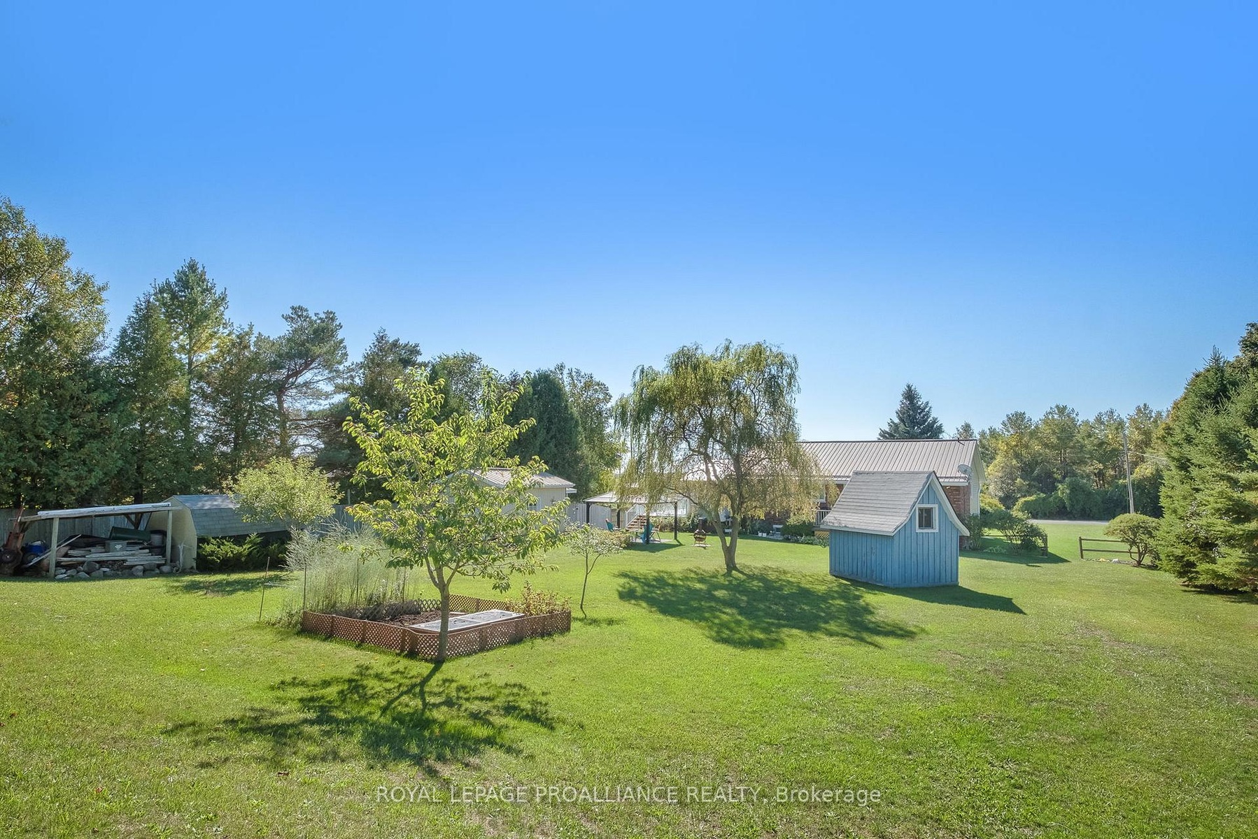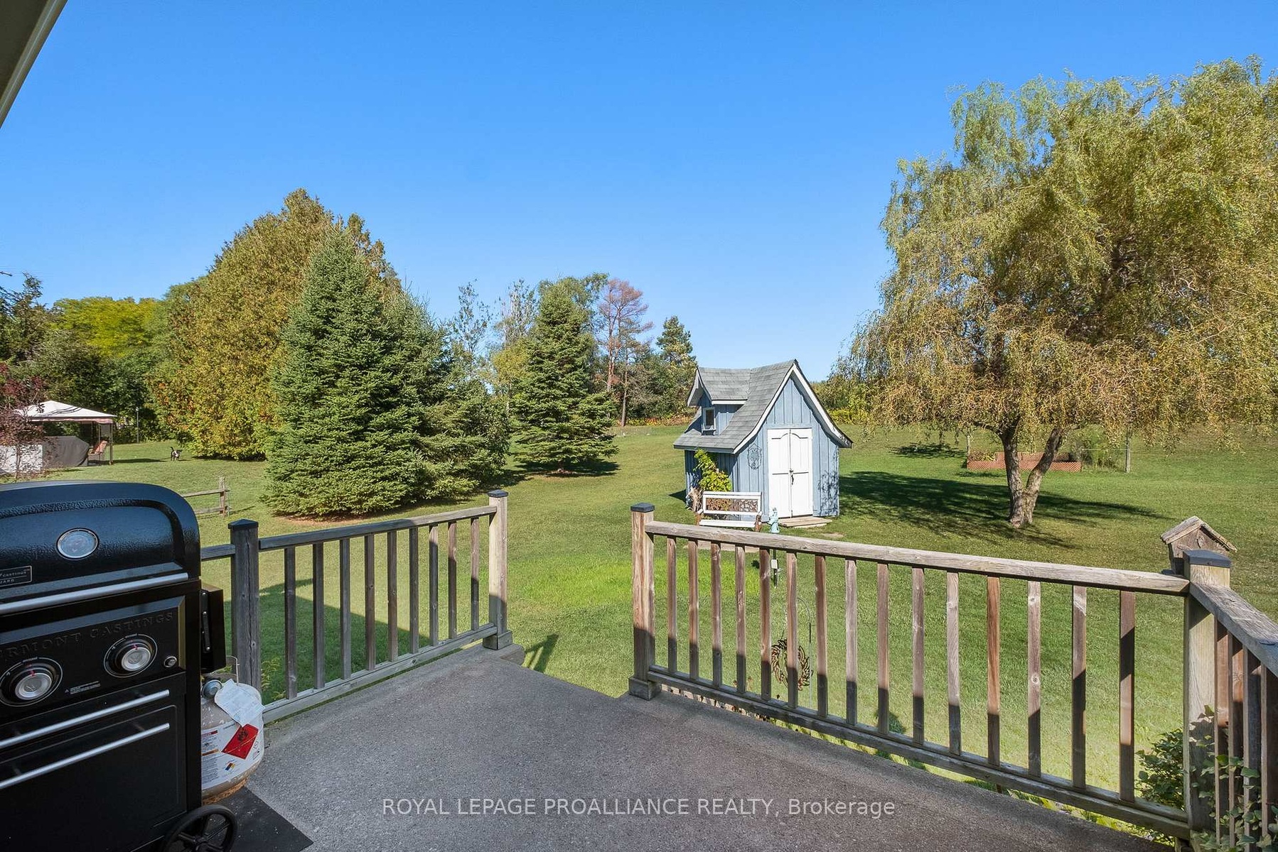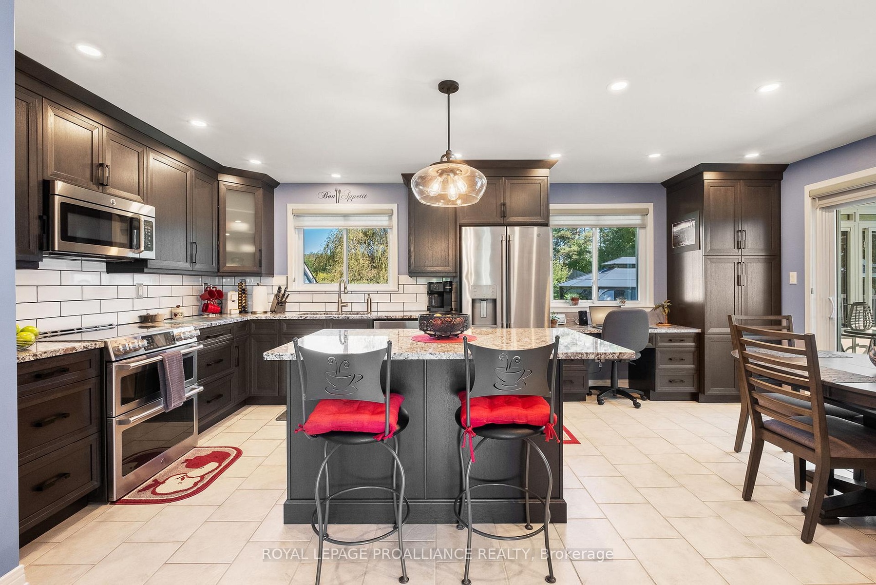 When Location Tops Your List - This One Delivers! Set on a private, beautifully landscaped lot just minutes from Cobourg's beach, marina, golf, hospital, shopping, dining, and 401 access, this meticulously maintained raised bungalow offers the perfect blend of country charm and town convenience. Step inside this bright and updated 2+1 bedroom, 2-bathroom home and be instantly impressed. The modern gourmet kitchen features granite counters, extensive custom cabinetry, and a built-in desk perfect for everyday living and entertaining. A stunning 4-season sunroom with cathedral ceiling, heat/AC, and wraparound windows opens to a unique upper deck with views of Lake Ontario ideal for morning coffee or sunset gatherings. The lower level offers a generous family room, freshly renovated 3-piece bath, bright third bedroom, and a large laundry area with direct entry to the 1.5-car garage. Enjoy quality finishes throughout, including hardwood, tile, and luxury vinyl plank flooring. Energy efficiency is top-notch with a ground-source heat pump and premium Water Furnace system offering substantial hydro savings. Outside, the charm continues with perennial gardens, fruit trees, berries, asparagus beds, and a steel gazebo with custom rubber flooring. Three custom sheds (10x18, 8x10, 8x8) provide excellent storage. Additional upgrades include a lifetime metal roof, freshly paved drive, newer windows, high-end kitchen appliances (10K+), dusk-to-dawn motion lighting, and security system. Full list of features/upgrades attached. Move-in ready and truly special this is the one you've been waiting for!