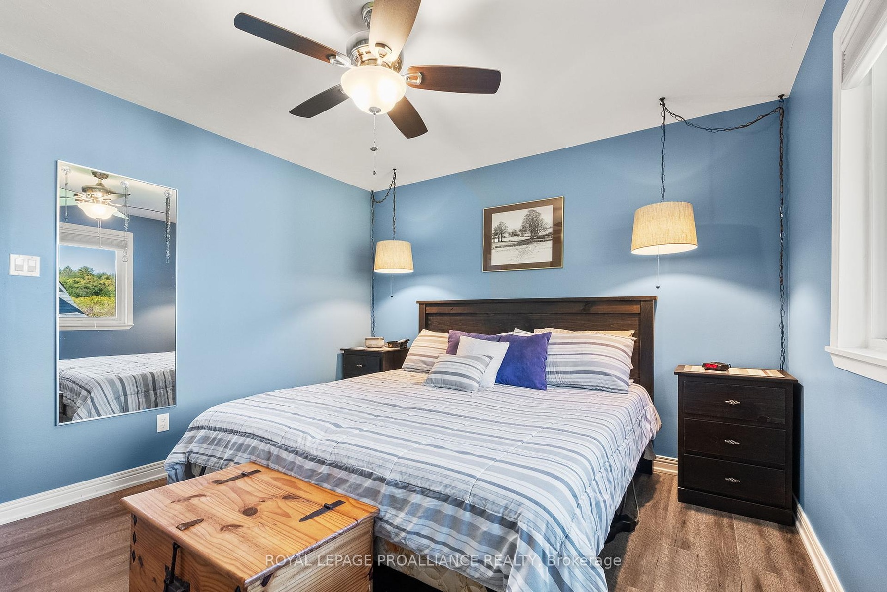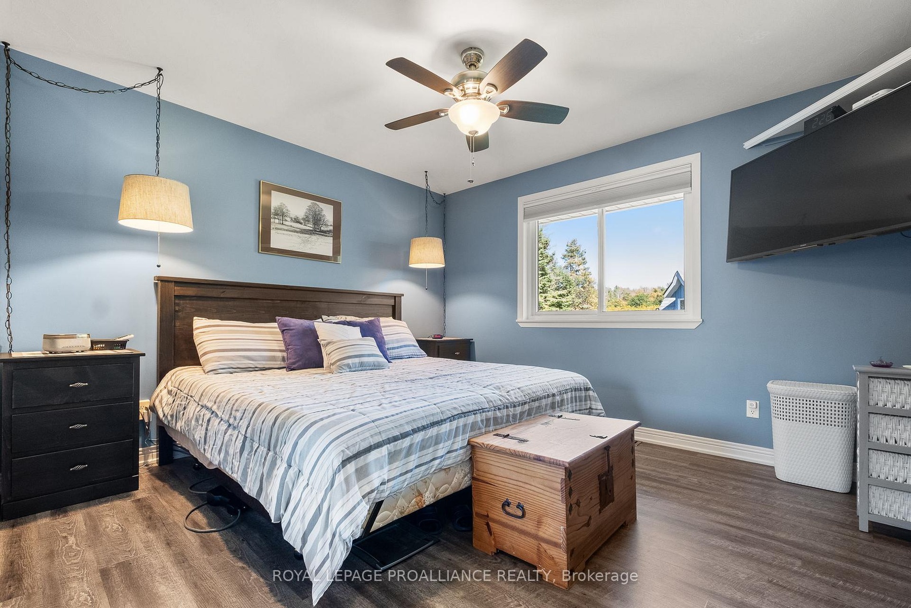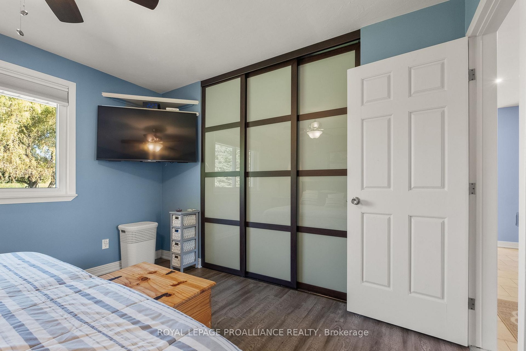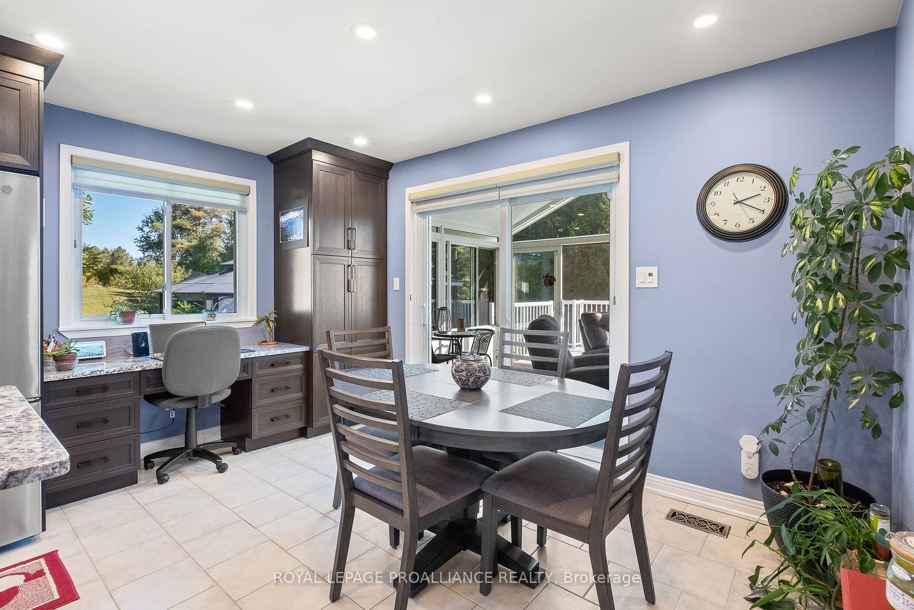 When Location Tops Your List - This One Delivers! Set on a private, beautifully landscaped lot just minutes from Cobourg's beach, marina, golf, hospital, shopping, dining, and 401 access, this meticulously maintained raised bungalow offers the perfect blend of country charm and town convenience. Step inside this bright and updated 2+1 bedroom, 2-bathroom home and be instantly impressed. The modern gourmet kitchen features granite counters, extensive custom cabinetry, and a built-in desk perfect for everyday living and entertaining. A stunning 4-season sunroom with cathedral ceiling, heat/AC, and wraparound windows opens to a unique upper deck with views of Lake Ontario ideal for morning coffee or sunset gatherings. The lower level offers a generous family room, freshly renovated 3-piece bath, bright third bedroom, and a large laundry area with direct entry to the 1.5-car garage. Enjoy quality finishes throughout, including hardwood, tile, and luxury vinyl plank flooring. Energy efficiency is top-notch with a ground-source heat pump and premium Water Furnace system offering substantial hydro savings. Outside, the charm continues with perennial gardens, fruit trees, berries, asparagus beds, and a steel gazebo with custom rubber flooring. Three custom sheds (10x18, 8x10, 8x8) provide excellent storage. Additional upgrades include a lifetime metal roof, freshly paved drive, newer windows, high-end kitchen appliances (10K+), dusk-to-dawn motion lighting, and security system. Full list of features/upgrades attached. Move-in ready and truly special this is the one you've been waiting for!