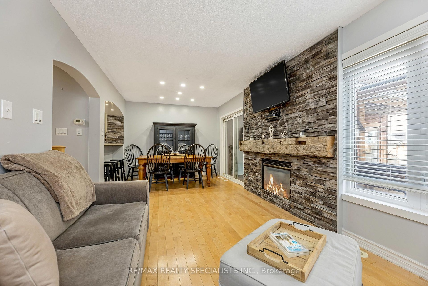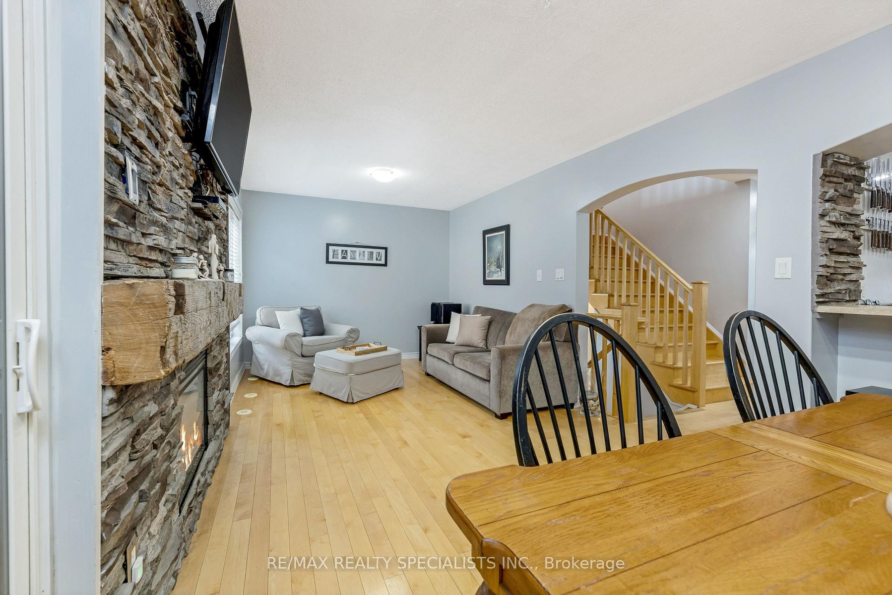 One-of-a-Kind Freehold Townhome in a Prime Milton Location Presenting a distinctive 3-bedroom, 1.5-bathroom freehold townhome offering a rare combination of comfort, quality, and convenience. Ideally situated directly across from P.L. Robertson Elementary School, this property provides an exceptional opportunity for families and first-time homebuyers seeking a move-in-ready residence in a desirable neighbourhood.The main level features hardwood flooring throughout, a bright and welcoming living room with a custom gas fireplace, and direct interior access to the garage. The kitchen is enhanced with a custom backsplash and a pass-through breakfast bar with a peek-a-boo window to the adjoining dining area, promoting a sense of connection while maintaining distinct living spaces. Beyond the dining area lies a cozy reading nook complete with a second custom fireplace, ideal for relaxation or quiet retreat. The private backyard is designed for low maintenance, featuring artificial turf and an expanded deck, perfect for entertaining or outdoor enjoyment.The upper level hosts the primary bedroom with his-and-hers stylish barn door closets and private access to the Jack & Jill bathroom. One other bedroom offers a stylish barn door, they provide both charm and practicality.The unfinished basement, complete with a bathroom rough-in, presents excellent potential for future customization ideal for a recreation room, fitness area, or additional storage.With numerous custom finishes and thoughtful upgrades, this residence stands apart for its design, craftsmanship, and meticulous care.Located within one of Miltons most sought-after family-oriented communities, the home offers convenient proximity to schools, parks, shopping, and major highways ensuring both accessibility and lifestyle appeal. *Upgrades Include: Washer & Dryer 2023, Expanded Deck, A/C recharged July 2025, Furnace motherboard rebuilt in 2023, Stove 2021