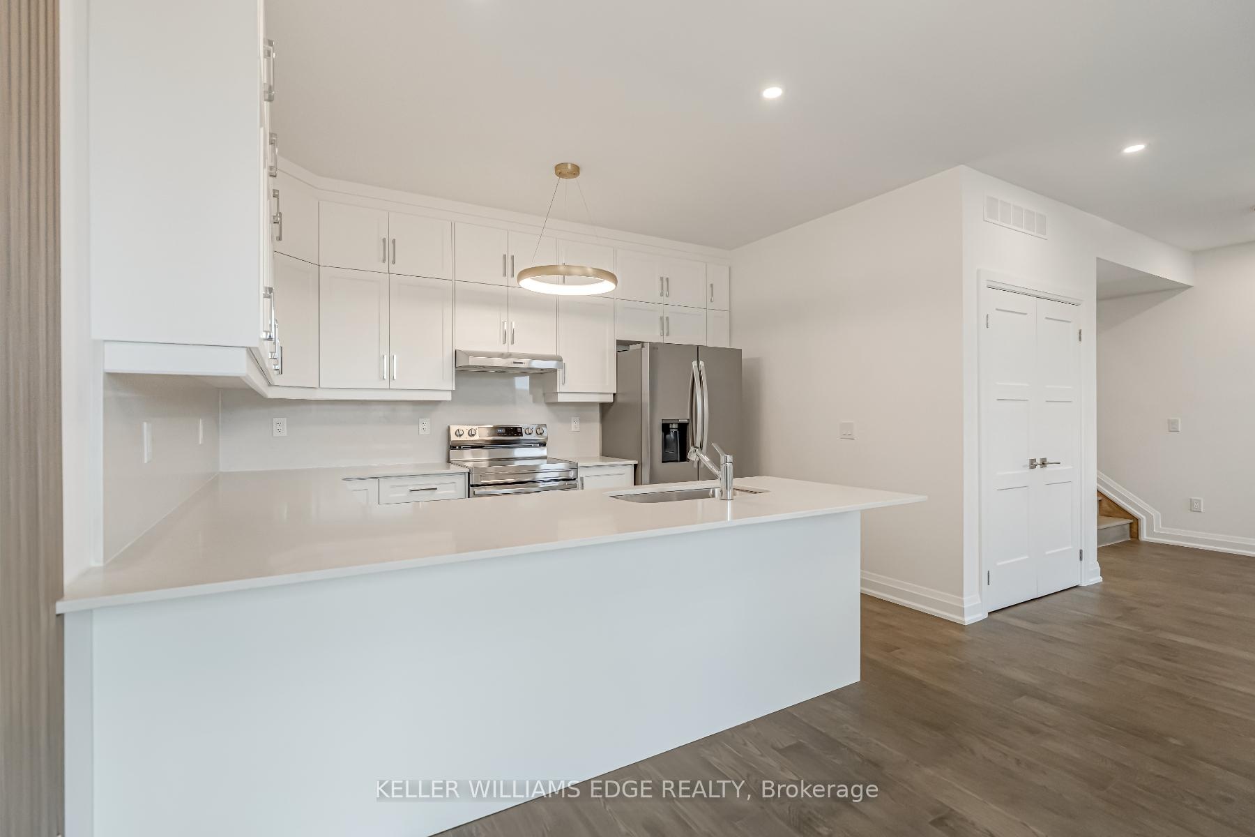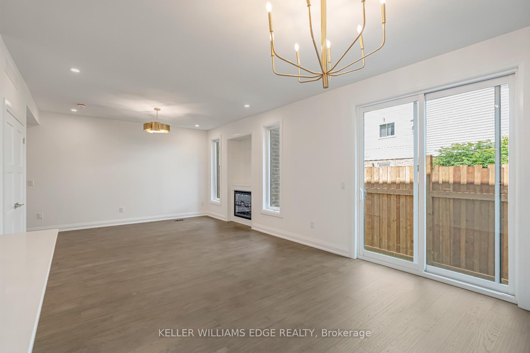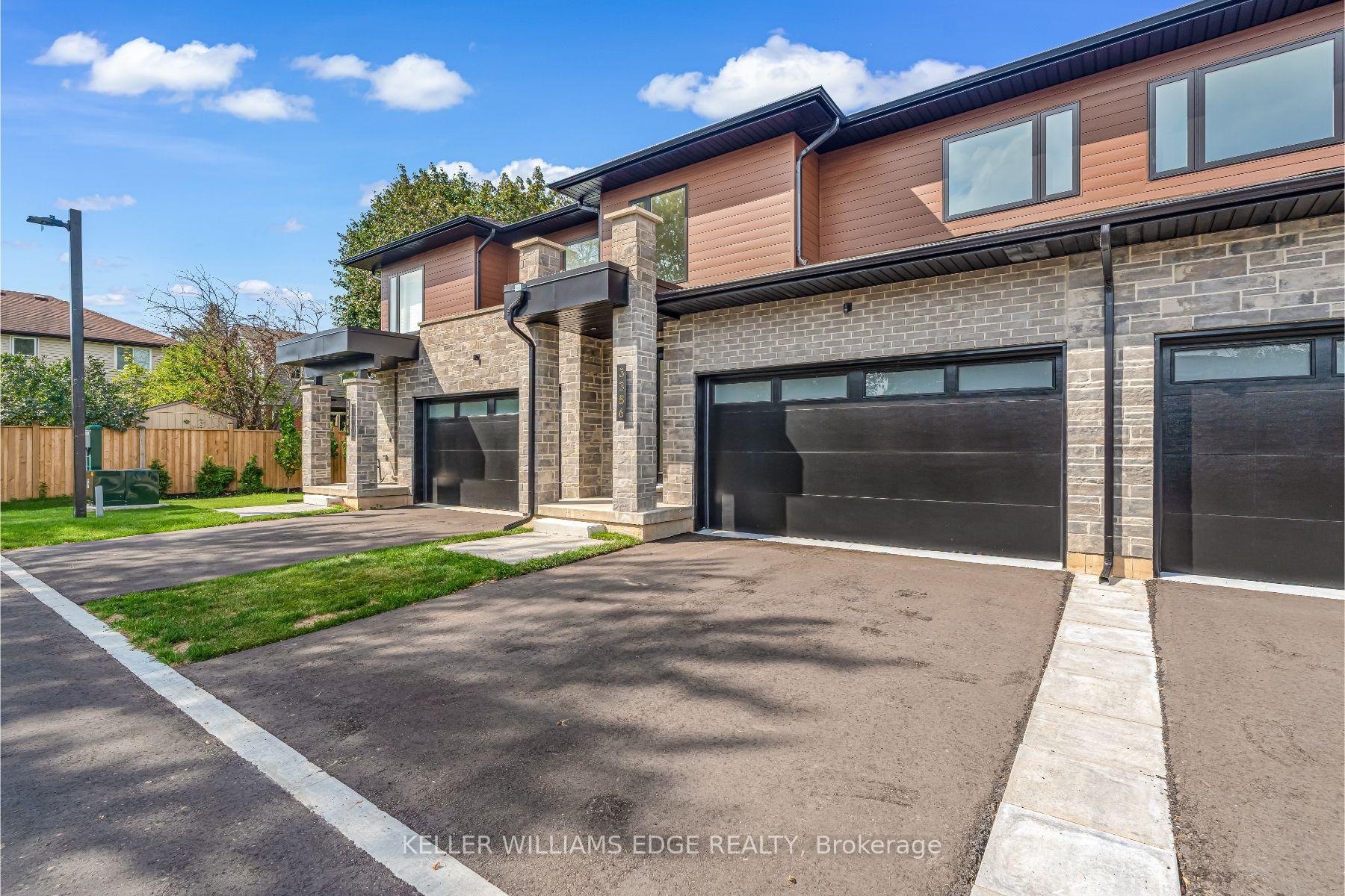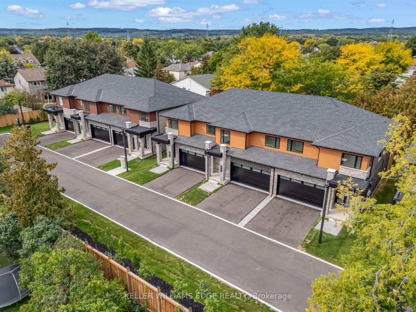 Brand-new executive town home never lived in! This stunning 1,747 sq. ft. home is situated in an exclusive enclave of just nine units, offering privacy and modern luxury. Its sleek West Coast-inspired exterior features a stylish blend of stone, brick, and aluminum faux wood. Enjoy the convenience of a double-car garage plus space for two additional vehicles in the driveway. Inside, 9-foot ceilings and engineered hardwood floors enhance the open-concept main floor, bathed in natural light from large windows and sliding glass doors leading to a private, fenced backyard perfect for entertaining. The designer kitchen is a chefs dream, boasting white shaker-style cabinets with extended uppers, quartz countertops, a stylish backsplash, stainless steel appliances, a large breakfast bar, and a separate pantry. Ideally located just minutes from the QEW, 407, and Burlington GO Station, with shopping, schools, parks, and golf courses nearby. A short drive to Lake Ontario adds to its appeal. Perfect for down sizers, busy executives, or families, this home offers low-maintenance living with a $349/month condo fee covering common area upkeep only, including grass cutting and street snow removal. Don't miss this rare opportunity schedule your viewing today! Tarion Warranty!