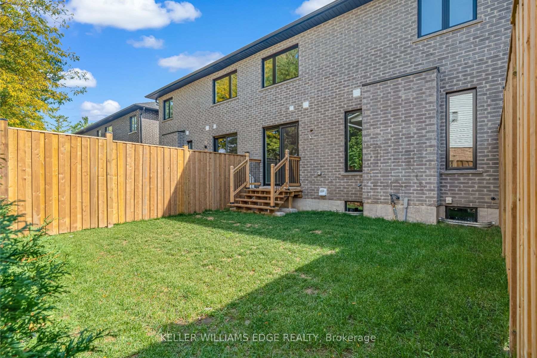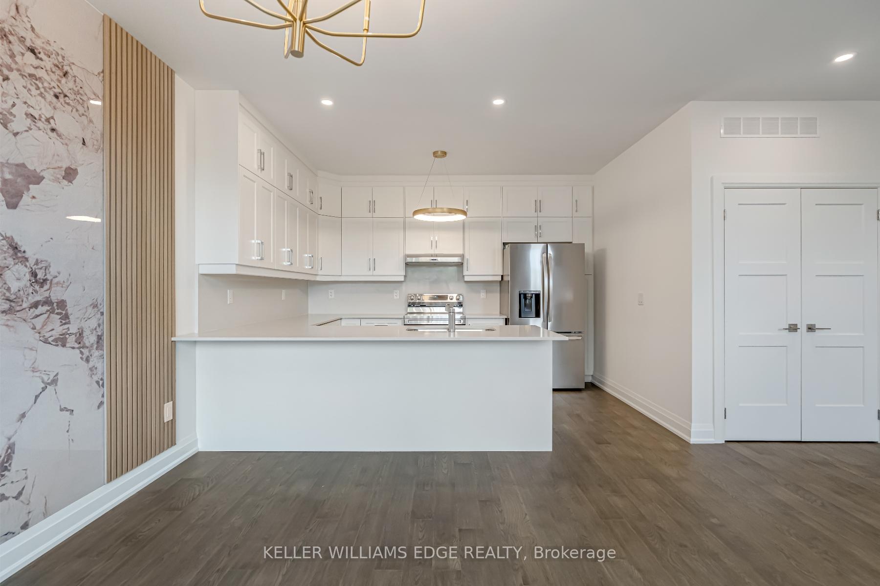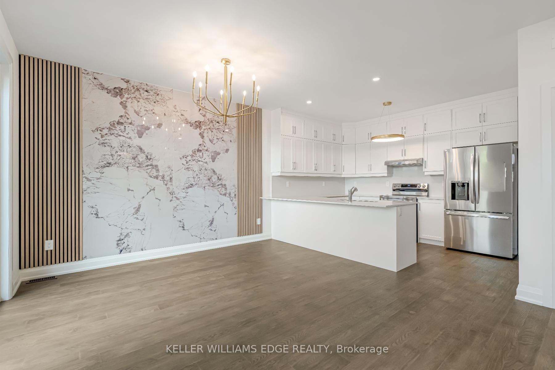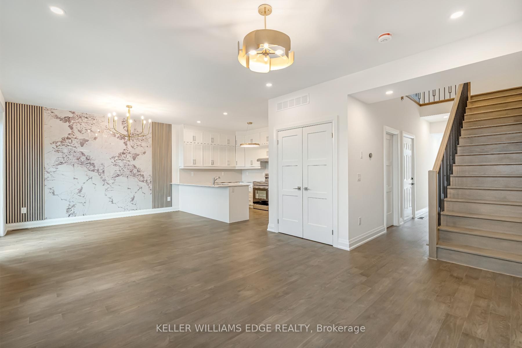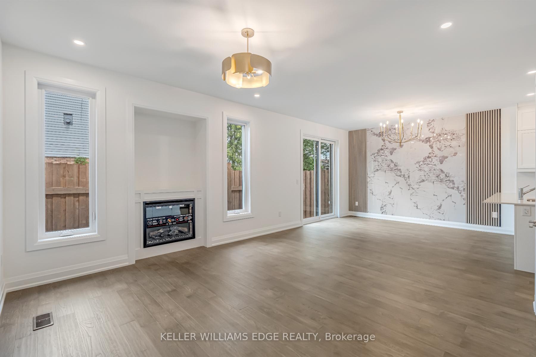 Brand-new executive town home never lived in! This stunning 1,747 sq. ft. home is situated in an exclusive enclave of just nine units, offering privacy and modern luxury. Its sleek West Coast-inspired exterior features a stylish blend of stone, brick, and aluminum faux wood. Enjoy the convenience of a double-car garage plus space for two additional vehicles in the driveway. Inside, 9-foot ceilings and engineered hardwood floors enhance the open-concept main floor, bathed in natural light from large windows and sliding glass doors leading to a private, fenced backyard perfect for entertaining. The designer kitchen is a chefs dream, boasting white shaker-style cabinets with extended uppers, quartz countertops, a stylish backsplash, stainless steel appliances, a large breakfast bar, and a separate pantry. Ideally located just minutes from the QEW, 407, and Burlington GO Station, with shopping, schools, parks, and golf courses nearby. A short drive to Lake Ontario adds to its appeal. Perfect for down sizers, busy executives, or families, this home offers low-maintenance living with a $349/month condo fee covering common area upkeep only, including grass cutting and street snow removal. Don't miss this rare opportunity schedule your viewing today! Tarion Warranty!