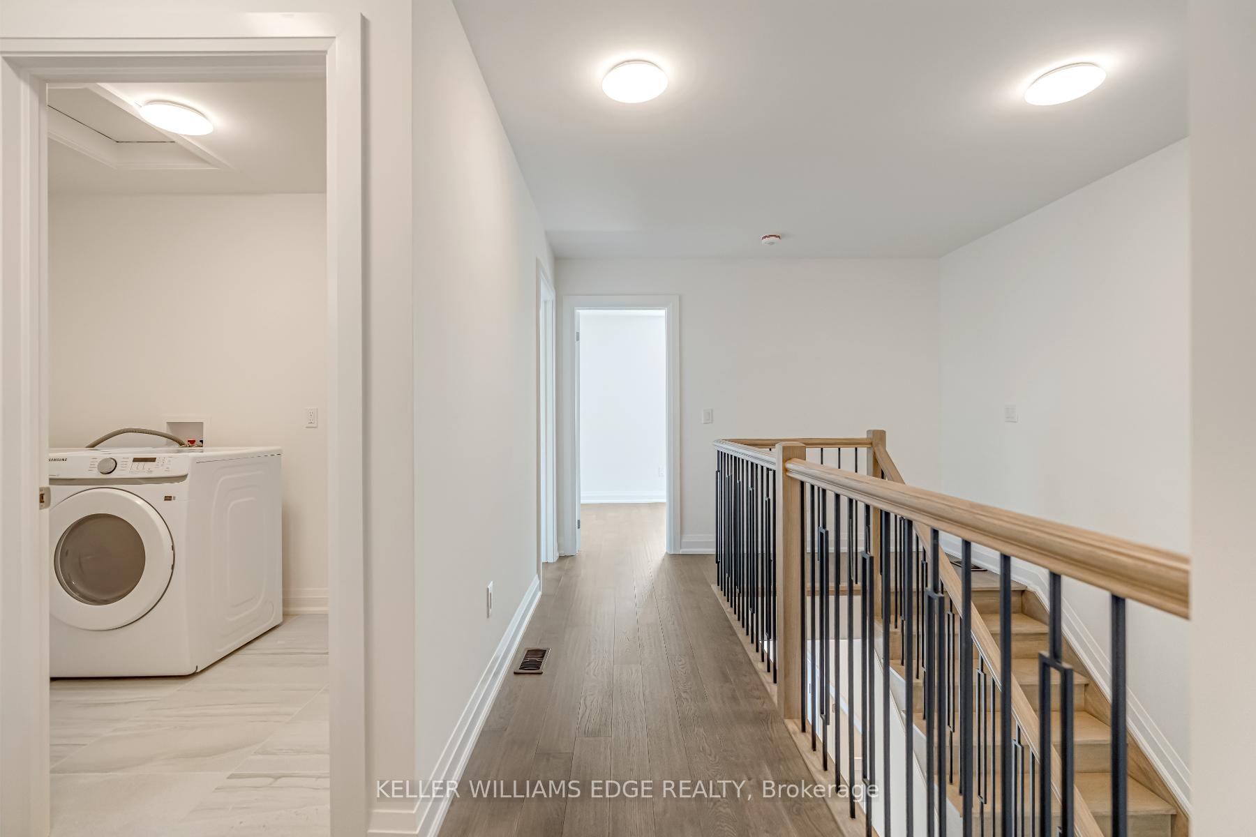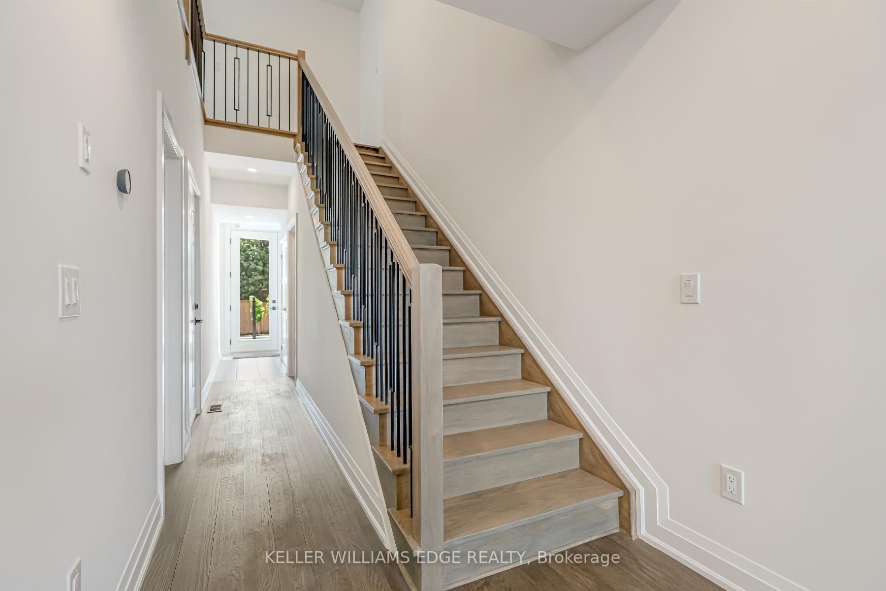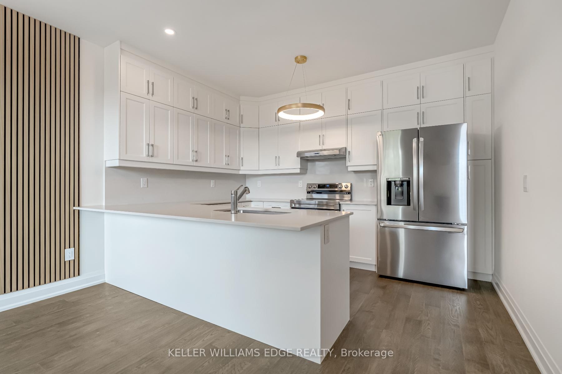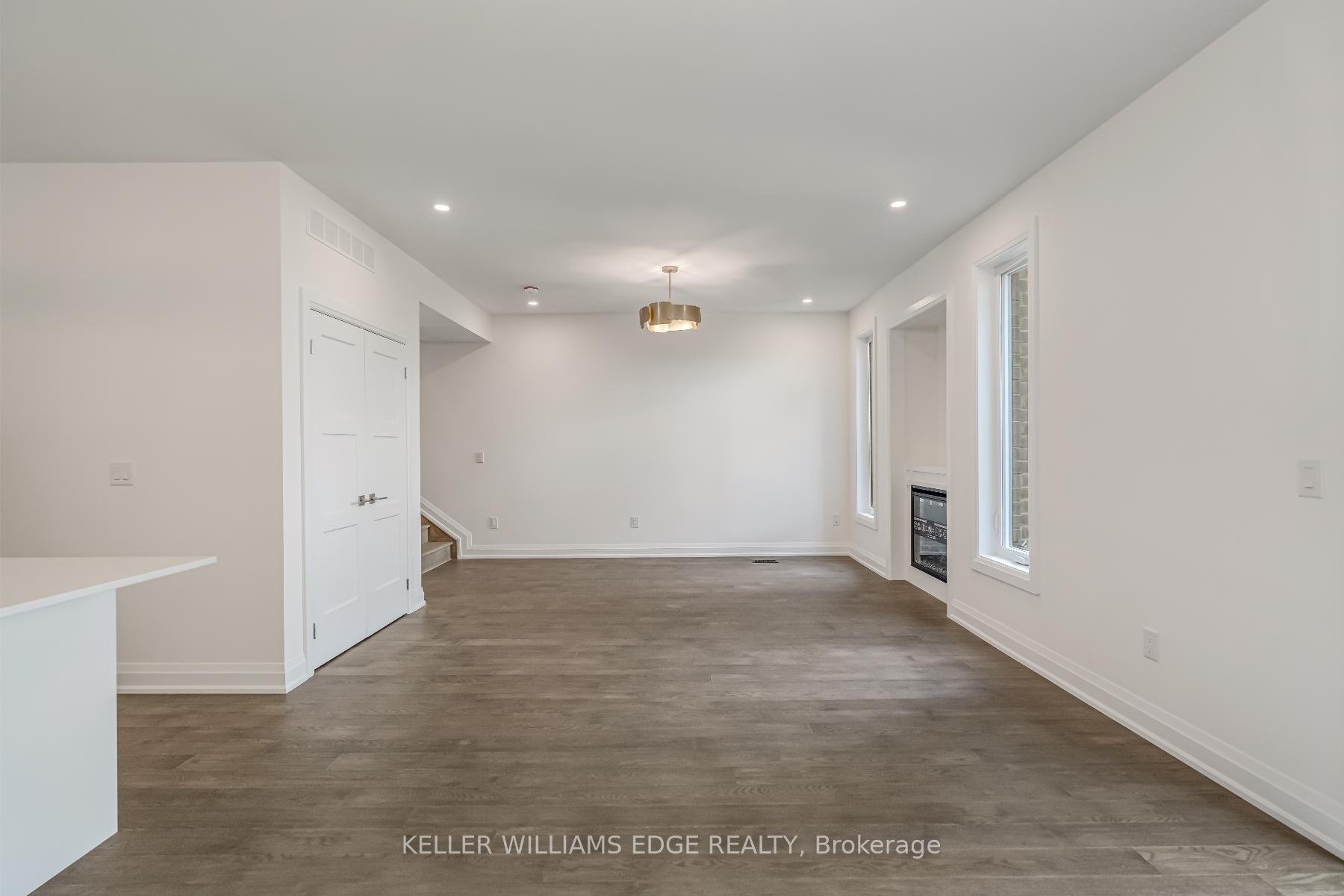 Brand-new executive town home never lived in! This stunning 1,747 sq. ft. home is situated in an exclusive enclave of just nine units, offering privacy and modern luxury. Its sleek West Coast-inspired exterior features a stylish blend of stone, brick, and aluminum faux wood. Enjoy the convenience of a double-car garage plus space for two additional vehicles in the driveway. Inside, 9-foot ceilings and engineered hardwood floors enhance the open-concept main floor, bathed in natural light from large windows and sliding glass doors leading to a private, fenced backyard perfect for entertaining. The designer kitchen is a chefs dream, boasting white shaker-style cabinets with extended uppers, quartz countertops, a stylish backsplash, stainless steel appliances, a large breakfast bar, and a separate pantry. Ideally located just minutes from the QEW, 407, and Burlington GO Station, with shopping, schools, parks, and golf courses nearby. A short drive to Lake Ontario adds to its appeal. Perfect for down sizers, busy executives, or families, this home offers low-maintenance living with a $349/month condo fee covering common area upkeep only, including grass cutting and street snow removal. Don't miss this rare opportunity schedule your viewing today! Tarion Warranty!