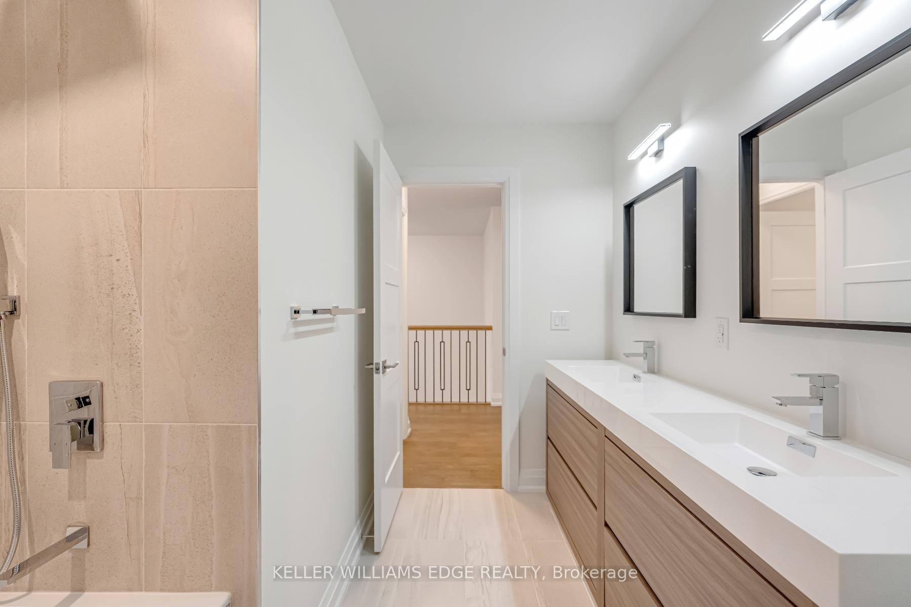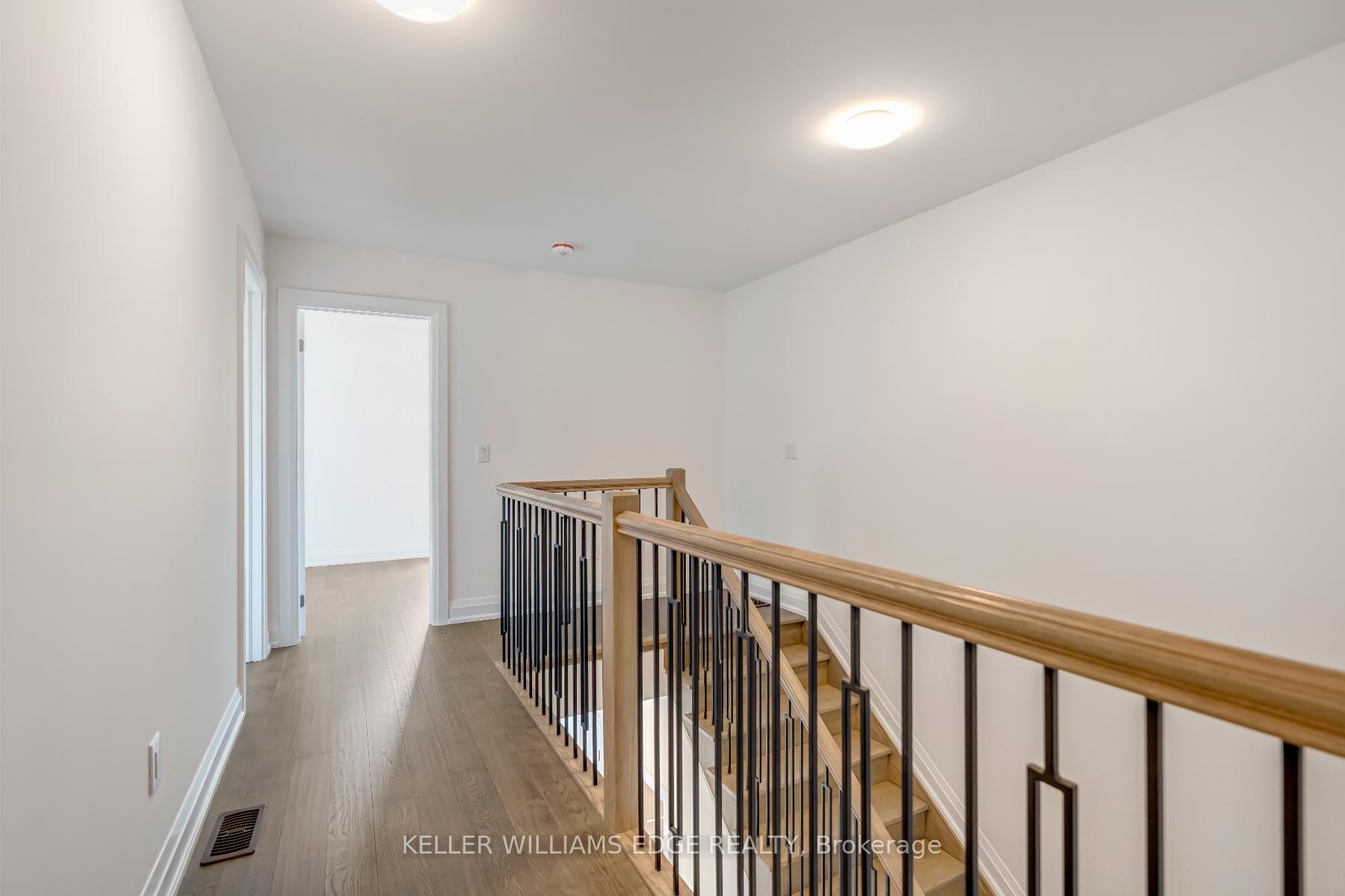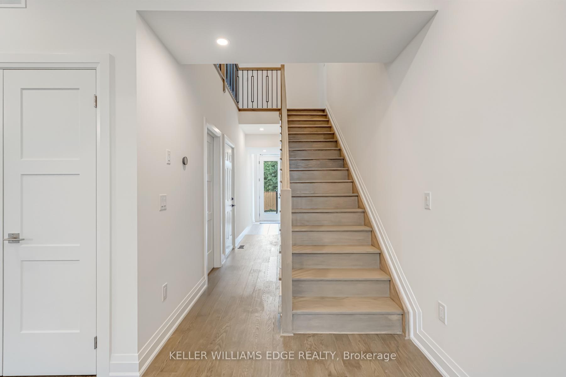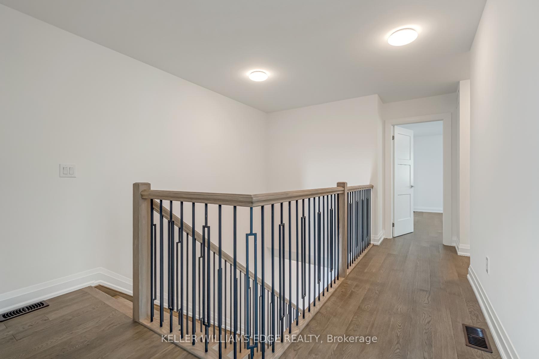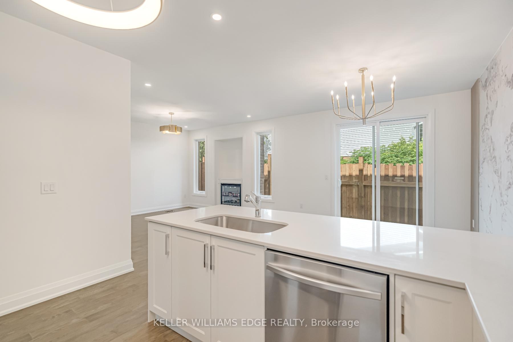 Brand-new executive town home never lived in! This stunning 1,747 sq. ft. home is situated in an exclusive enclave of just nine units, offering privacy and modern luxury. Its sleek West Coast-inspired exterior features a stylish blend of stone, brick, and aluminum faux wood. Enjoy the convenience of a double-car garage plus space for two additional vehicles in the driveway. Inside, 9-foot ceilings and engineered hardwood floors enhance the open-concept main floor, bathed in natural light from large windows and sliding glass doors leading to a private, fenced backyard perfect for entertaining. The designer kitchen is a chefs dream, boasting white shaker-style cabinets with extended uppers, quartz countertops, a stylish backsplash, stainless steel appliances, a large breakfast bar, and a separate pantry. Ideally located just minutes from the QEW, 407, and Burlington GO Station, with shopping, schools, parks, and golf courses nearby. A short drive to Lake Ontario adds to its appeal. Perfect for down sizers, busy executives, or families, this home offers low-maintenance living with a $349/month condo fee covering common area upkeep only, including grass cutting and street snow removal. Don't miss this rare opportunity schedule your viewing today! Tarion Warranty!