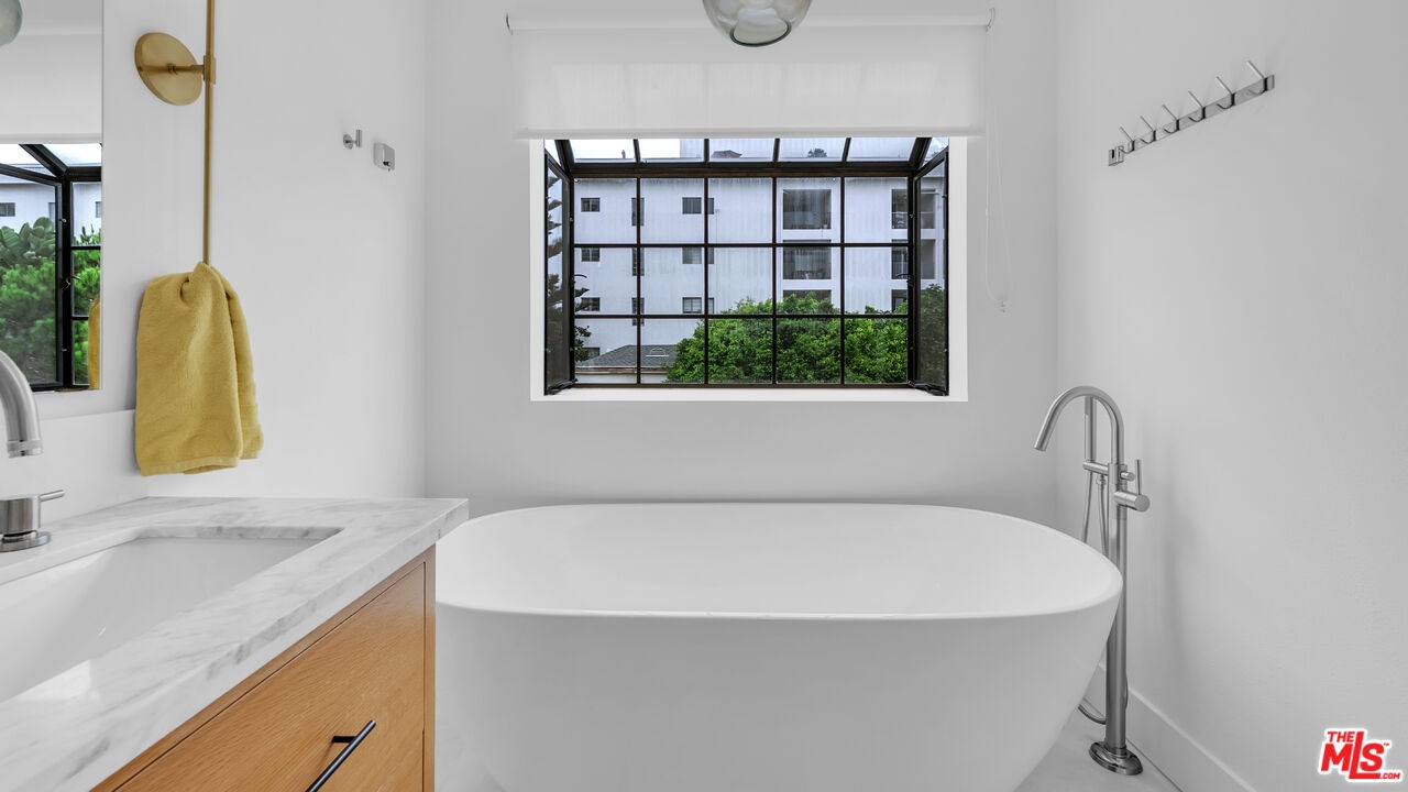 DescriptionJust off Ocean Avenue, this Santa Monica townhome puts you a half block from Palisades Park and the bluffs. Spanning three levels with its own interior elevator and roughly 1,577 square feet, the layout is both functional and inviting. The remodeled kitchen opens to a private patio ideal for coffee in the morning or dinner outdoors. The living room gets great natural light and centers on a wood burning fireplace. Upstairs you'll find a bright guest bedroom with full bath, laundry, and a den or office. The top floor is dedicated to the primary suite with vaulted ceilings, a walk in closet, private terrace, and a bath with double vanity, soaking tub, and glass shower. Oak floors, central air, and two side by side parking spaces with storage add to the comfort. San Vicente Ocean Townhomes is a small gated community built in 1982, tucked into a quiet setting with open space to the east, yet steps to Montana and the beach. Clean, easy, and ready.NeighborhoodMore listings: