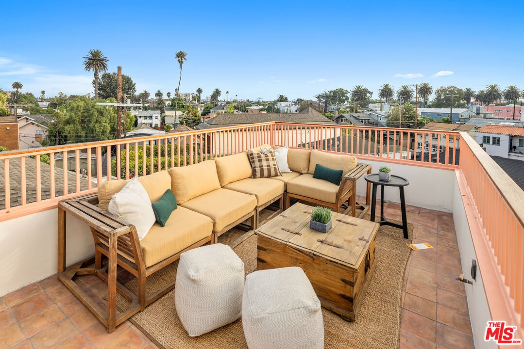 Just south of Abbot Kinney, this reimagined Craftsman blends coastal ease with modern polish. A gated front garden and lounging deck set a private tone before stepping into an airy great room with wide openings for seamless indoor outdoor living. The cook's kitchen features sleek quartz counters and integrated pro-grade appliances, anchored by generous dining and lounge areas that open to a second patio perfect for entertaining. Four bedrooms total: three upstairs including a serene primary retreat with fireplace, balcony, and walk-in closet, plus a top-floor suite with its own bath that can flex as a media room, studio, and bedroom. A spiral stair rises to a rooftop deck with neighborhood views. Smart home features include entry camera and whole-home audio/security. Parking: 3 spaces 2 covered (direct-entry) and 1 additional space. Enjoy beach-side living, steps from Abbot Kinney and an easy walk to the beach.