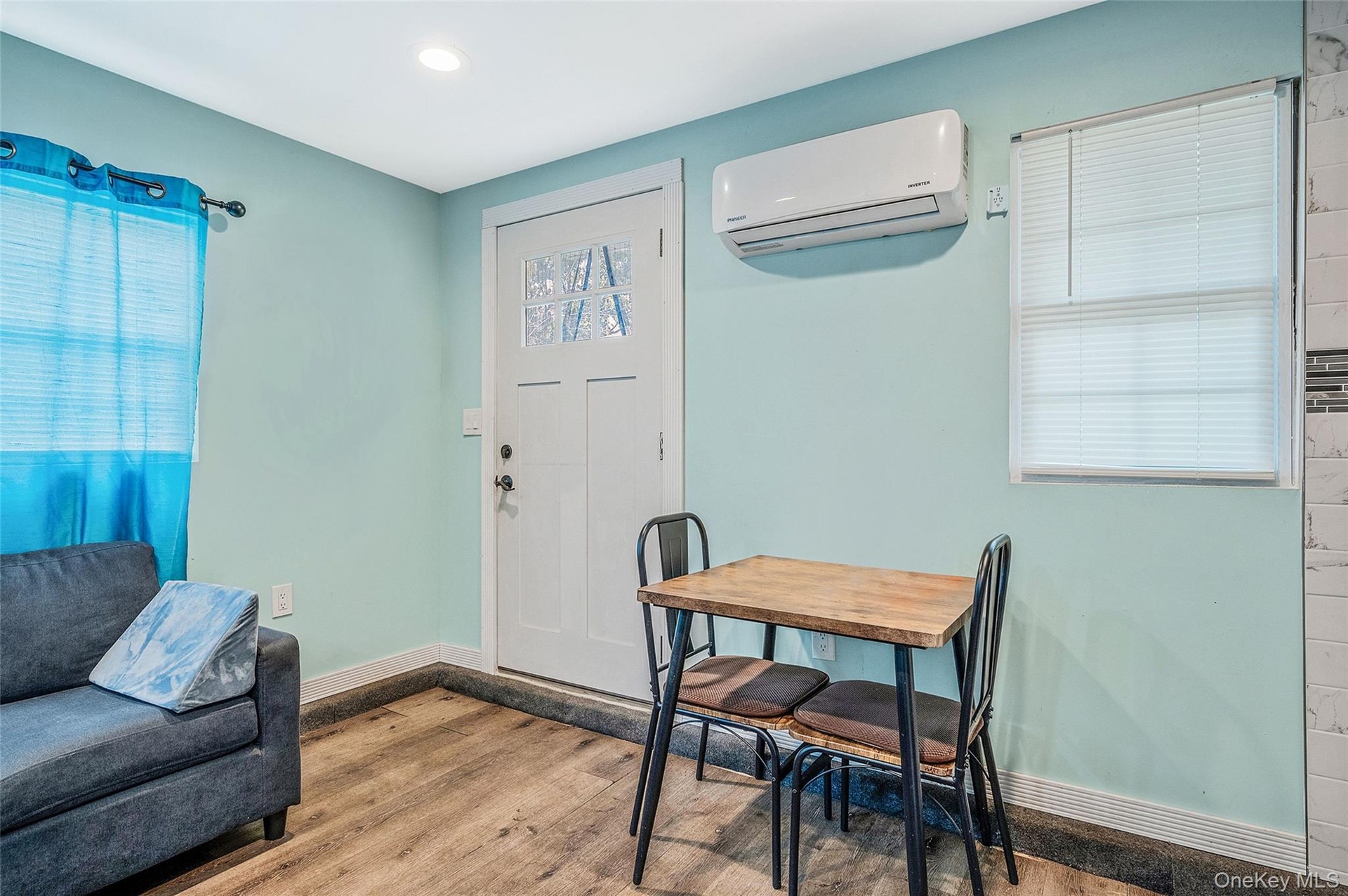 - Foyer with wood finished floors, a wall mounted AC, and recessed lighting