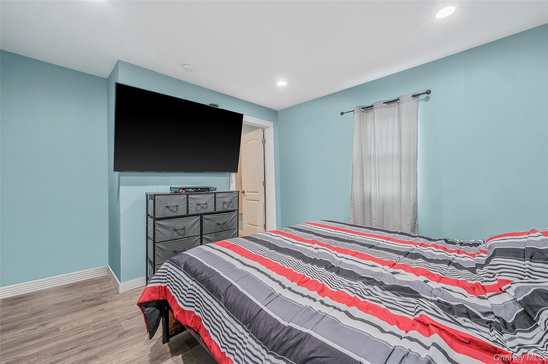 - Laundry room with light wood-type flooring, washer and dryer, and recessed lighting