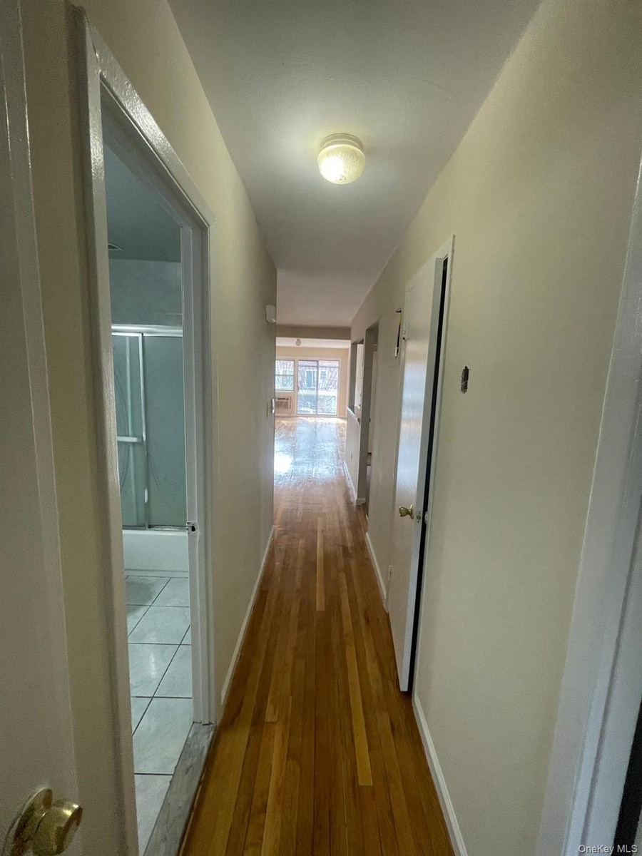 - Corridor featuring baseboards and hardwood / wood-style flooring