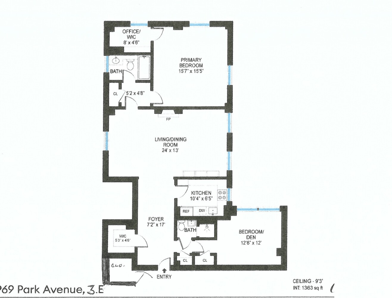 a decorative fireplace set the tone for this Park Avenue gem. The large, grand entry foyer is lined with bookshelves and can be used for dining as well. There are 2 large bedrooms each with full baths en-suite. Closets abound including 2 large walk ins, one of which