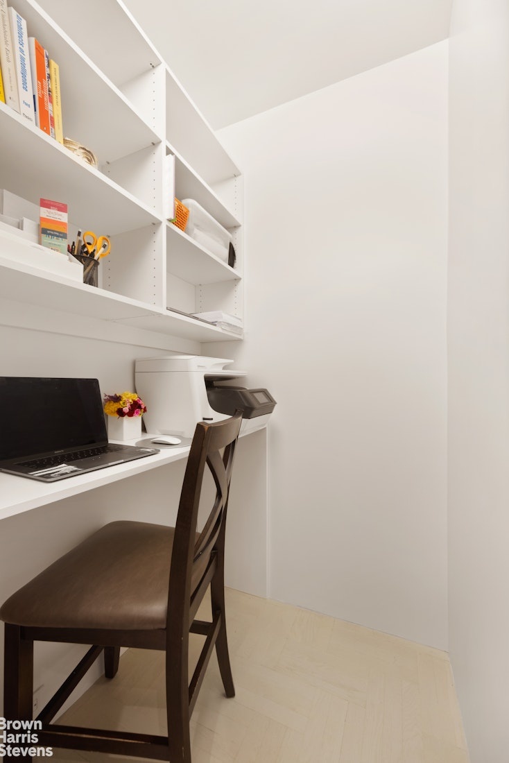 The primary bedroom is generous in scale, anchored by those same Park views, with excellent closet space, including two custom-designed walk-in closets. The full bath impresses with premium Toto fixtures; a convenience-enhancing powder room adds a second half-bath so guests never need intrude on private quarters. The incomparable laundry closet (with its fold-out ironing board ) and thoughtfully designed storage will exceed the expectations of the most meticulous laundress.