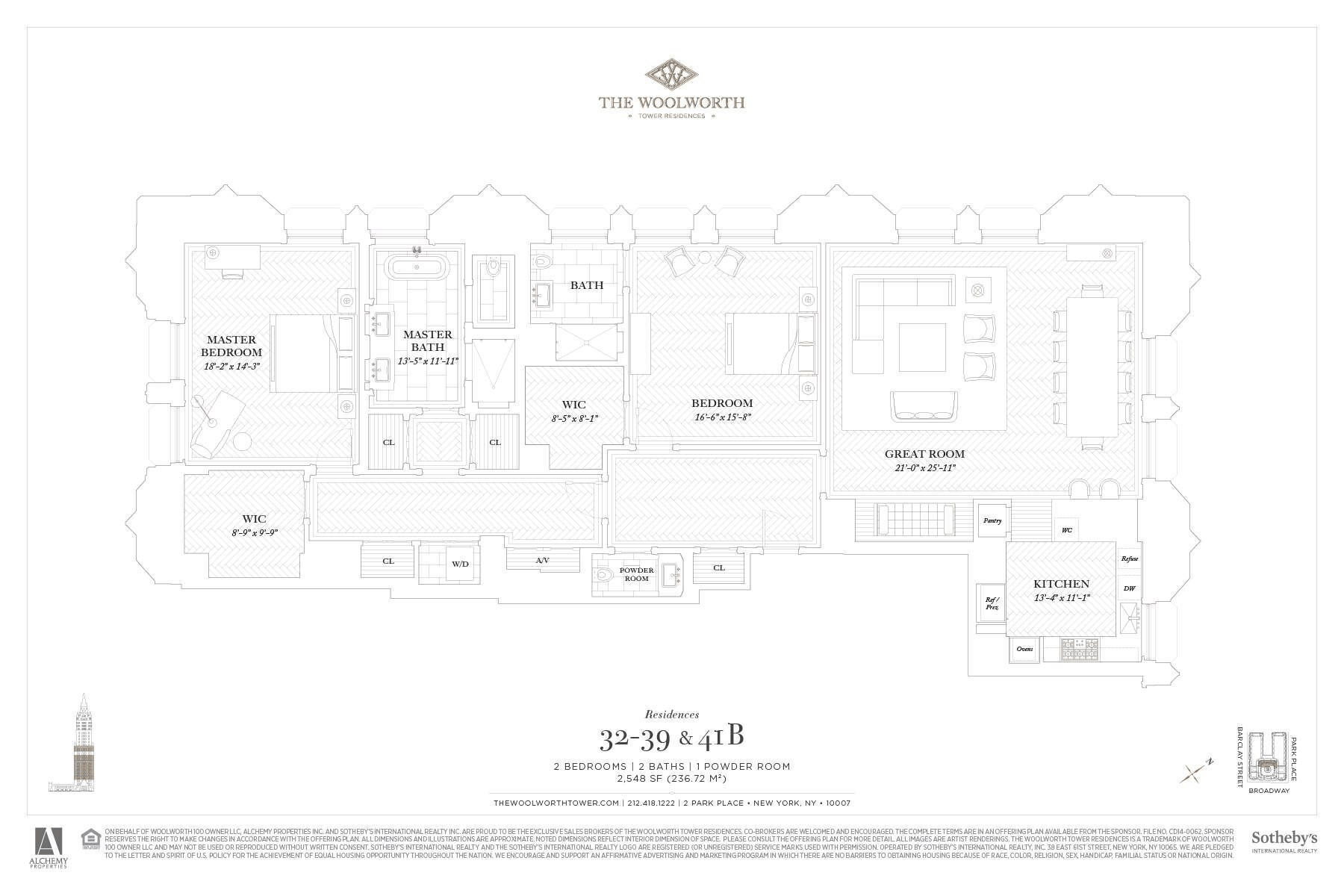 With never more than two homes per floor, life at The Woolworth Tower Residences offers a club-like intimacy with white-glove service and amenities that include: a Fitness Studio set 300’ +/- above street level with sunny skyline and east river views; Woolworth Pool, Hot Tub, and Sauna; the Gilbert Lounge; Wine Cellar and Tasting Room; Bike Room; On-Site parking; and discreet resident-only Lobby featuring meticulously restored historic coffered ceilings.
