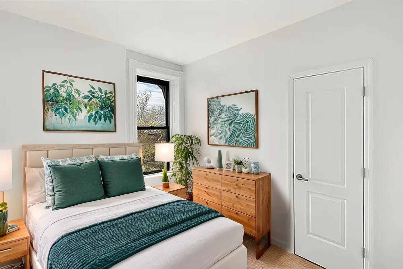 Off the main living area, a central hallway leads to three well-proportioned bedrooms, each equipped with its own dedicated closet space. The primary bedroom enjoys a corner position with windows overlooking both 1st Street and 6th Avenue, offering a light-filled and tranquil retreat. Two renovated full bathrooms—both located off the common hallway—feature clean, modern finishes and are easily accessible from all bedrooms.