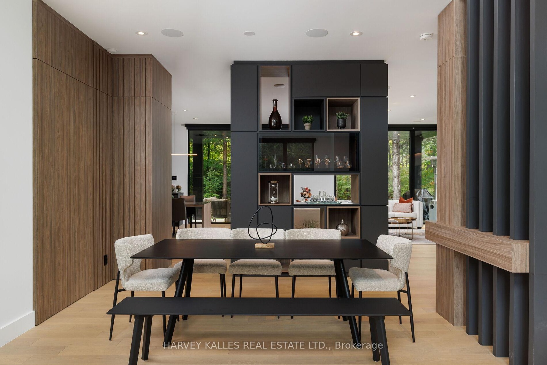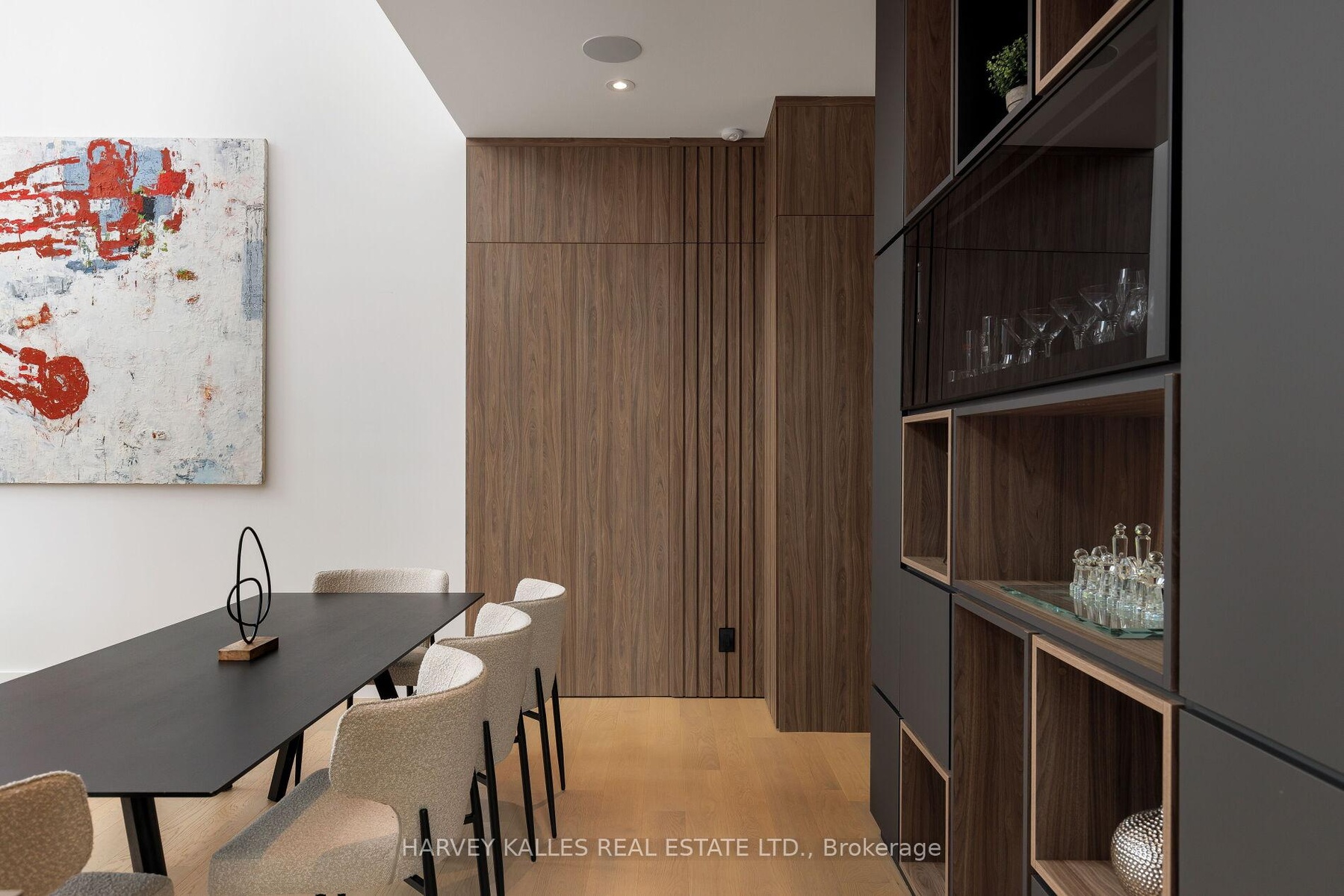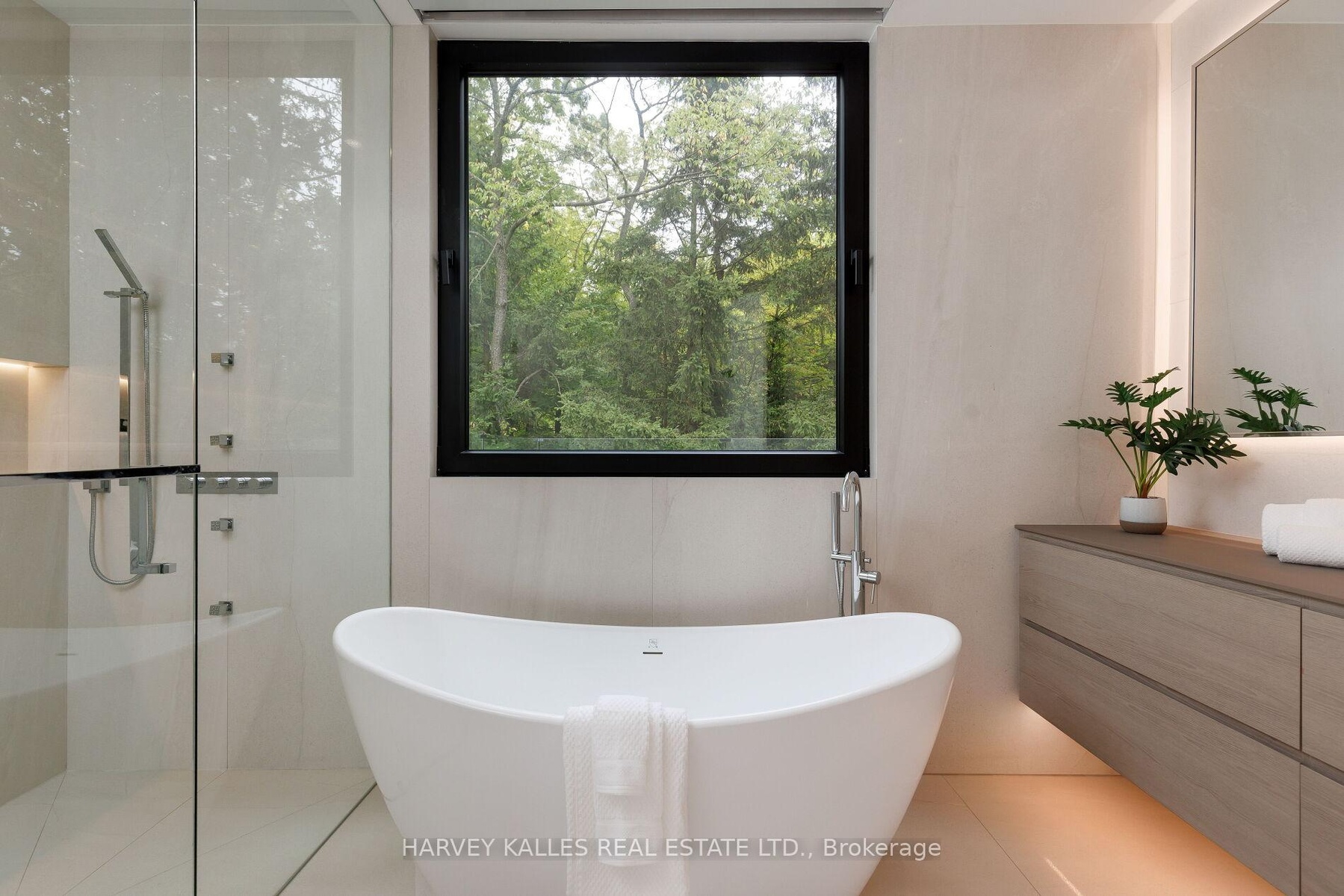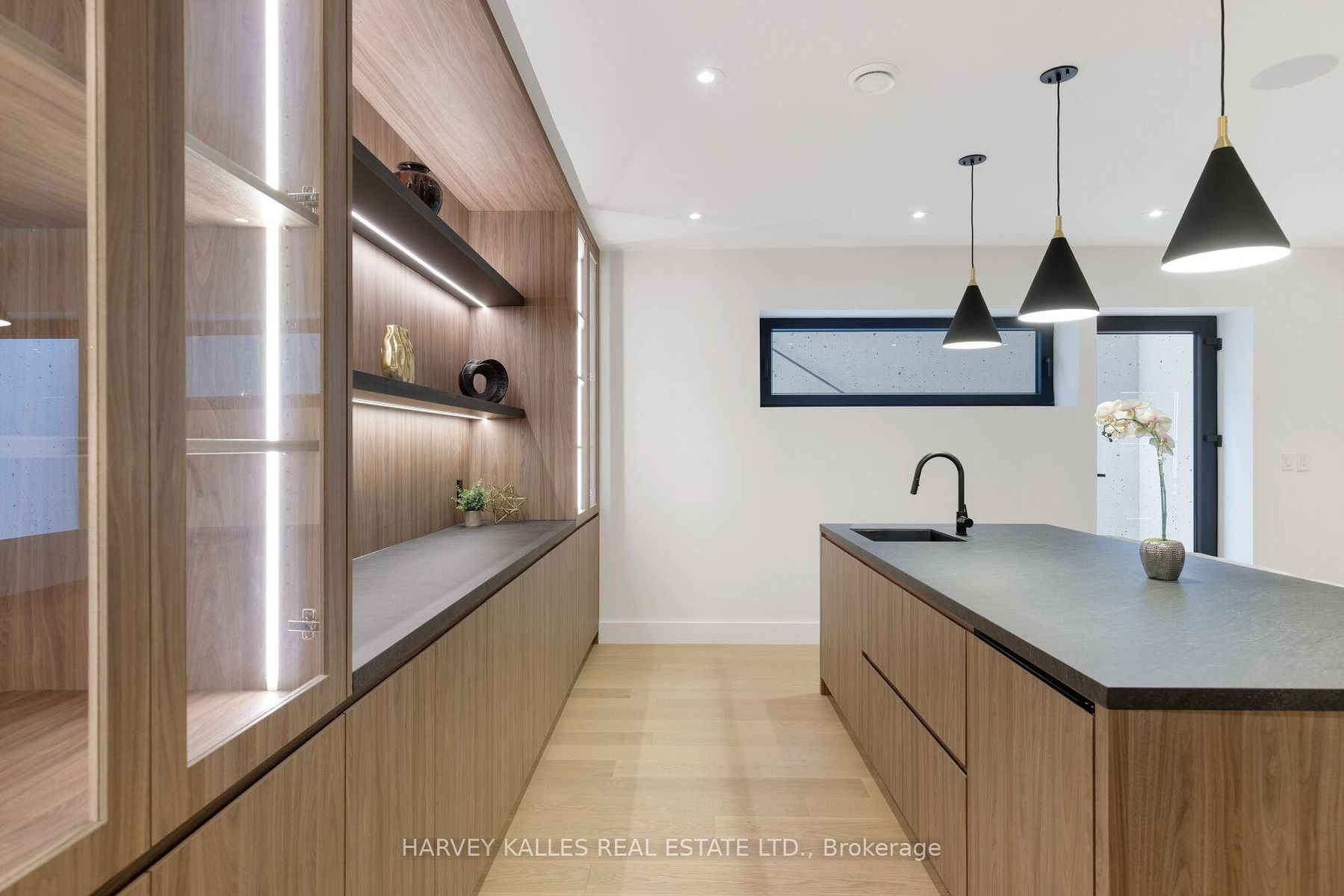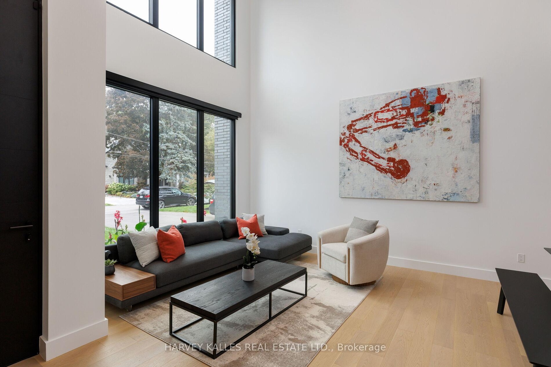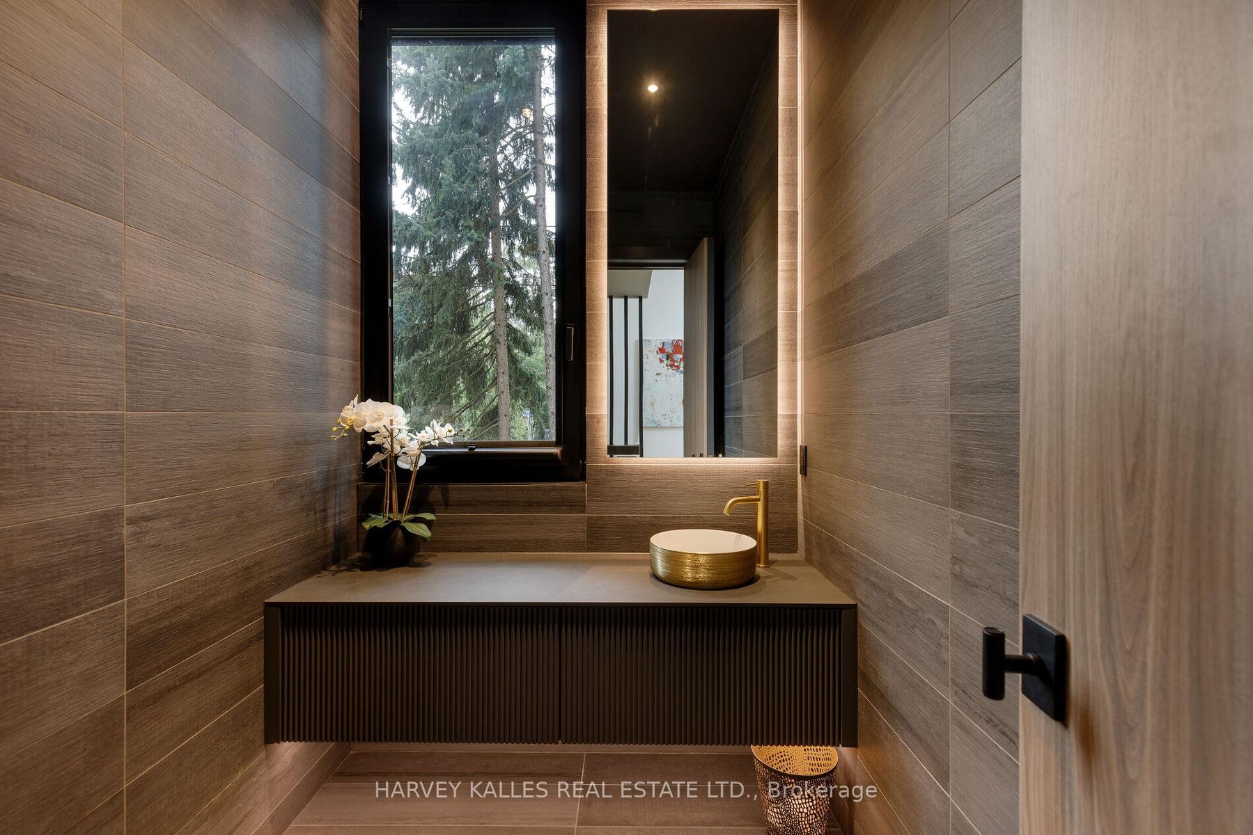 Exceptional custom residence with a masterful fusion of contemporary design with serene zen influences. 6600+ sq. ft. of finished living space, carefully crafted over four years. Dramatic 20-foot foyer with its illuminated glass pivot door, with expansive light-filled spaces highlighted by a floating staircase, architectural feature panel walls, and warm custom millwork. On the main level, a modern family room with a striking two-sided linear fireplace provides both comfort and sophistication, while the bespoke executive office offers custom millwork and gorgeous treetop views. The chefs kitchen is a true showpiece, featuring Miele appliances, a PITT gas counter range, and a separate catering kitchen. A stylish powder room, skylights, heated floors, and refined cabinetry complete the main level.The primary suite is your private retreat with a spa-inspired ensuite, custom walnut and glass walk-in closets, and a cozy lounge complete with 3-sided fireplace ambiance. Additional bedrooms feature en-suite baths and built-in cabinetry, with a flexible fourth bedroom suite that provides versatility. Your laundry room with full custom millwork completes the upper level. The lower level is an entertainment and wellness oasis ... 15-seat soundproof theatre, glass-walled temperature-controlled wine cantina, open-concept gym, and a sleek wet bar create the ultimate space for relaxation and hosting. A nanny or guest suite with a spa-like ensuite and direct walkout to the landscaped grounds ensures comfort and privacy for extended stays. The exterior showcases modern brick and aluminum cladding, beautifully landscaped grounds with irrigation, and sleek architectural lighting. Technology is seamlessly integrated with a Control4 smart home automation system, delivering comfort, convenience, and efficiency at your fingertips.This is more than a home it is a contemporary zen oasis, where design, technology, and tranquility converge to create a sanctuary for modern living.