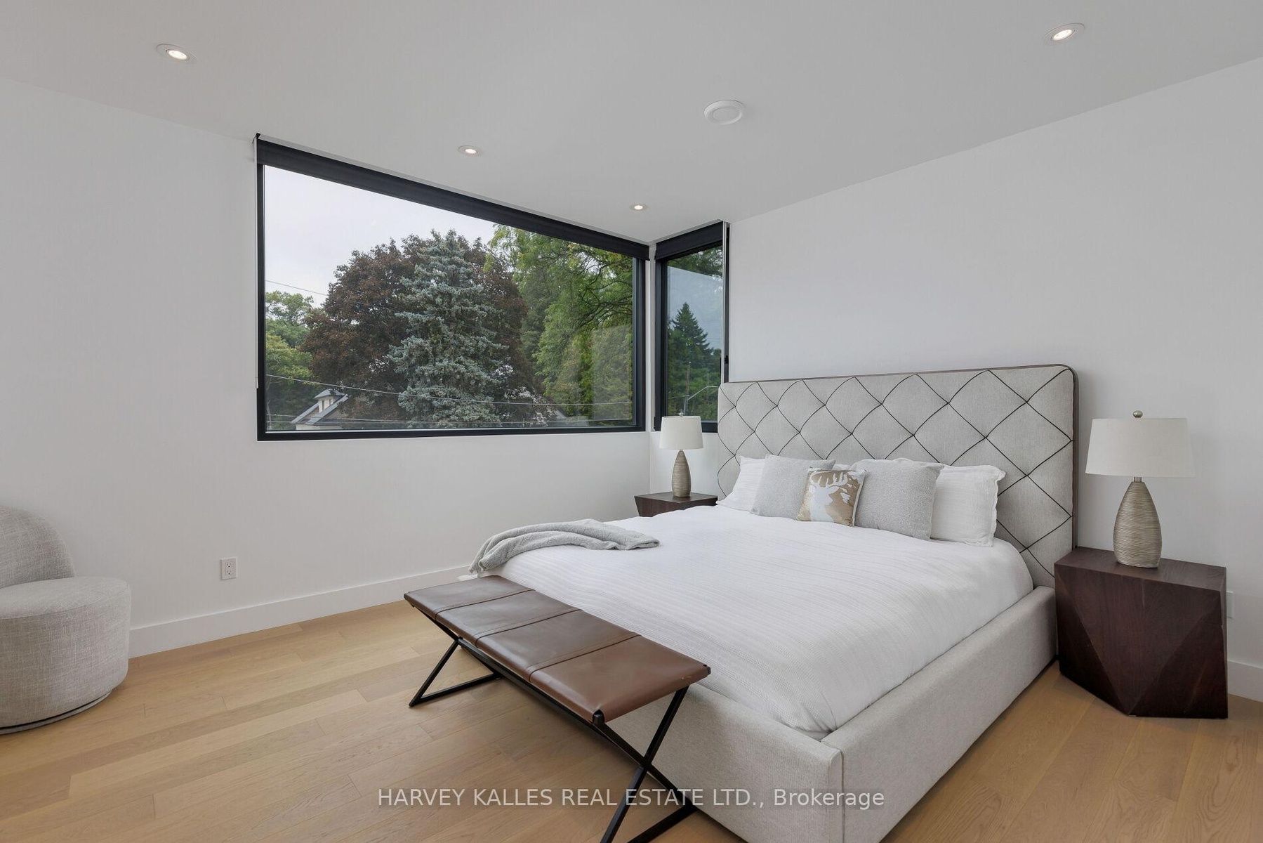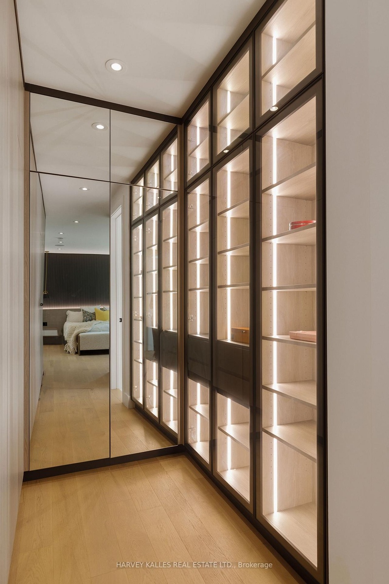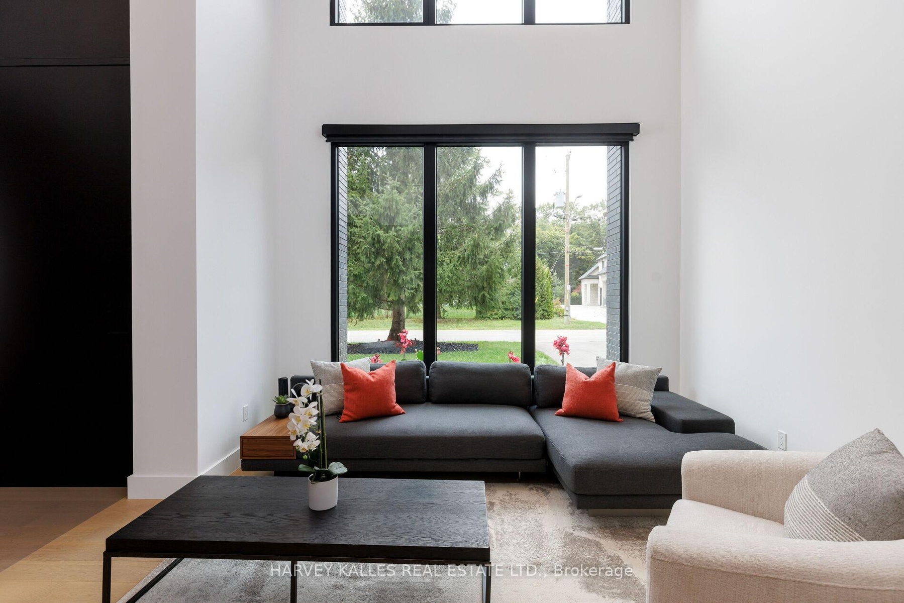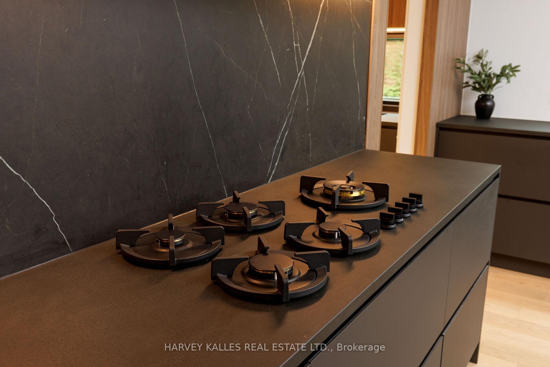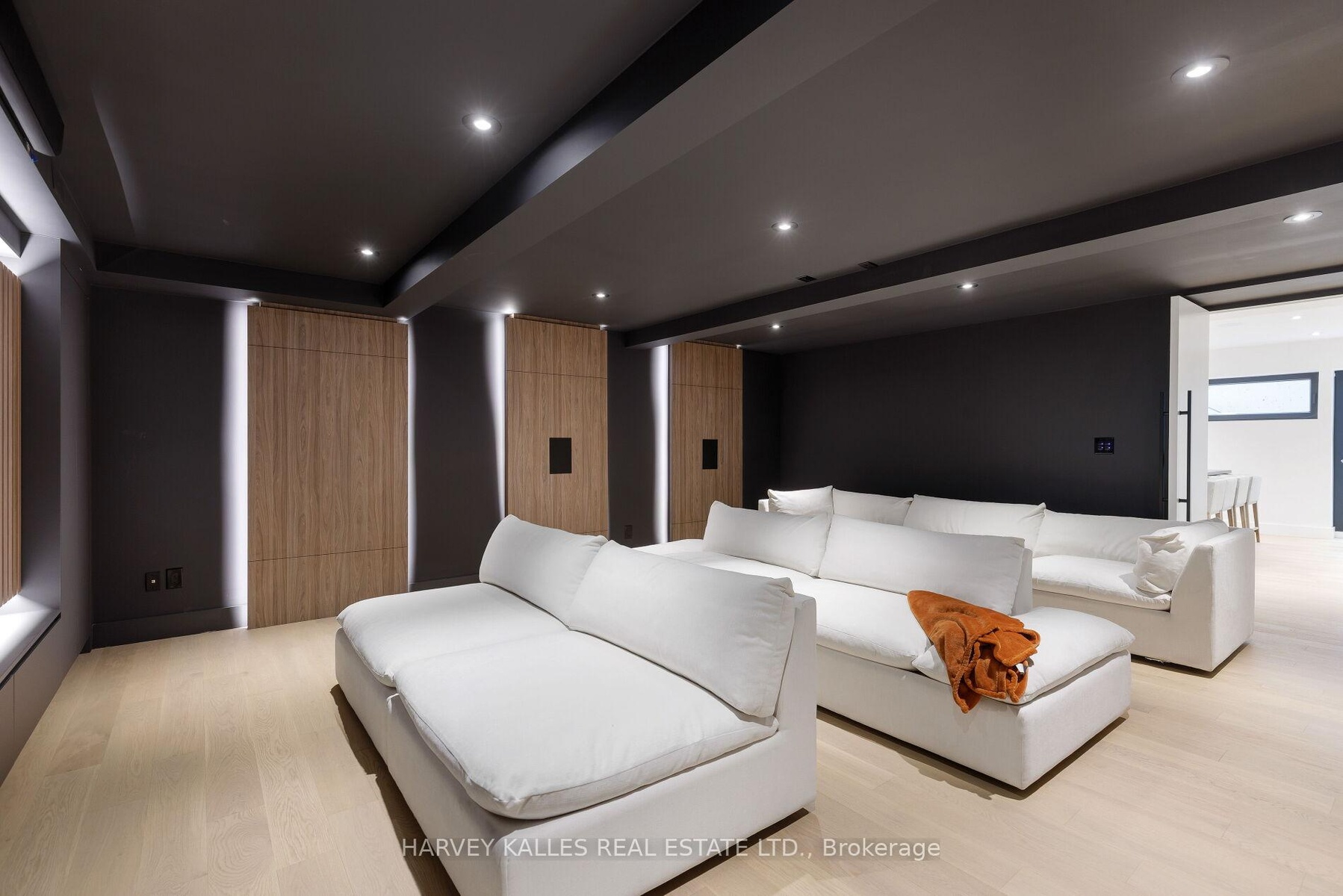 Exceptional custom residence with a masterful fusion of contemporary design with serene zen influences. 6600+ sq. ft. of finished living space, carefully crafted over four years. Dramatic 20-foot foyer with its illuminated glass pivot door, with expansive light-filled spaces highlighted by a floating staircase, architectural feature panel walls, and warm custom millwork. On the main level, a modern family room with a striking two-sided linear fireplace provides both comfort and sophistication, while the bespoke executive office offers custom millwork and gorgeous treetop views. The chefs kitchen is a true showpiece, featuring Miele appliances, a PITT gas counter range, and a separate catering kitchen. A stylish powder room, skylights, heated floors, and refined cabinetry complete the main level.The primary suite is your private retreat with a spa-inspired ensuite, custom walnut and glass walk-in closets, and a cozy lounge complete with 3-sided fireplace ambiance. Additional bedrooms feature en-suite baths and built-in cabinetry, with a flexible fourth bedroom suite that provides versatility. Your laundry room with full custom millwork completes the upper level. The lower level is an entertainment and wellness oasis ... 15-seat soundproof theatre, glass-walled temperature-controlled wine cantina, open-concept gym, and a sleek wet bar create the ultimate space for relaxation and hosting. A nanny or guest suite with a spa-like ensuite and direct walkout to the landscaped grounds ensures comfort and privacy for extended stays. The exterior showcases modern brick and aluminum cladding, beautifully landscaped grounds with irrigation, and sleek architectural lighting. Technology is seamlessly integrated with a Control4 smart home automation system, delivering comfort, convenience, and efficiency at your fingertips.This is more than a home it is a contemporary zen oasis, where design, technology, and tranquility converge to create a sanctuary for modern living.