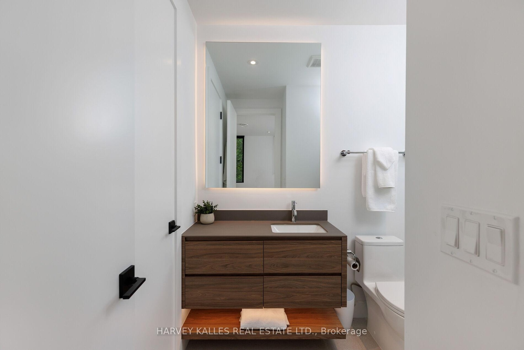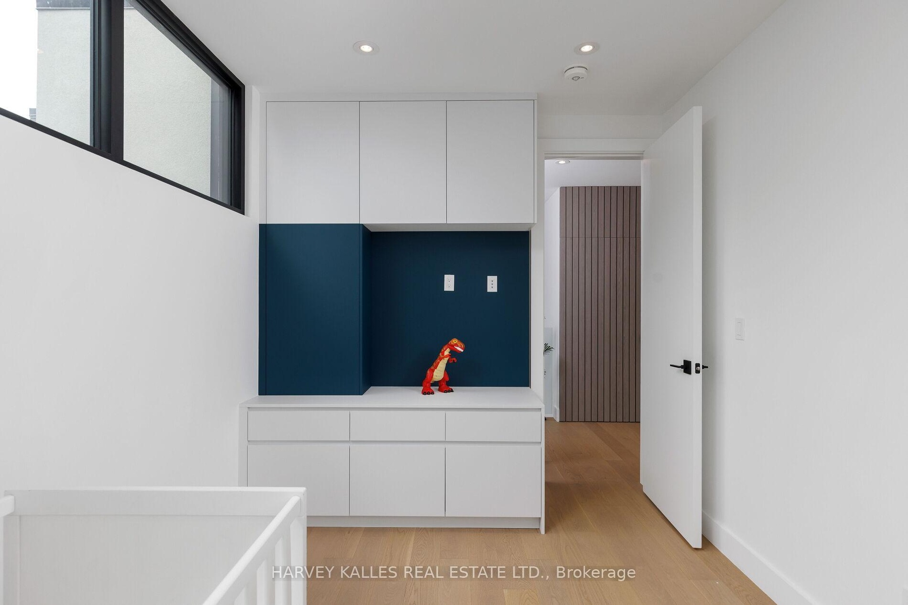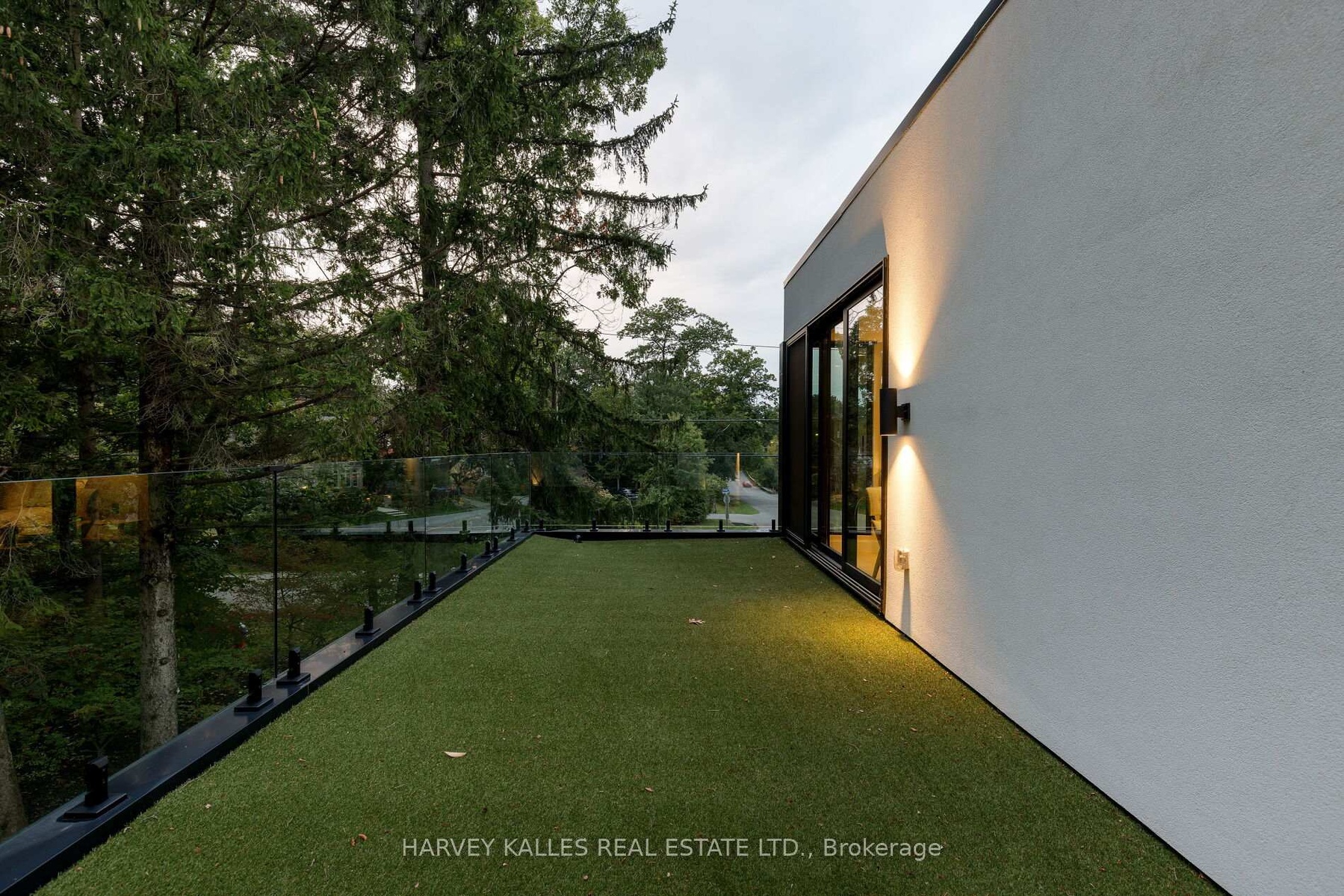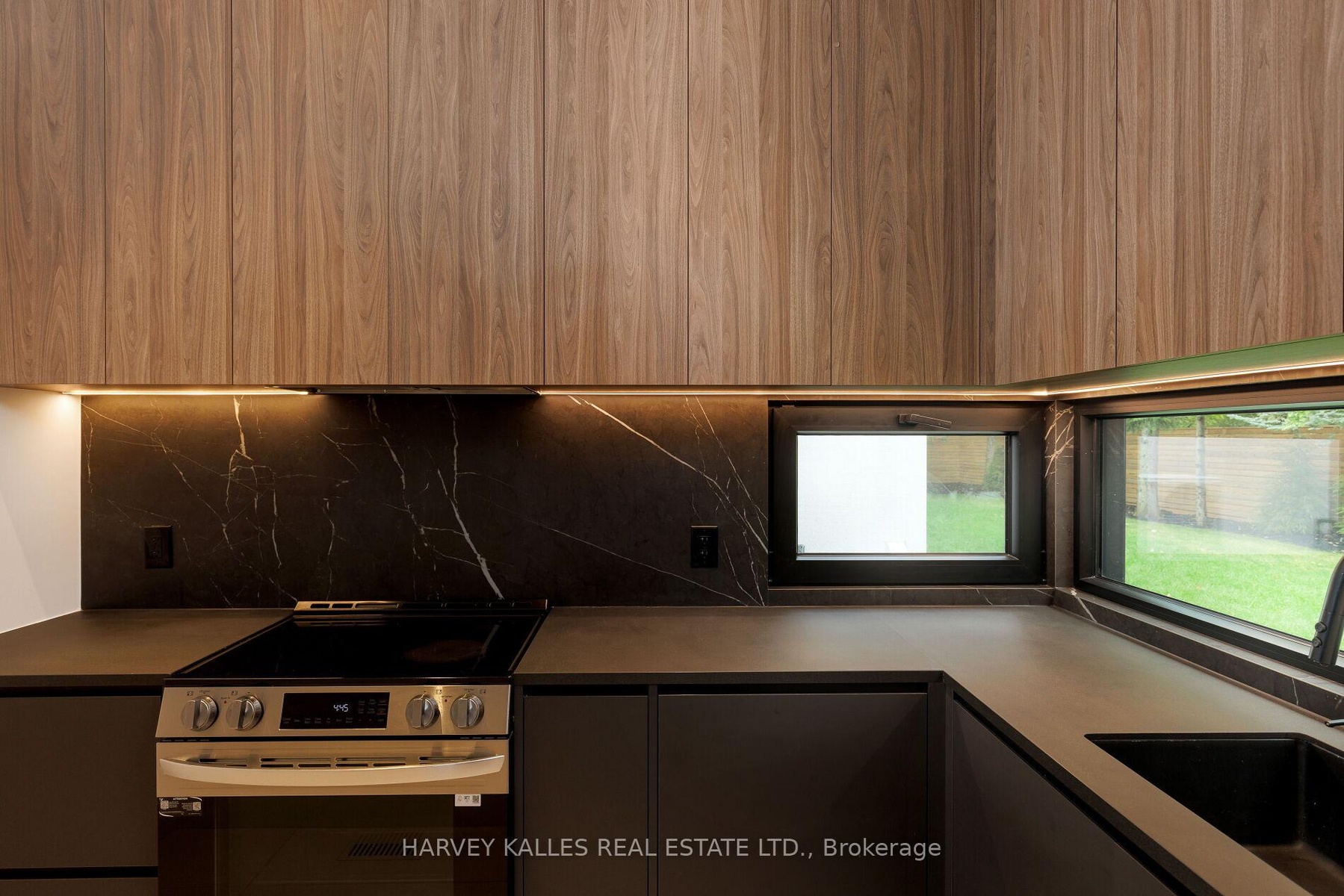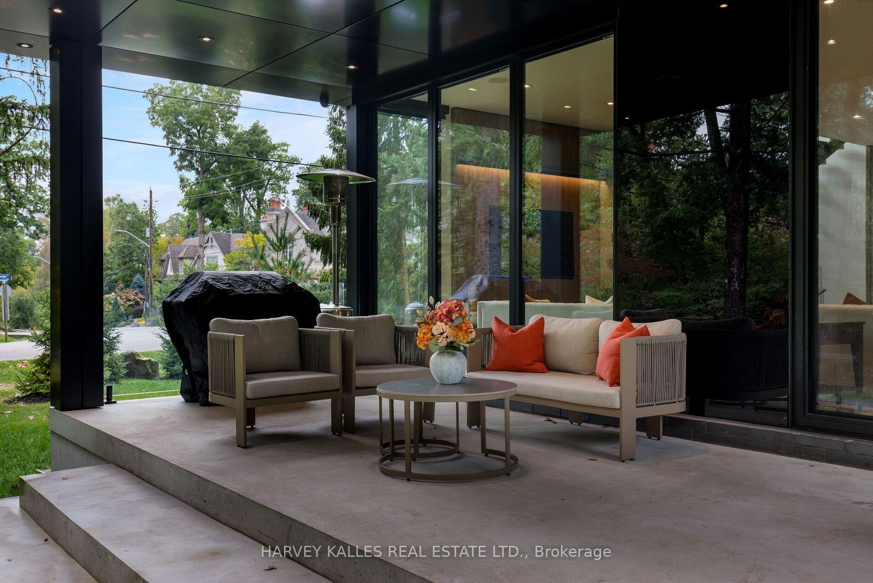 Exceptional custom residence with a masterful fusion of contemporary design with serene zen influences. 6600+ sq. ft. of finished living space, carefully crafted over four years. Dramatic 20-foot foyer with its illuminated glass pivot door, with expansive light-filled spaces highlighted by a floating staircase, architectural feature panel walls, and warm custom millwork. On the main level, a modern family room with a striking two-sided linear fireplace provides both comfort and sophistication, while the bespoke executive office offers custom millwork and gorgeous treetop views. The chefs kitchen is a true showpiece, featuring Miele appliances, a PITT gas counter range, and a separate catering kitchen. A stylish powder room, skylights, heated floors, and refined cabinetry complete the main level.The primary suite is your private retreat with a spa-inspired ensuite, custom walnut and glass walk-in closets, and a cozy lounge complete with 3-sided fireplace ambiance. Additional bedrooms feature en-suite baths and built-in cabinetry, with a flexible fourth bedroom suite that provides versatility. Your laundry room with full custom millwork completes the upper level. The lower level is an entertainment and wellness oasis ... 15-seat soundproof theatre, glass-walled temperature-controlled wine cantina, open-concept gym, and a sleek wet bar create the ultimate space for relaxation and hosting. A nanny or guest suite with a spa-like ensuite and direct walkout to the landscaped grounds ensures comfort and privacy for extended stays. The exterior showcases modern brick and aluminum cladding, beautifully landscaped grounds with irrigation, and sleek architectural lighting. Technology is seamlessly integrated with a Control4 smart home automation system, delivering comfort, convenience, and efficiency at your fingertips.This is more than a home it is a contemporary zen oasis, where design, technology, and tranquility converge to create a sanctuary for modern living.