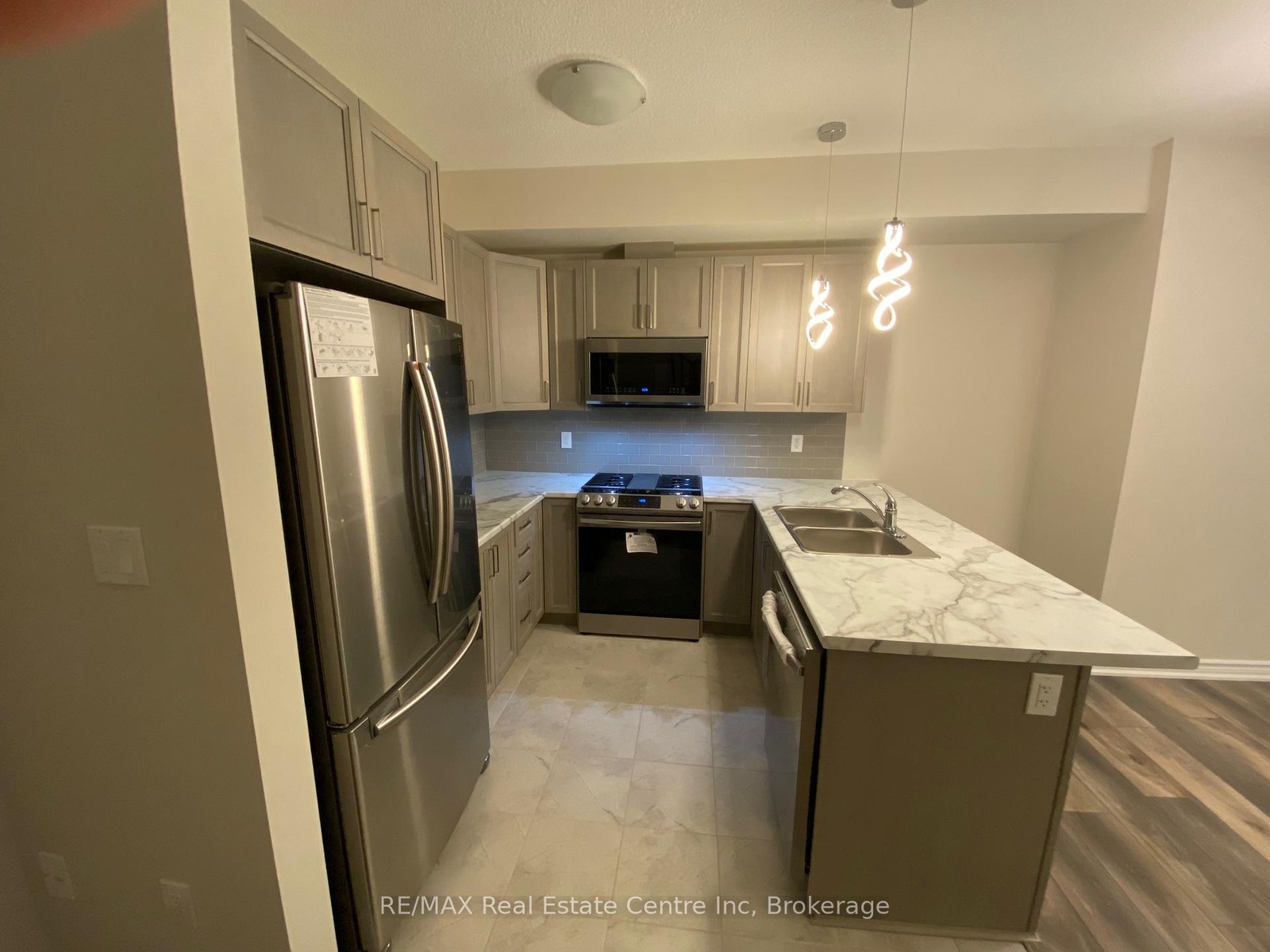Welcome to 445 Ontario St. S, Unit #108, a beautifully maintained 2-bedroom, 2-bathroom condo townhouse offering comfort, convenience, and modern style. This bright and spacious home features an open-concept layout filled with natural light, perfect for relaxed living and entertaining. The kitchen is equipped with upgraded stainless steel appliances, including a gas range, and modern lighting fixtures. Both bedrooms are generously sized and include walk-in closets. 2-car parking (1 garage, 1 driveway), plus direct garage access into the basement rec room. Centrally located, close to shopping centres, schools, parks, and public transit, making it ideal for commuters and families alike.