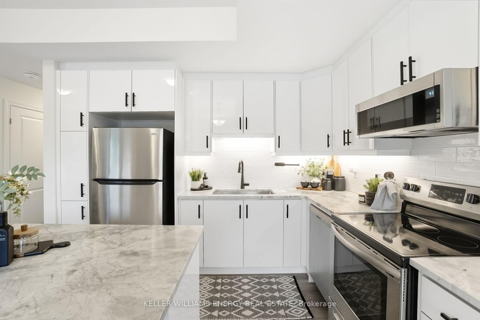DescriptionWelcome to this stylish, move-in ready, 2-bedroom, 3-bathroom townhome tucked on the edge of the community, offering privacy and no direct view of other townhomes. The layout is both practical and inviting, with a chefs kitchen offering extended cabinetry and plenty of storage, a bright living room with a fireplace, and a dining area that opens to a balcony. A powder room completes the main floor. Upstairs, you'll find two generous bedrooms, one with its own balcony and the other with a 4-piece ensuite, plus an additional full bathroom and convenient second-floor laundry.This home is filled with natural light and upgraded throughout, including smooth ceilings on the main floor, 12x24 porcelain tiles and comfort-height vanities in the bathrooms, stainless steel appliances, California shutters, matte black hardware and fixtures, double panel doors, stone countertops, valance lighting, and a modern backsplash.The location offers easy access to Highways 401, 407, 412 & 7, as well as public transit. Families will appreciate being in a strong school district, steps from a new elementary school and close to nearby trails and parks. Everyday shopping and dining, including The Shops at Pickering City Centre, local plazas and unique grocery stores, are just minutes away, making buying this home an unbeatable opportunity. All thats left is your personal touch, just bring your furniture and start enjoying your new home!Virtual Tour: https://show.tours/1034-reflection-plAmenities- Carpet Free