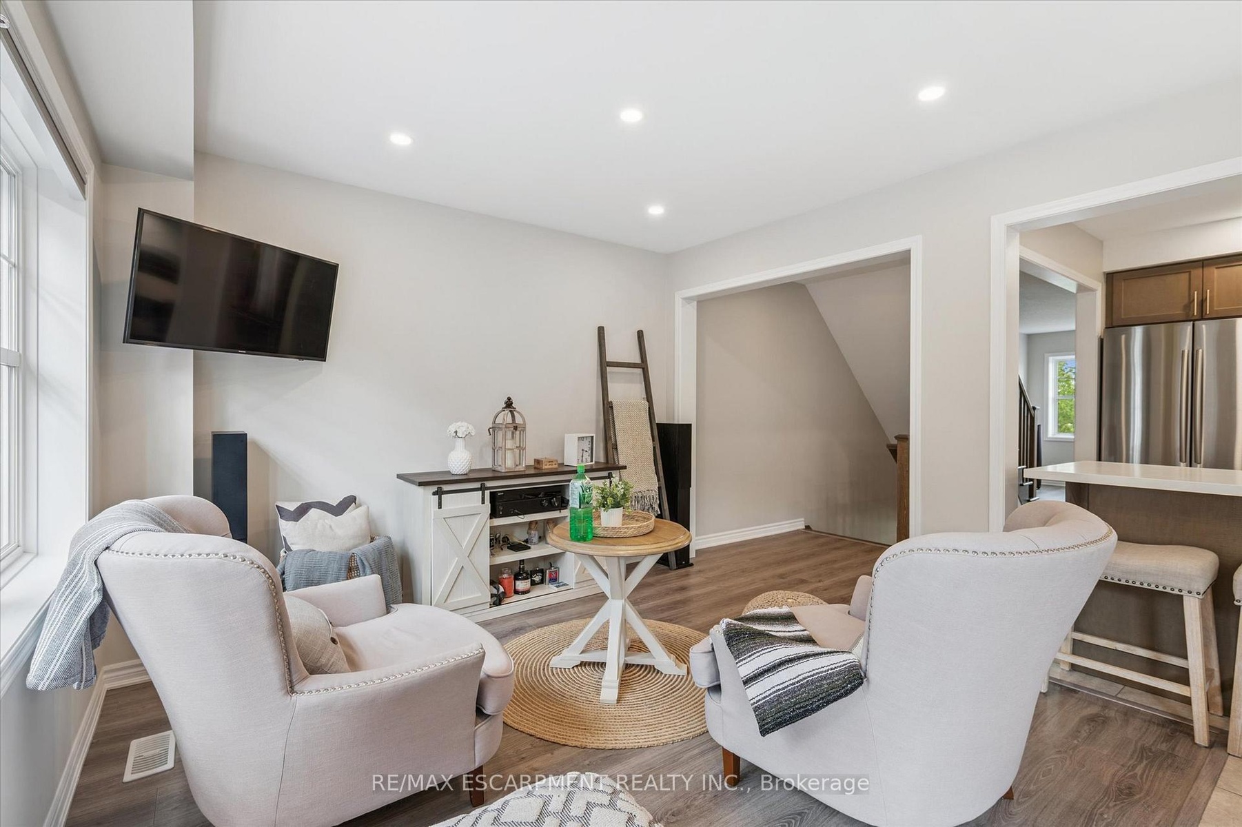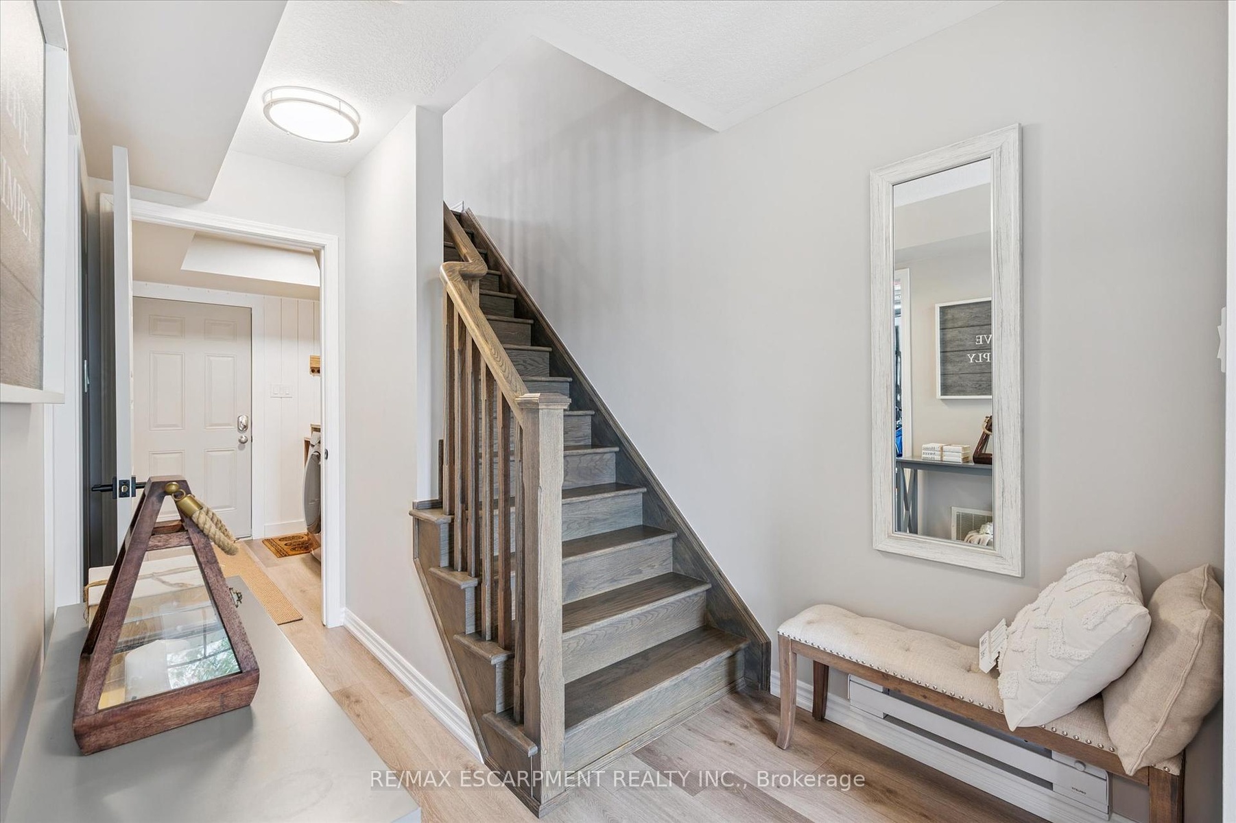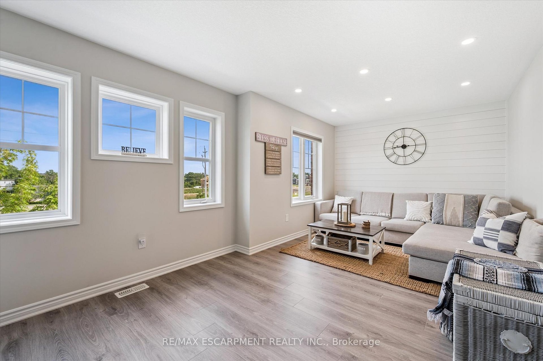 Motivated Seller ! ....Welcome to this spectacular 3 level, just like a semi Detached end-Unit Townhome in the Charming quiet town of Waterdown! Over the three levels there is 1900 sq.ft. of living space.Professional Painted in neutral colours with numerous upgrades including quartz counters, pot lights, upgraded Black lever hinges and handles and plumbing Fixtures.The ground floor encompasses vinyl flooring with an upgraded designer laundry room with new front load washer / dryer + Wood counter + Sink and shelving. Super useful Large storage area with a separate office with French doors that can be used as a 4th. Bedroom. Internal access to stunning oversized double garage fully painted with an epoxy floor.The main level incorporates the upgraded kitchen with S/S appliances, quartz counter with floating island. The powder room has a ship lap feature wall with new vanity and vinyl floor. The bright natural sunlight exudes an abundance of light in the Living and Dining area which encompasses a feature wall and pot lights. This leads via a sliding patio door to the large 20 x 12 ft. deck with a Gazebo and privacy blinds.The third level has a Primary Bedroom with ensuite 3 pice Bathroom (Quartz Counter and glass shower) and walk-in closet. Good sized 2nd. and 3rd. Bedrooms. The main bathroom has 4 pieces including a tub and Quartz Counter top.Commuters have many options -Minutes to GO station, 407 and QEW highways and a short drive to Burlington waterfront. This property should showcase in any designer magazine and the owner has meticulously upgraded and maintained the property since new.This property is turn key & shows 10+++!