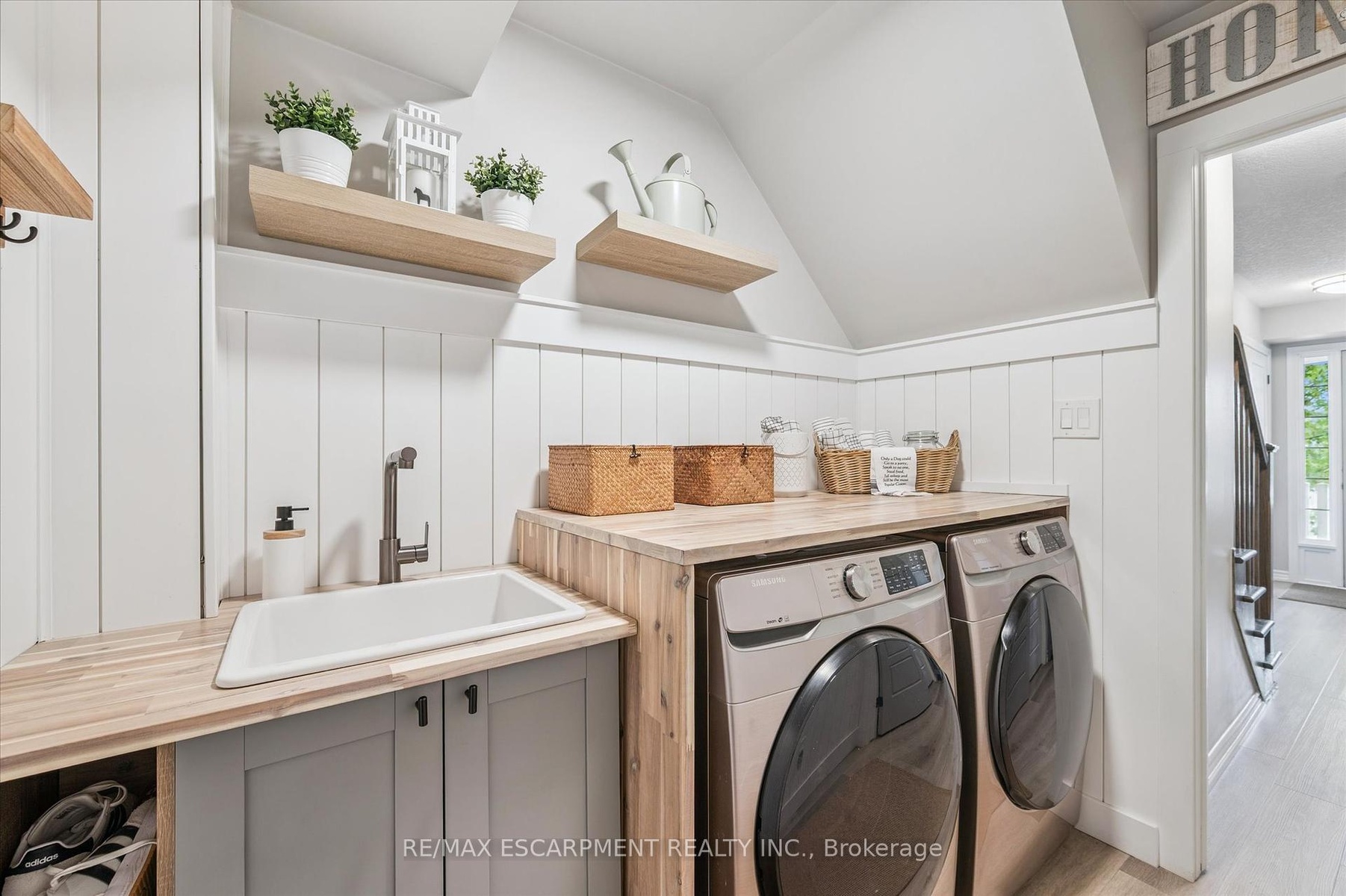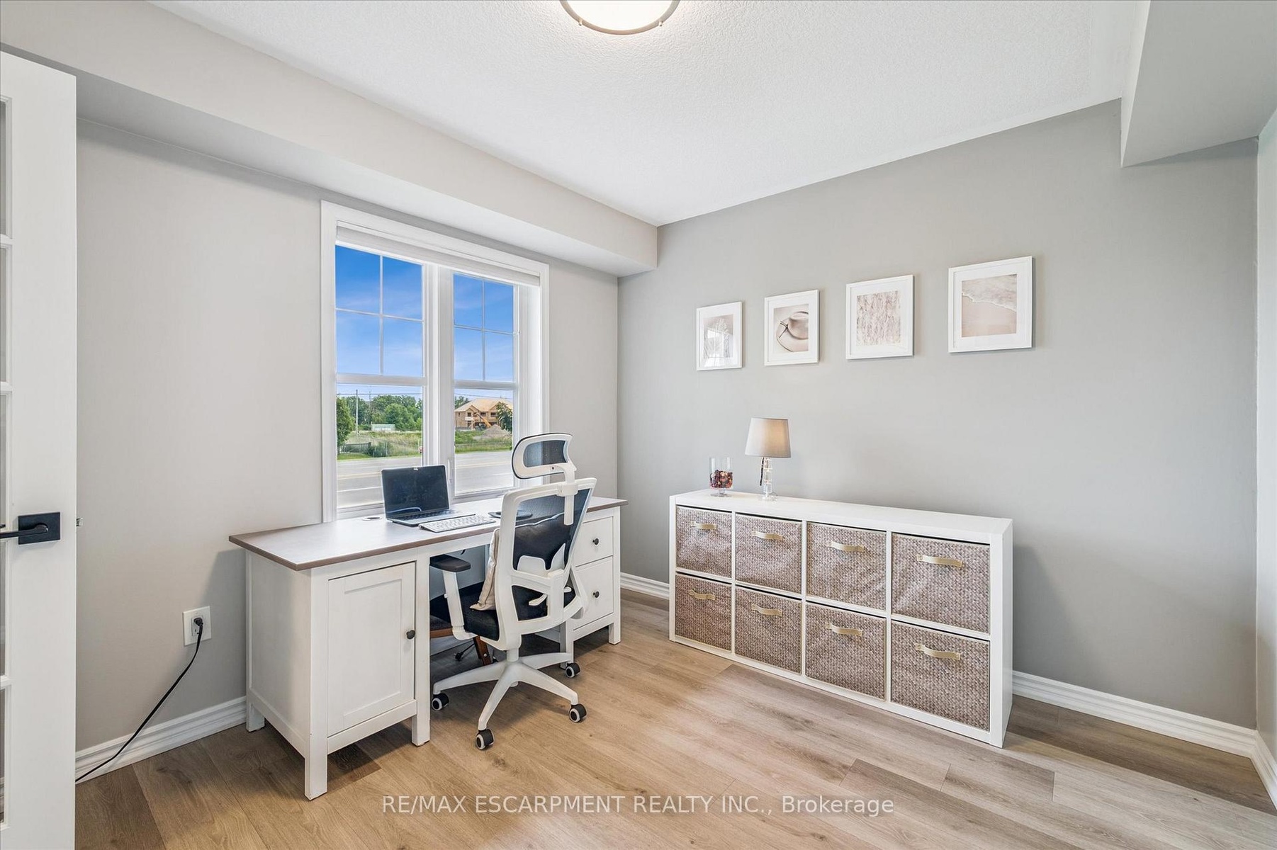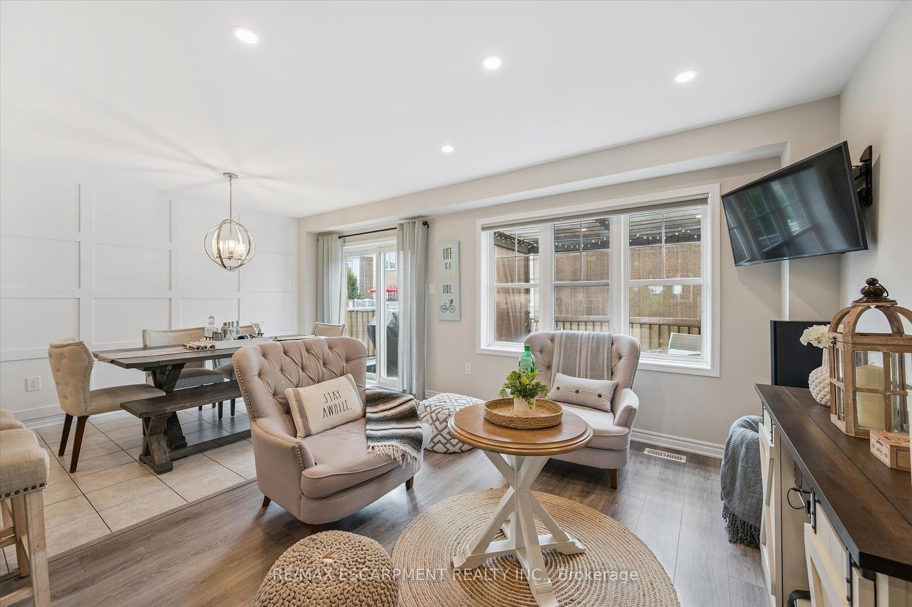 Motivated Seller ! ....Welcome to this spectacular 3 level, just like a semi Detached end-Unit Townhome in the Charming quiet town of Waterdown! Over the three levels there is 1900 sq.ft. of living space.Professional Painted in neutral colours with numerous upgrades including quartz counters, pot lights, upgraded Black lever hinges and handles and plumbing Fixtures.The ground floor encompasses vinyl flooring with an upgraded designer laundry room with new front load washer / dryer + Wood counter + Sink and shelving. Super useful Large storage area with a separate office with French doors that can be used as a 4th. Bedroom. Internal access to stunning oversized double garage fully painted with an epoxy floor.The main level incorporates the upgraded kitchen with S/S appliances, quartz counter with floating island. The powder room has a ship lap feature wall with new vanity and vinyl floor. The bright natural sunlight exudes an abundance of light in the Living and Dining area which encompasses a feature wall and pot lights. This leads via a sliding patio door to the large 20 x 12 ft. deck with a Gazebo and privacy blinds.The third level has a Primary Bedroom with ensuite 3 pice Bathroom (Quartz Counter and glass shower) and walk-in closet. Good sized 2nd. and 3rd. Bedrooms. The main bathroom has 4 pieces including a tub and Quartz Counter top.Commuters have many options -Minutes to GO station, 407 and QEW highways and a short drive to Burlington waterfront. This property should showcase in any designer magazine and the owner has meticulously upgraded and maintained the property since new.This property is turn key & shows 10+++!