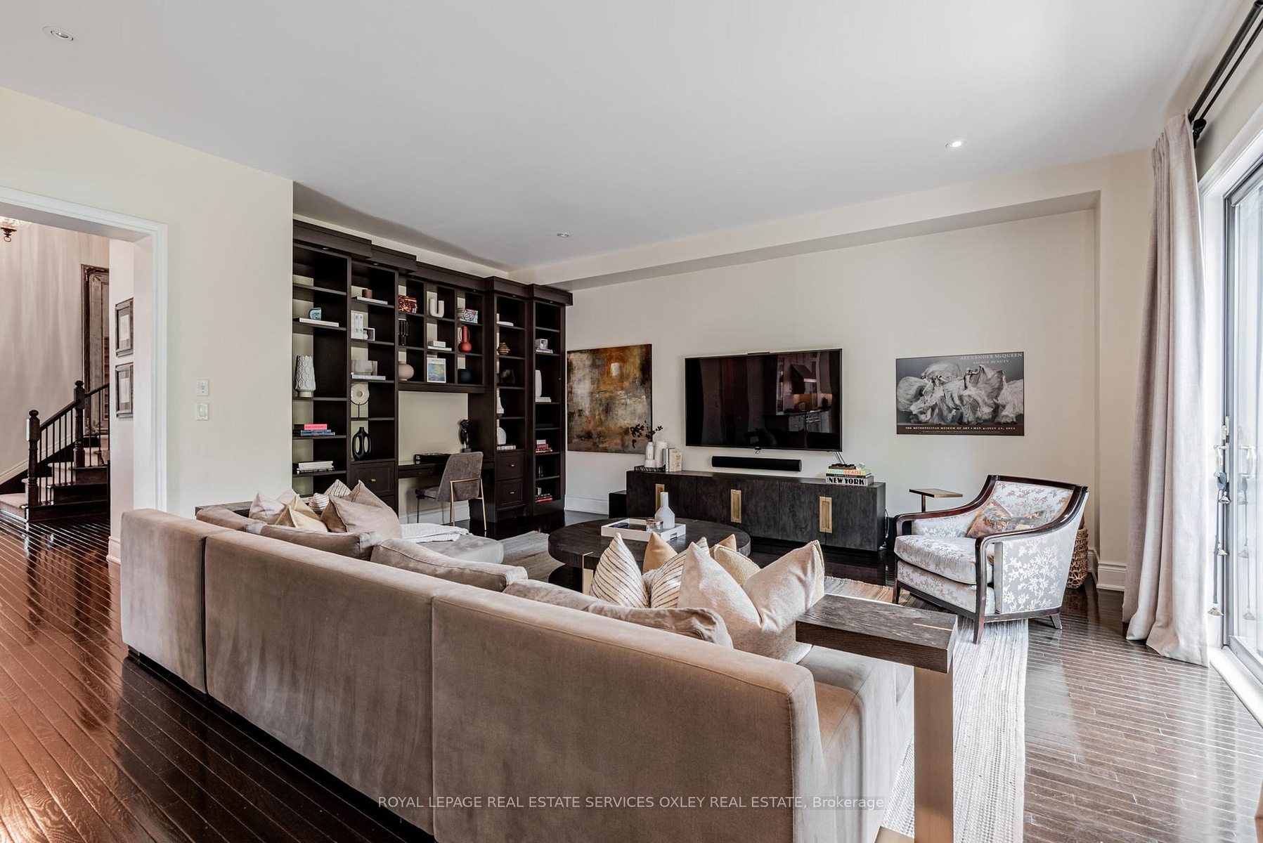 Tucked into a quiet enclave where neighbours know each other by name and children ride their bikes freely, Governor's Bridge feels more like a charming village than a part of Toronto. It's a rare slice of calm in the city - 11 True Davidson Drive is its crown jewel. This extraordinary custom-built residence offers over 7,300 sq ft of refined living space on a lot that widens to 58 ft at the rear. Originally built in 2008, the lower level was redesigned by Michelangelo Designs in 2009, with further renovations completed in 2022 by the team behind the TV show Styled, including a striking new kitchen and refreshed powder room. The main level features a grand marble foyer, formal living and dining rooms with oak hardwood, a dedicated home office, and a Chef's kitchen with quartz countertops, marble floors, and premium appliances. Picture slow mornings at the breakfast table, cozy evenings in the family room by the double-sided fireplace, and summer entertaining on the walk-out deck overlooking a lush backyard. Upstairs, the expansive primary suite is a true retreat with its own fireplace, two walk-in closets, and a spa-like ensuite. Three additional bedrooms offer ample storage and ensuite or semi-ensuite baths ideal for a growing family. The third-floor loft is a flexible space perfect for a teen hangout, creative studio, or private guest suite with a full bath and a Juliette balcony. Downstairs, the lower level is full of personality and purpose, complete with a rec room, wet bar, guest suite, large laundry room, and a custom-built playroom - this is a kid's dream. With a double garage, mature landscaping, and proximity to top schools, trails, and the city core, this is a home that adapts beautifully to every chapter of family life