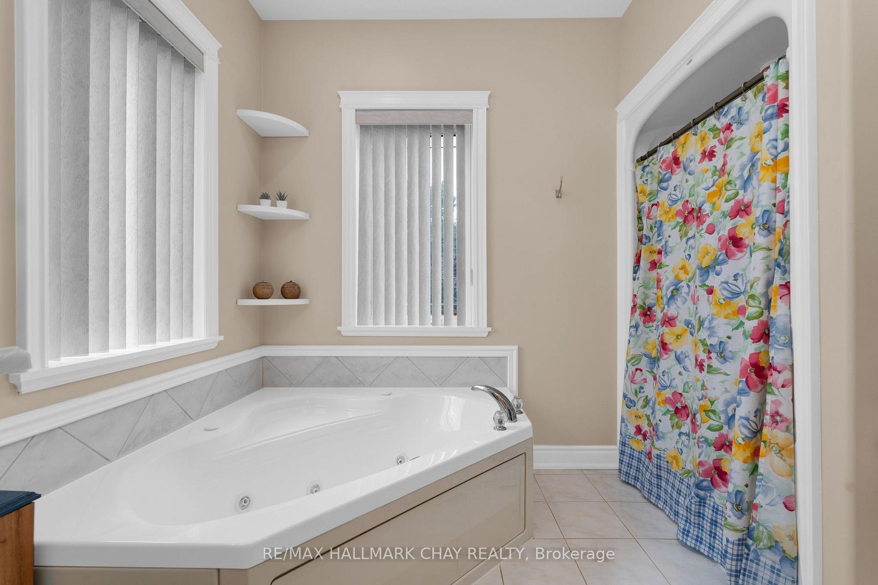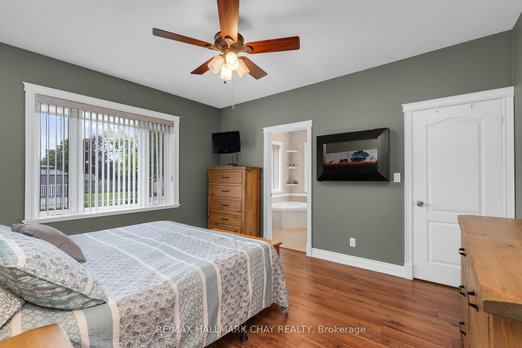 Welcome to Wyevale! Located minutes from Georgian Bay, this fantastic detached home is immersed in nature and is surrounded by year-round trails, a 10-minute drive to Elmvale and is mere 30 minute drive to the City of Barrie. This custom "builder's special" bungalow offers stunning curb appeal with mature trees and established gardens. With 1,644 sq.ft., there is plenty of living space for a busy household, with 3 bedrooms and 2 baths beginning on the main floor, including a private primary suite with walk in closet and ensuite bath with soaker tub. This home features quality finishes at every turn, such as upgraded window package, gorgeous stone faced fireplace, 9' ceilings, rounded corners. Convenience of carpet-free maintenance, and main floor laundry. Natural light flows through the open layout, highlighting the tasteful neutral decor and functional design. The eat-in custom chef's kitchen includes large centre island, breakfast seating, gleaming stainless appliances with a gas range, Corian counters, an abundance of full height cabinets and plenty of storage, tile backsplash and undermount sinks. Professionally finished lower level with large windows is bright with natural light extending your interior finished living space - ready for your next family get together or entertaining - large recreation/games room, wet bar for easy food/bev prep, 3 additional bedrooms AND a full bath. This home is situated on a mature lot with fully fenced rear yard that offers a huge deck for enjoying a summer day and al fresco meal with friends and family, a sun shading pergola, a custom shed and established gardens for growing your own veggies. Attached garage with exterior man-door, window accents. This home has been exceptionally maintained and is truly a move in ready gem! Other benefits of this home include steel roof, ICF foundation, an in-home generator. Step away from the bustle of the city and step into the relaxed lifestyle that Wyevale offers! Take a look today!