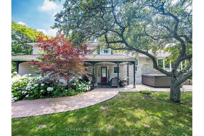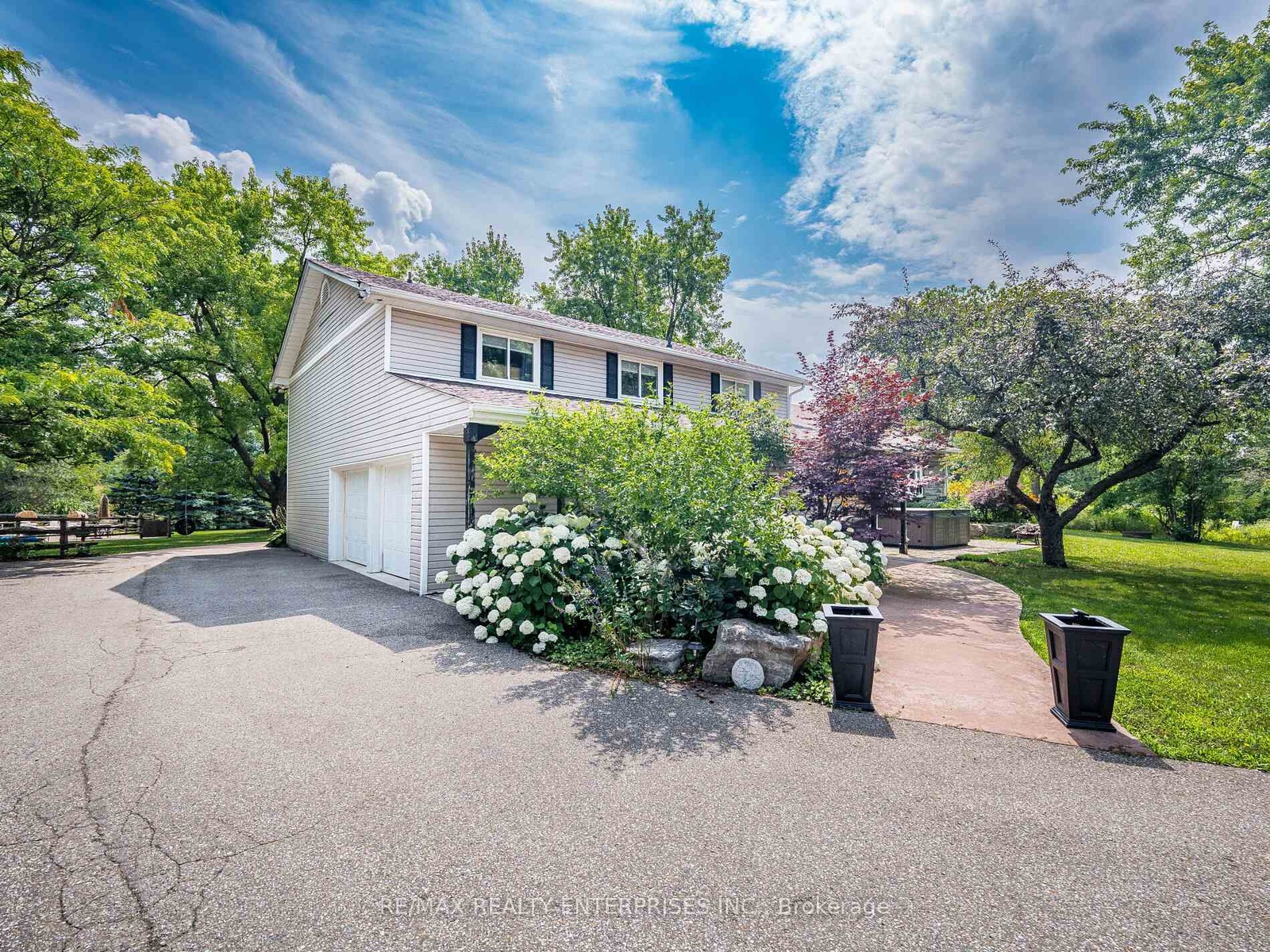 Discover your private oasis on approximately 1.5 acres of lush greenery. "Country in the City". This spacious residence features 6 bedrooms, 4bathrooms, open concept living spaces with soaring cathedral ceilings and exposed wood beams. A versatile layout, move in ready or prime forbuilding your dream home on this rare over sized lot. Sparkling in-ground heated pool, unique barn equipped with a loft, bathroom, bar & walk outto pool. Also featuring charming gazebo, in-ground trampoline and cozy fire pit. This home is nestled in the coveted Credit Valley enclave, closeto credit river, conservation trails, parks and top tier golf courses. This is a one of a kind offering, an exceptional property that combines serenerural living with proximity to city amenities. Whether you're drawn to the current character filled home or envision building a new masterpiece,this estate is a generational opportunity.