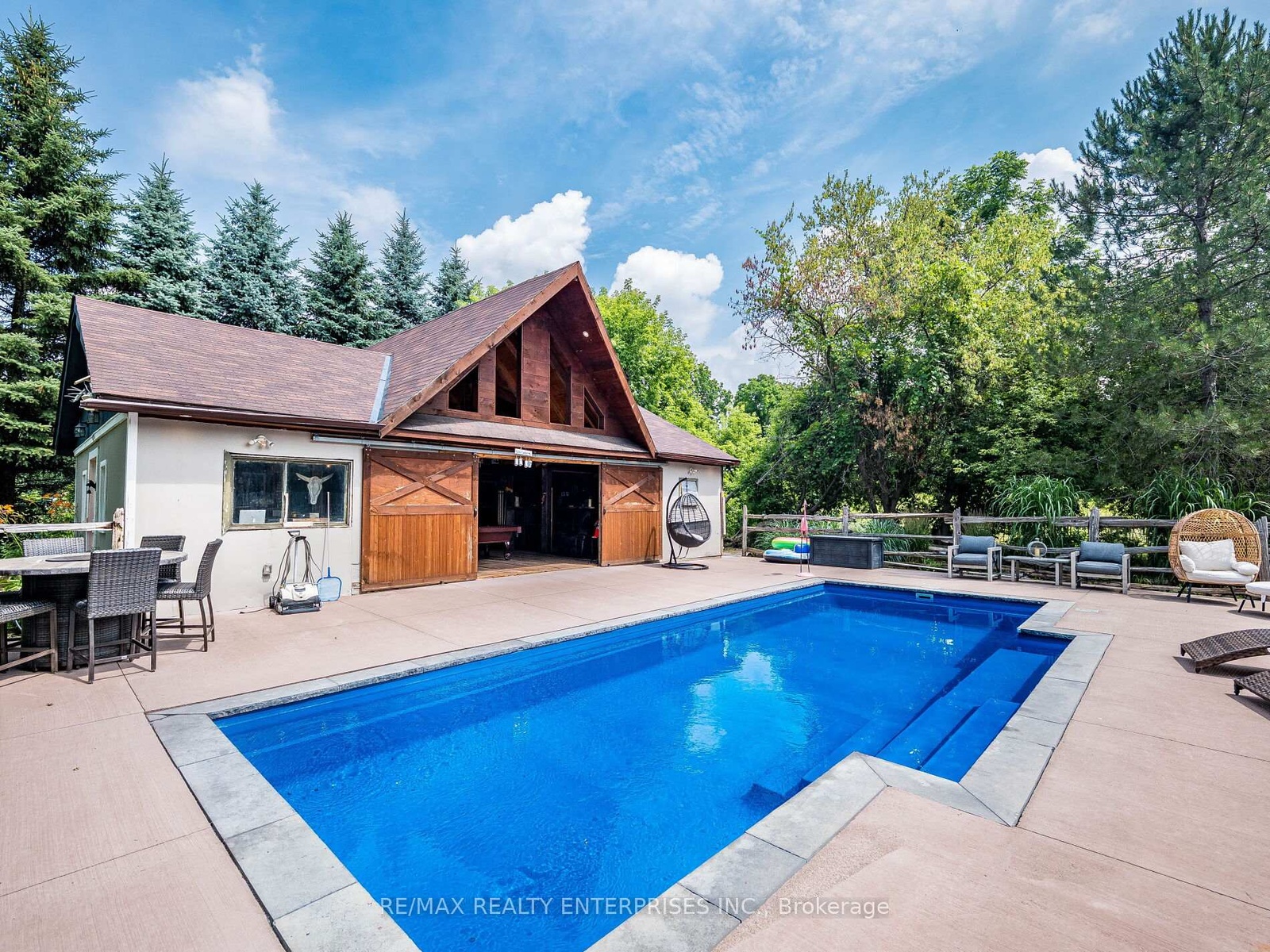 DescriptionDiscover your private oasis on approximately 1.5 acres of lush greenery. "Country in the City". This spacious residence features 6 bedrooms, 4bathrooms, open concept living spaces with soaring cathedral ceilings and exposed wood beams. A versatile layout, move in ready or prime forbuilding your dream home on this rare over sized lot. Sparkling in-ground heated pool, unique barn equipped with a loft, bathroom, bar & walk outto pool. Also featuring charming gazebo, in-ground trampoline and cozy fire pit. This home is nestled in the coveted Credit Valley enclave, closeto credit river, conservation trails, parks and top tier golf courses. This is a one of a kind offering, an exceptional property that combines serenerural living with proximity to city amenities. Whether you're drawn to the current character filled home or envision building a new masterpiece,this estate is a generational opportunity.Amenities- Auto Garage Door Remote
