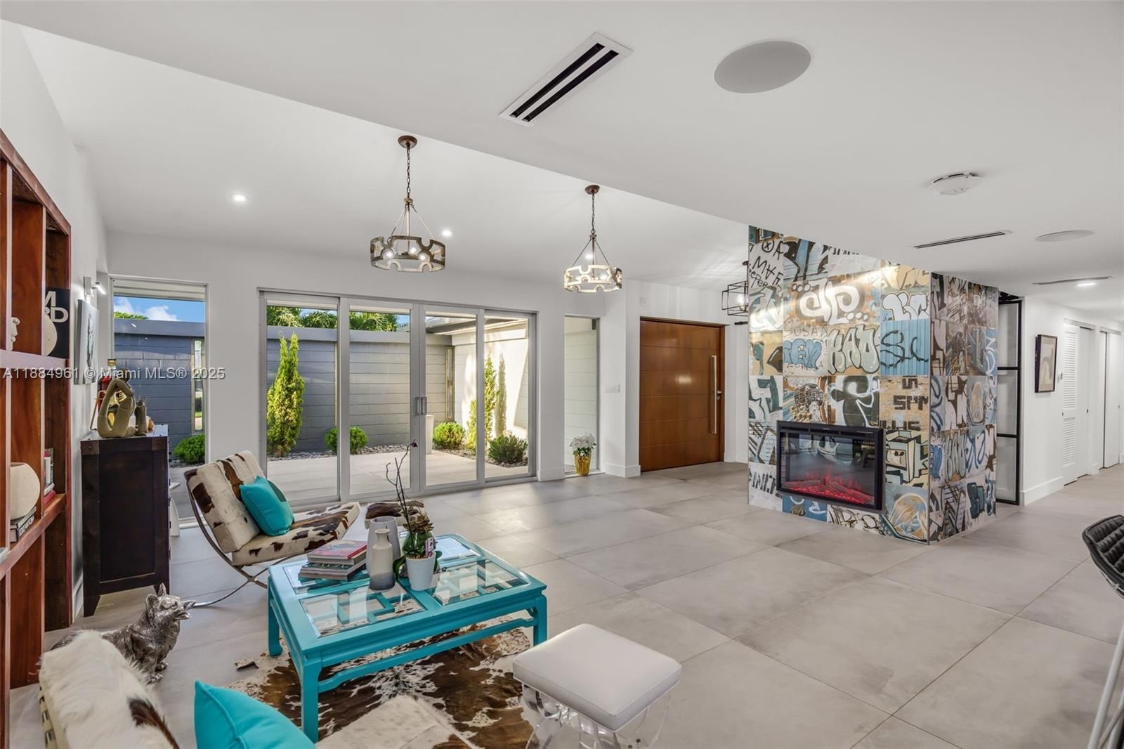 - Wall of glass with access to the front courtyard for seamless indoor-outdoor entertaining