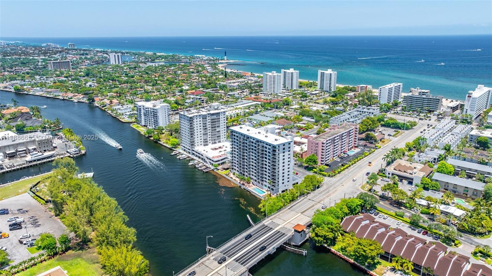 TURNKEY & amazing location define this beautiful condo; breathtaking ocean, intracoastal and city views. Open-concept layout with plenty of natural light. The kitchen features modern finishes, SS appliances, quartz countertops, waterfall edge,sleek cabinets. Spacious master suite w/walk in closet, renovated en-suite bathroom. 2nd bed has a built-in Murphy bed, guest bath fully remodeled. New vinyl flooring throughout, new fixtures. IMPACT DOORS/WINDOWS throughout. Motorized shades with Smart Control. All ages, boutique building. Spacious private balcony with incredible sunset views! Passed 40YR Building Inspection/Certification.Newer AC/WH. Enjoy sunrises & sunsets. Close to Pompano Beach Pier, restaurants. Amenities include pool, fitness center, clubhouse, barbecue area. 2 parking spaces.