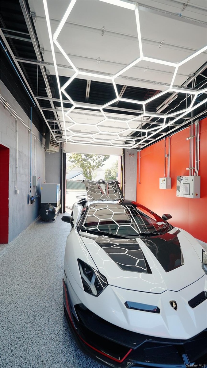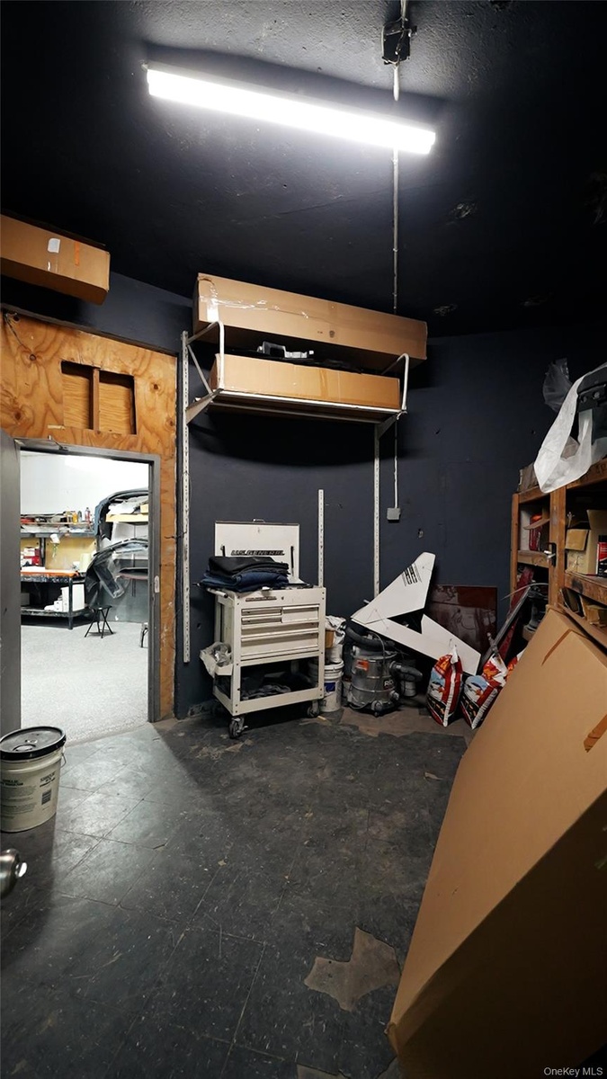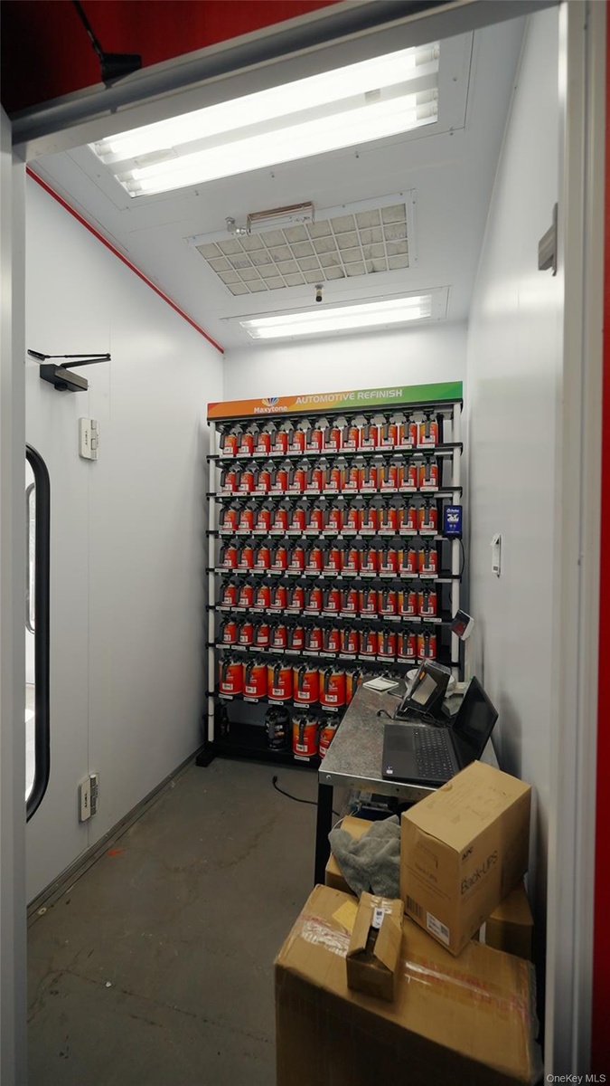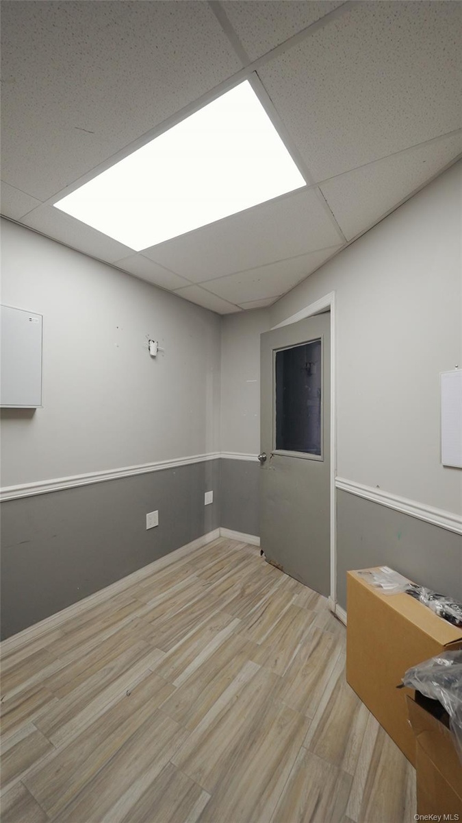 - Finished basement featuring a paneled ceiling and light wood-style floors