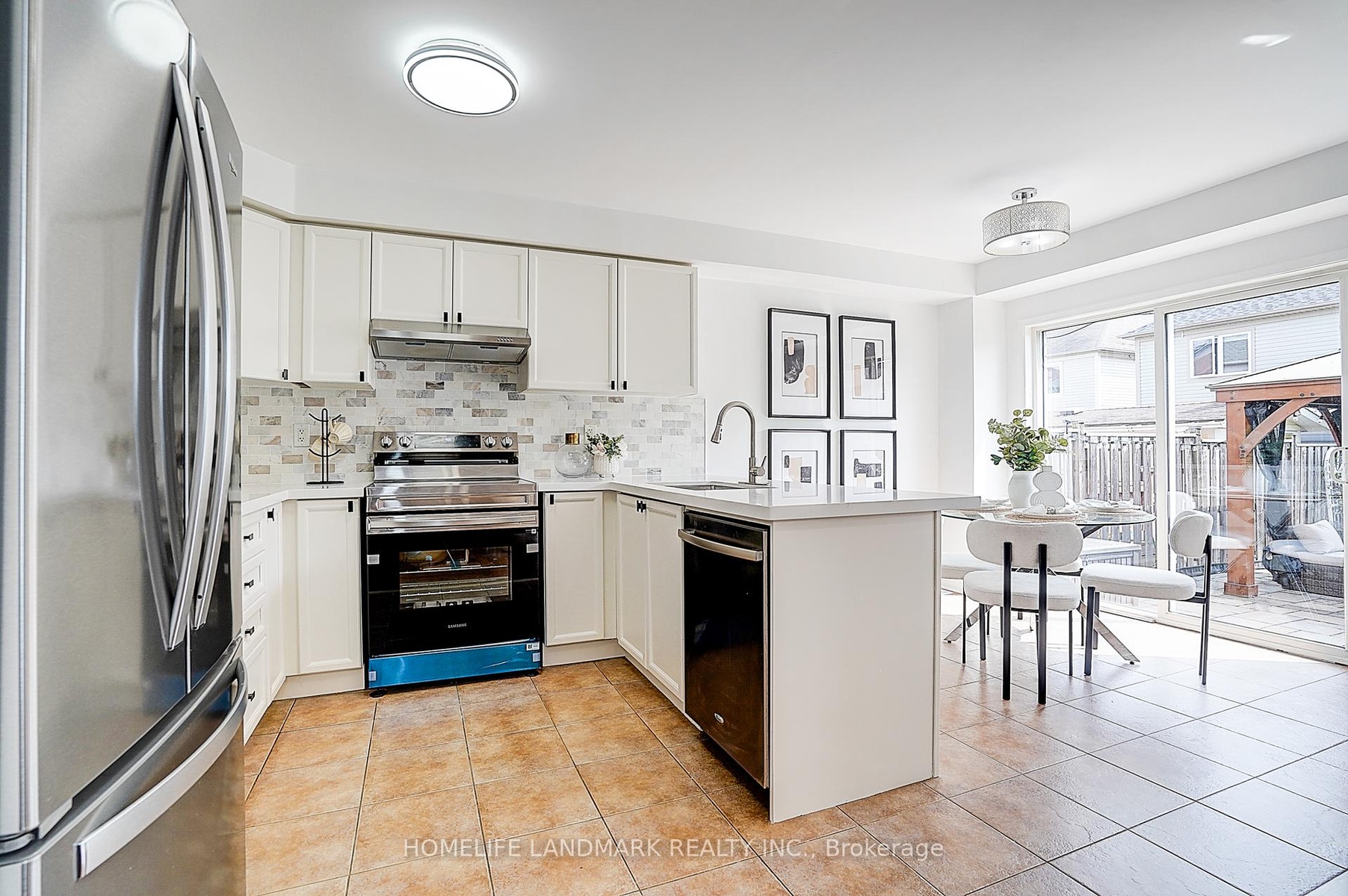 Beautiful Ugraded Home In Desirable North Whitby! Great Layout With Open Concept Sunny South Facing Kitchen And Living Room.Upgraded Kitchen With New Countertop & Backsplash. Hardwood Floor. Interior Access To Garage. Driveway can Park Two Cars Side by Side with No Side Walk. Interlocked backyard with a Gazebo. Roof(2023). AC(2024).Attic Insulation (2025). Everything You Need Is Within Walking Distance! Close To Schools, Park, Shopping And Hwy407!