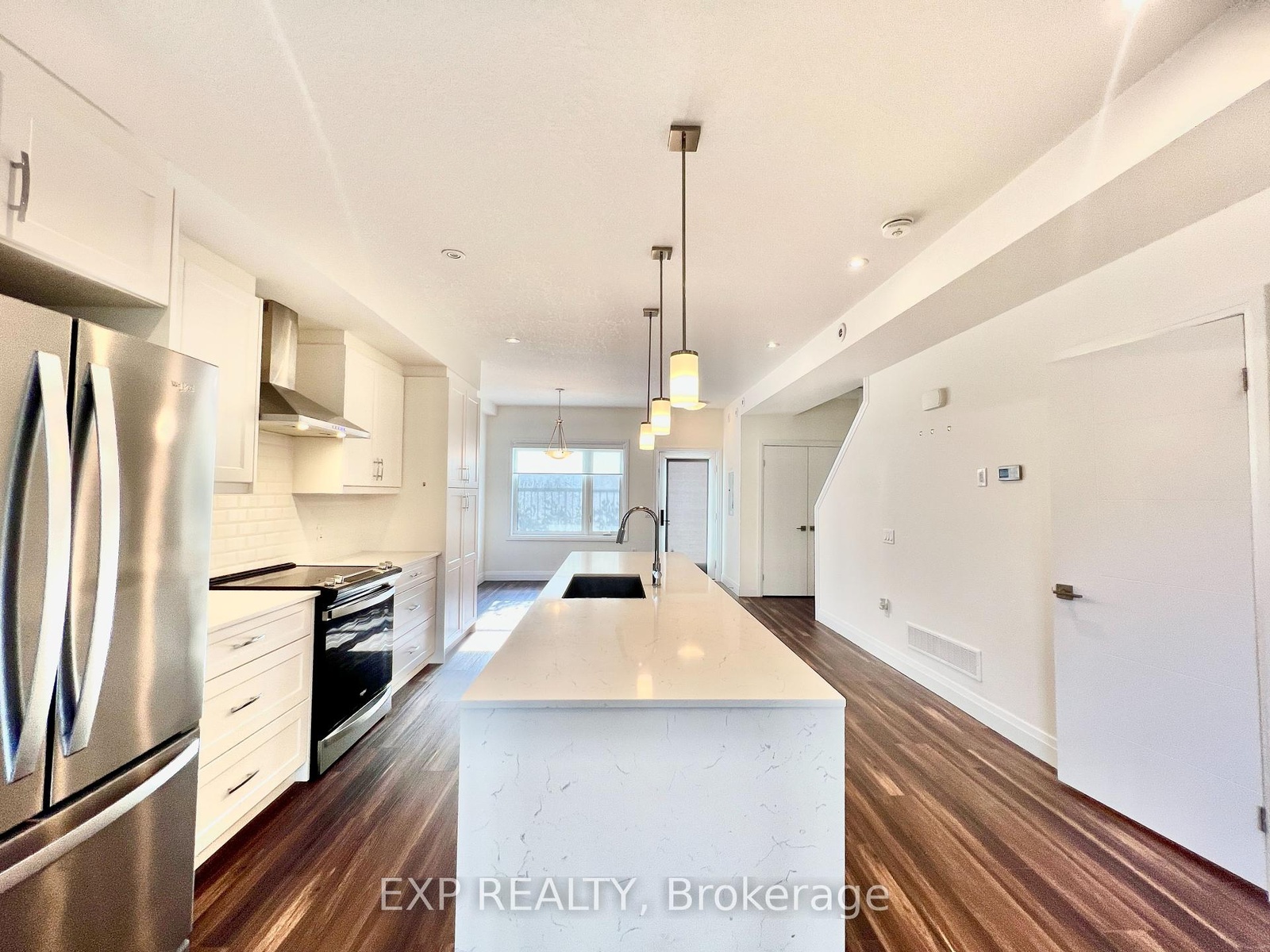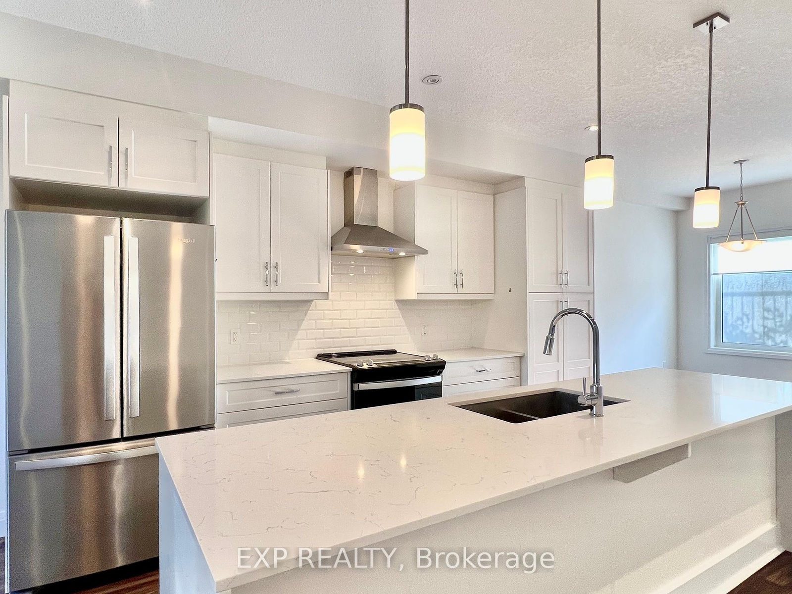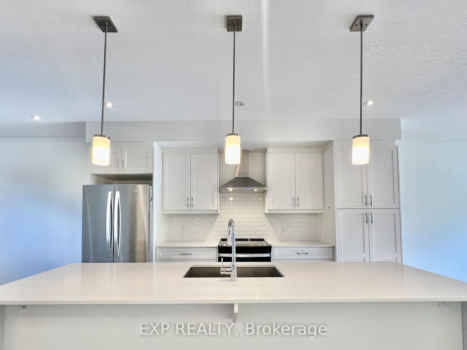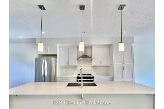 DescriptionMove-in ready today! This brand-new 1,413 sq. ft. end-unit stacked townhouse in Guelphs desirable South End offers bright, open-concept living with a spacious main area and a beautifully upgraded kitchen featuring a granite waterfall island with seating, KitchenAid appliances, quartz counters, backsplash, and modern light fixtures. Designed for comfort and style, the home includes 2 large bedrooms and 2 bathrooms, with added conveniences such as one parking spot with on-site EV charging and a private storage unit just outside the home for bikes and other items. Ideally located just 9 minutes from Highway 401 and close to top-rated schools, groceries, and amenities, this sought-after South End community is known for its family-friendly atmosphere, abundance of parks and trails, excellent shopping, and easy commuter access making it one of Guelphs most vibrant and convenient neighbourhoods.Amenities- Carpet Free