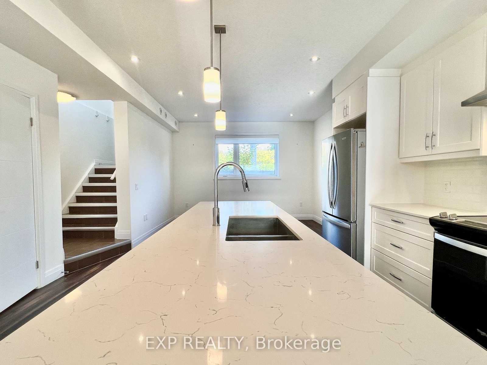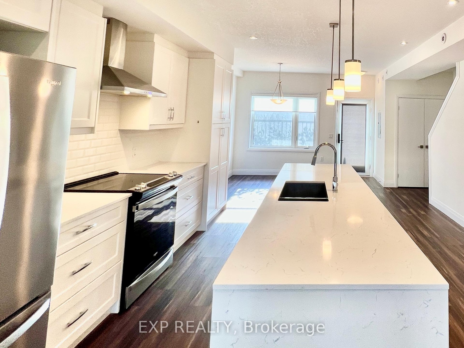 Move-in ready today! This brand-new 1,413 sq. ft. end-unit stacked townhouse in Guelphs desirable South End offers bright, open-concept living with a spacious main area and a beautifully upgraded kitchen featuring a granite waterfall island with seating, KitchenAid appliances, quartz counters, backsplash, and modern light fixtures. Designed for comfort and style, the home includes 2 large bedrooms and 2 bathrooms, with added conveniences such as one parking spot with on-site EV charging and a private storage unit just outside the home for bikes and other items. Ideally located just 9 minutes from Highway 401 and close to top-rated schools, groceries, and amenities, this sought-after South End community is known for its family-friendly atmosphere, abundance of parks and trails, excellent shopping, and easy commuter access making it one of Guelphs most vibrant and convenient neighbourhoods.